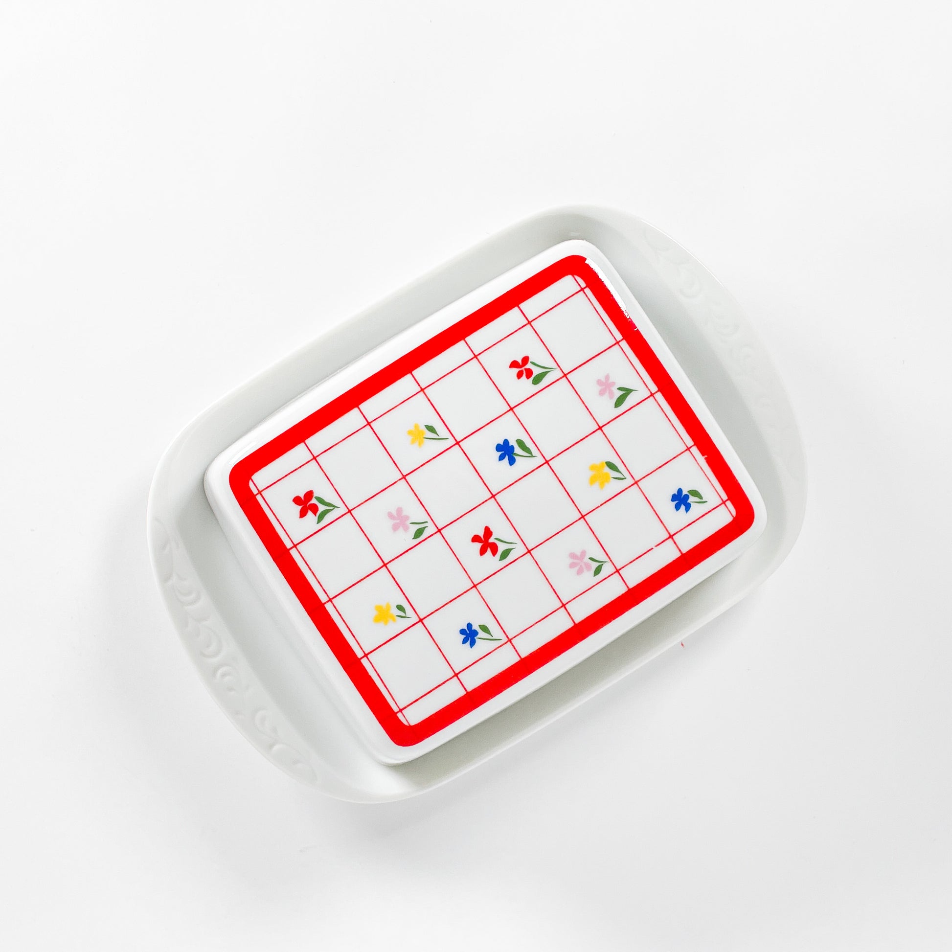 Genin-Trudeau porcelain butter dish made in Japan, from the "Little flowers" collection.