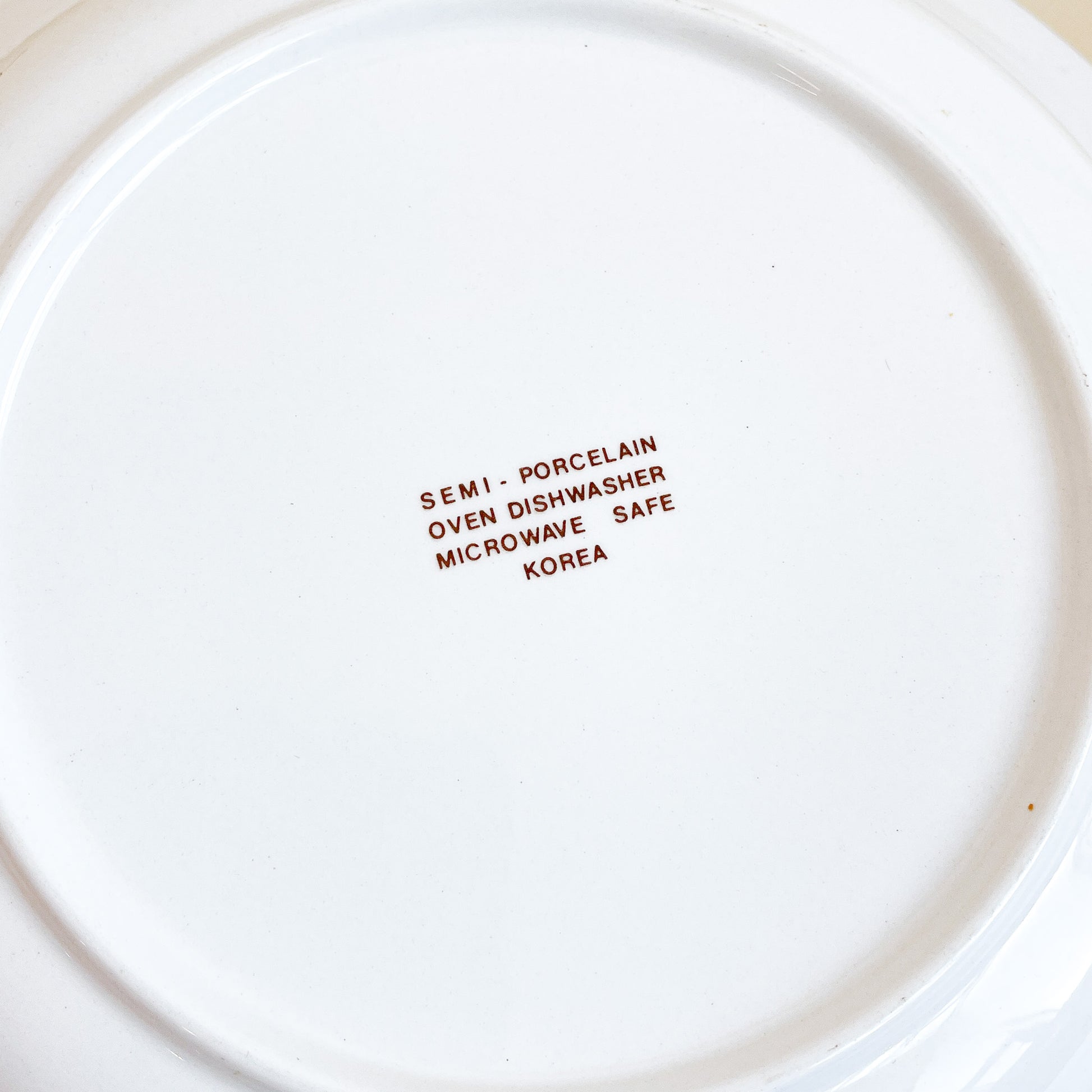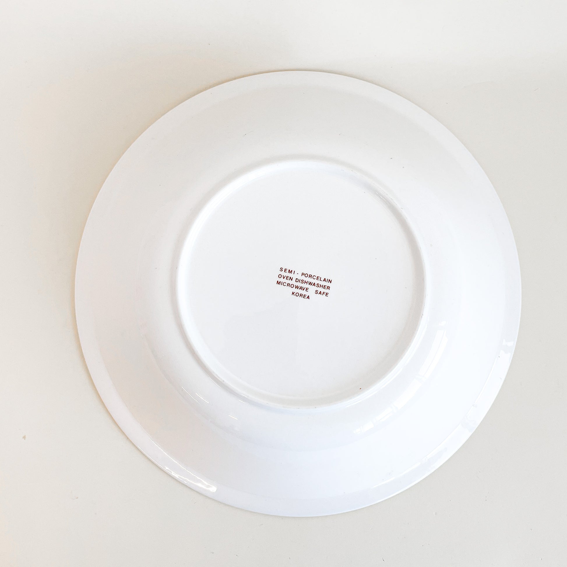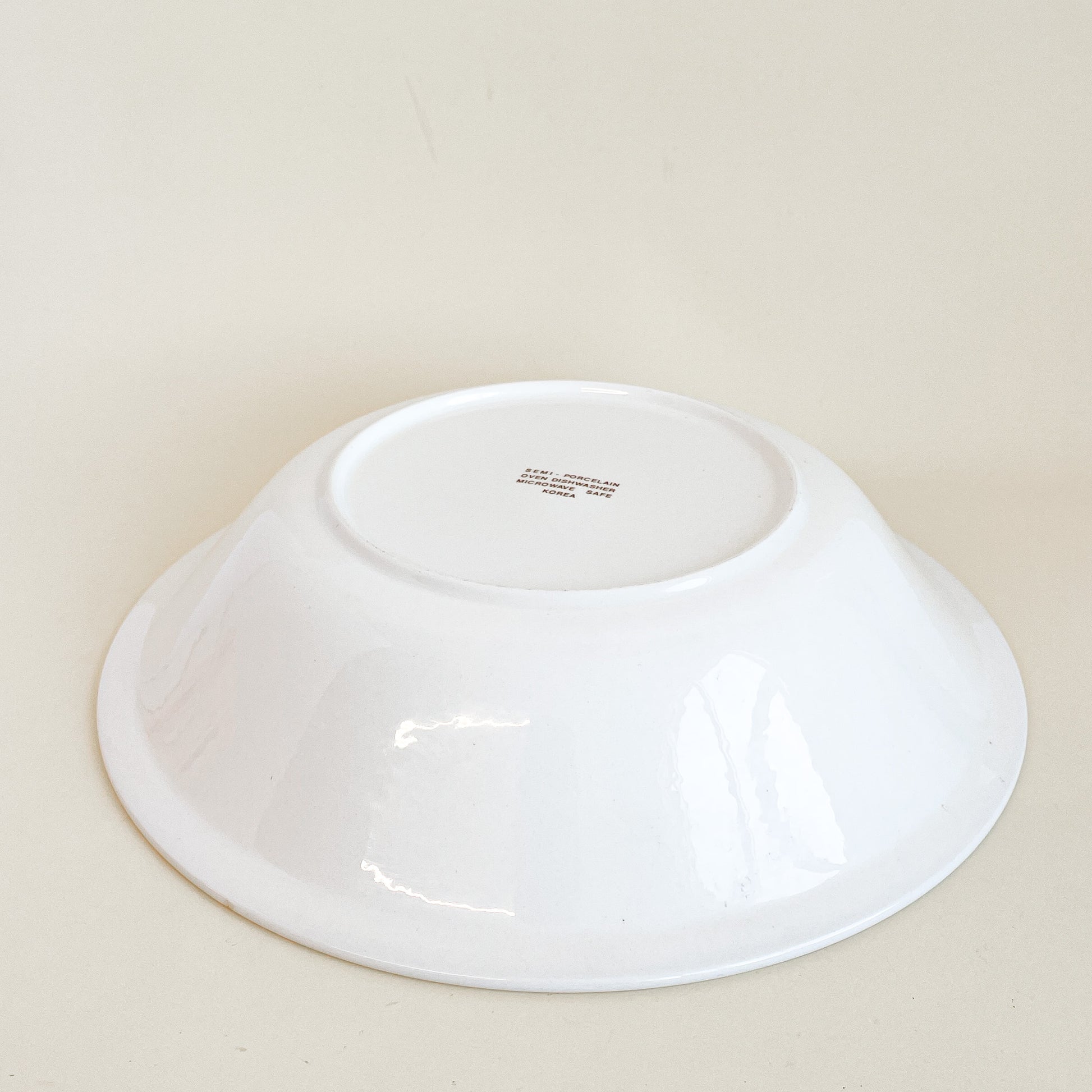 White ceramic pasta bowl with colorful stripes, made in Korea.