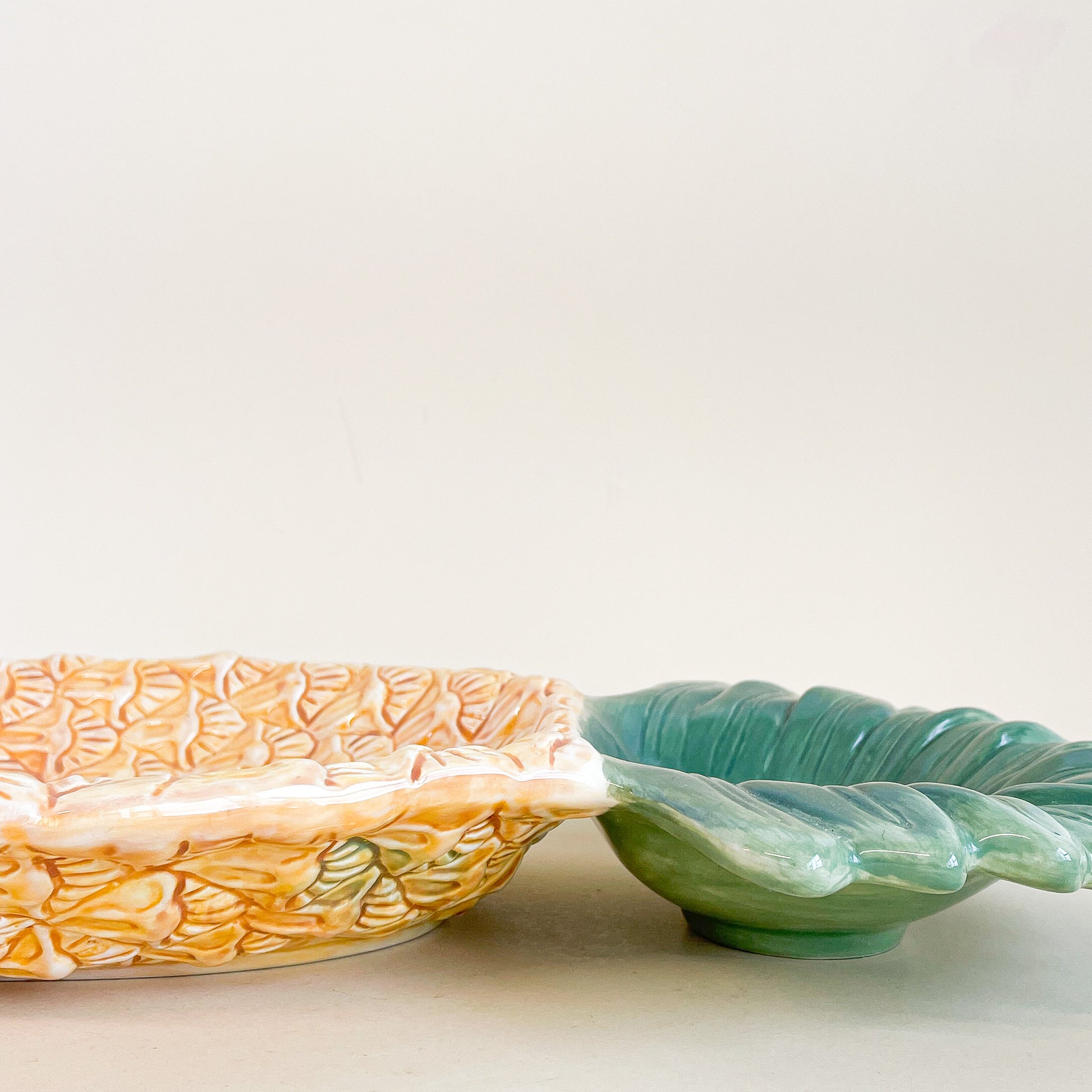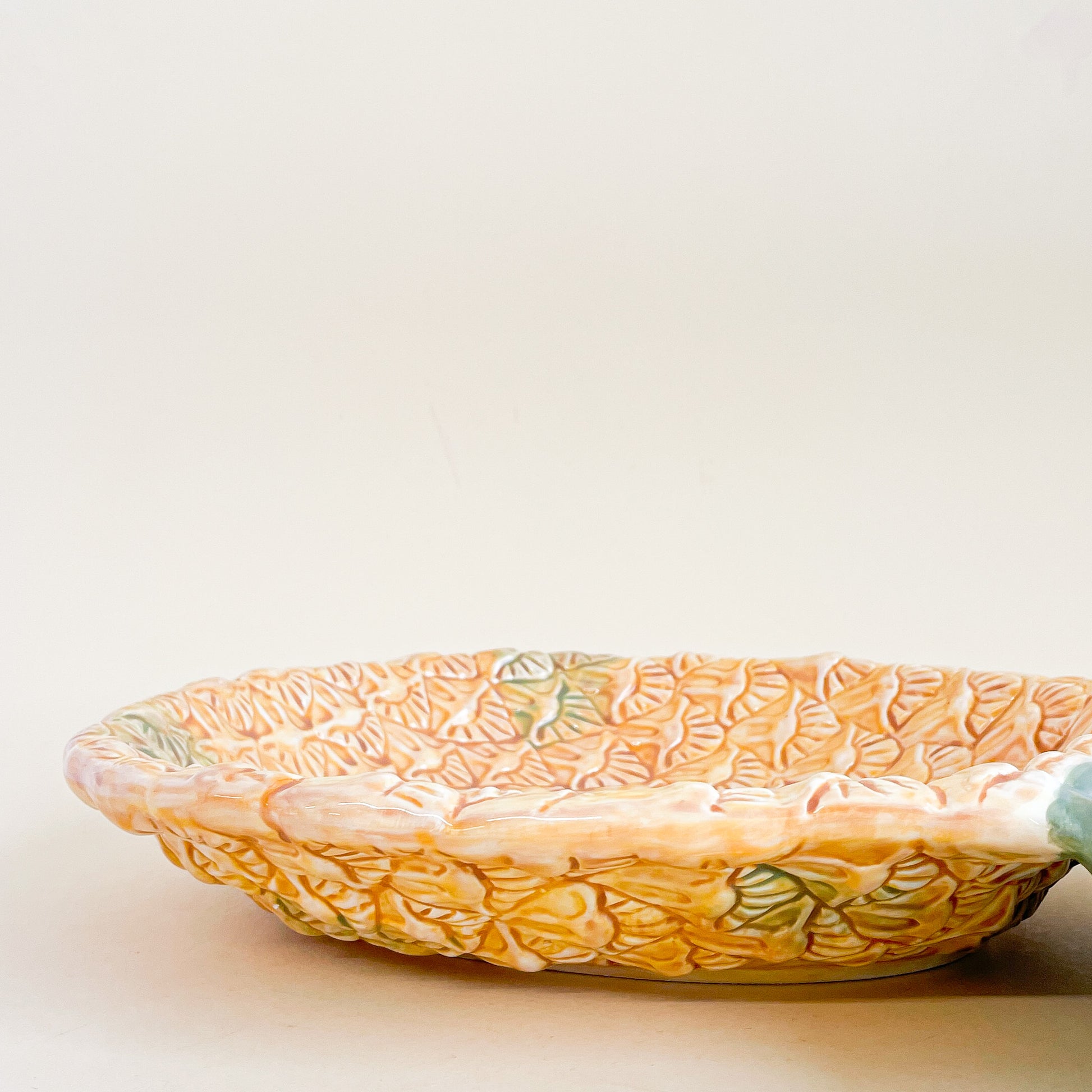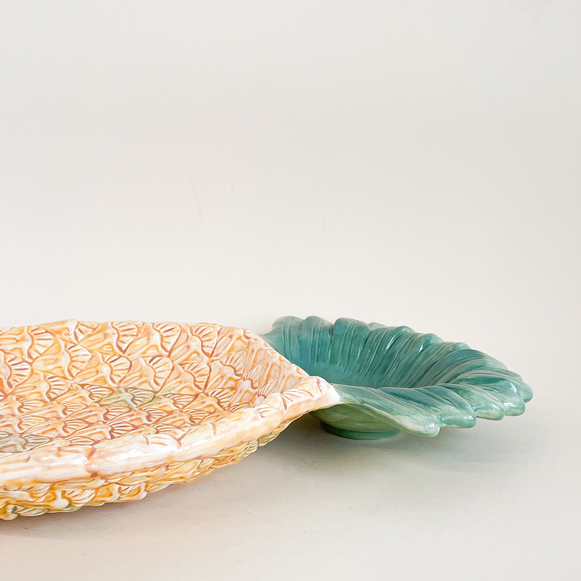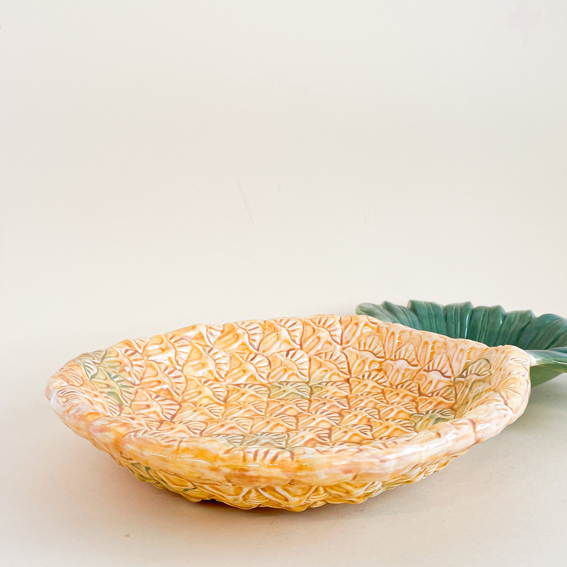 Pineapple-shaped double-compartment ceramic serving bowl.