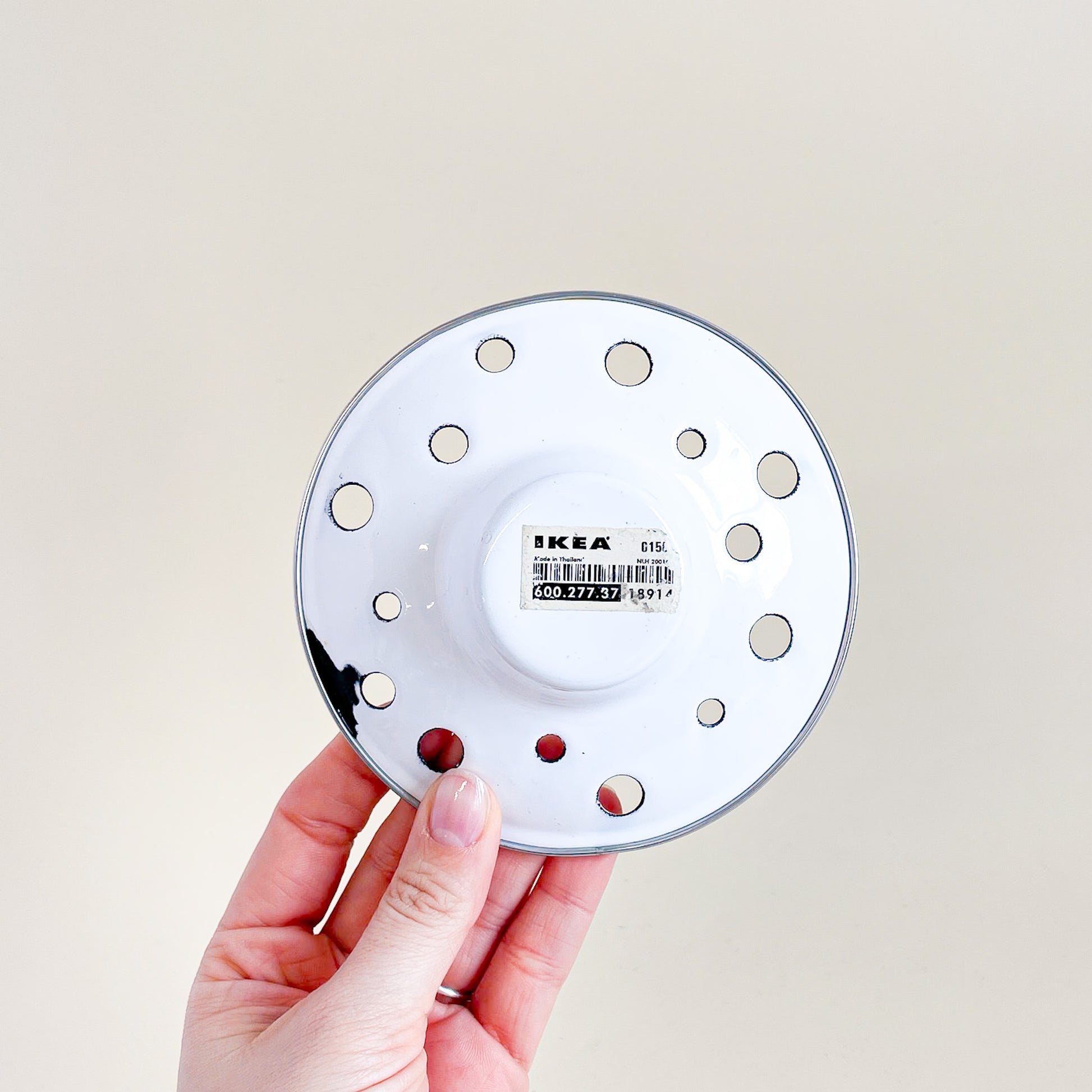 Vintage Ikea candle holder in enameled metal, suitable for lantern candles.
