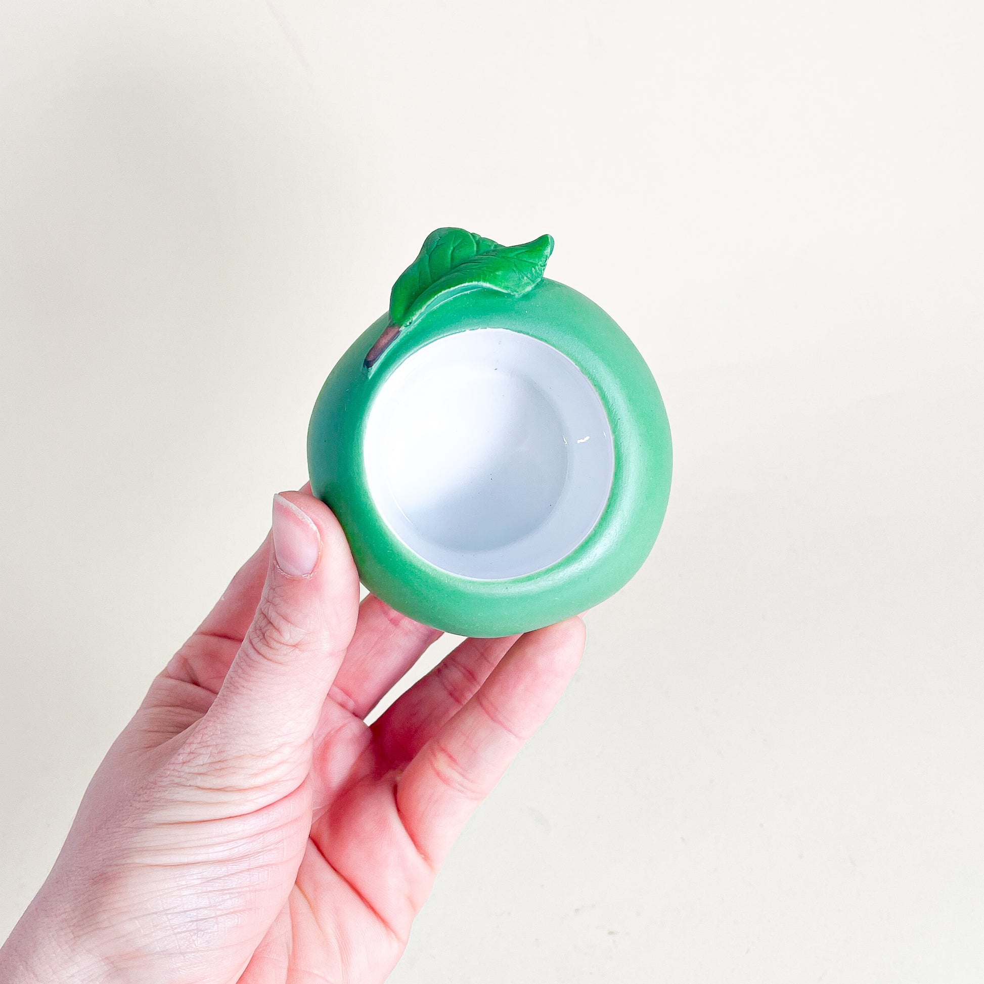 Green apple shaped ceramic candle holder, made by Party Lite. Suitable for lantern style candles.