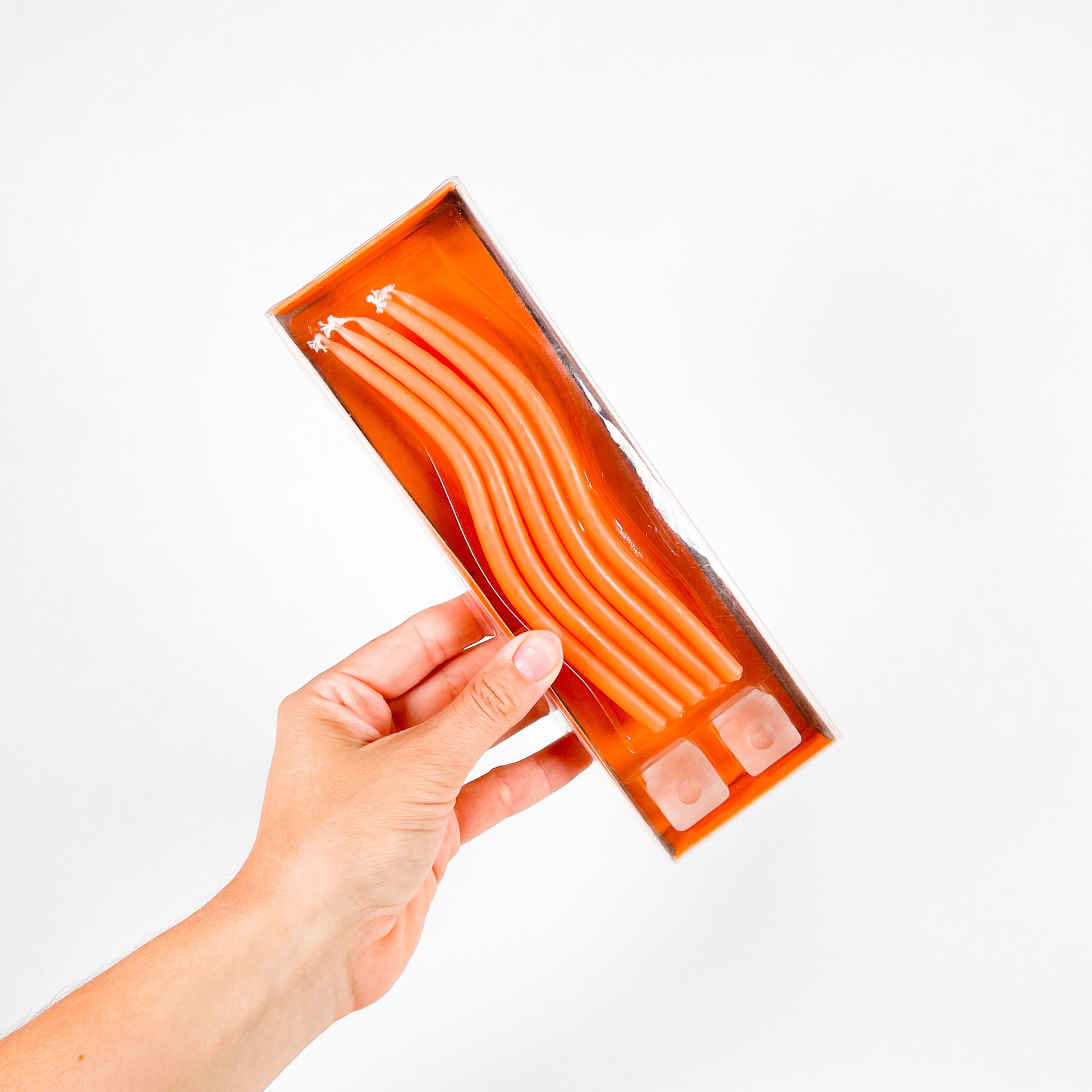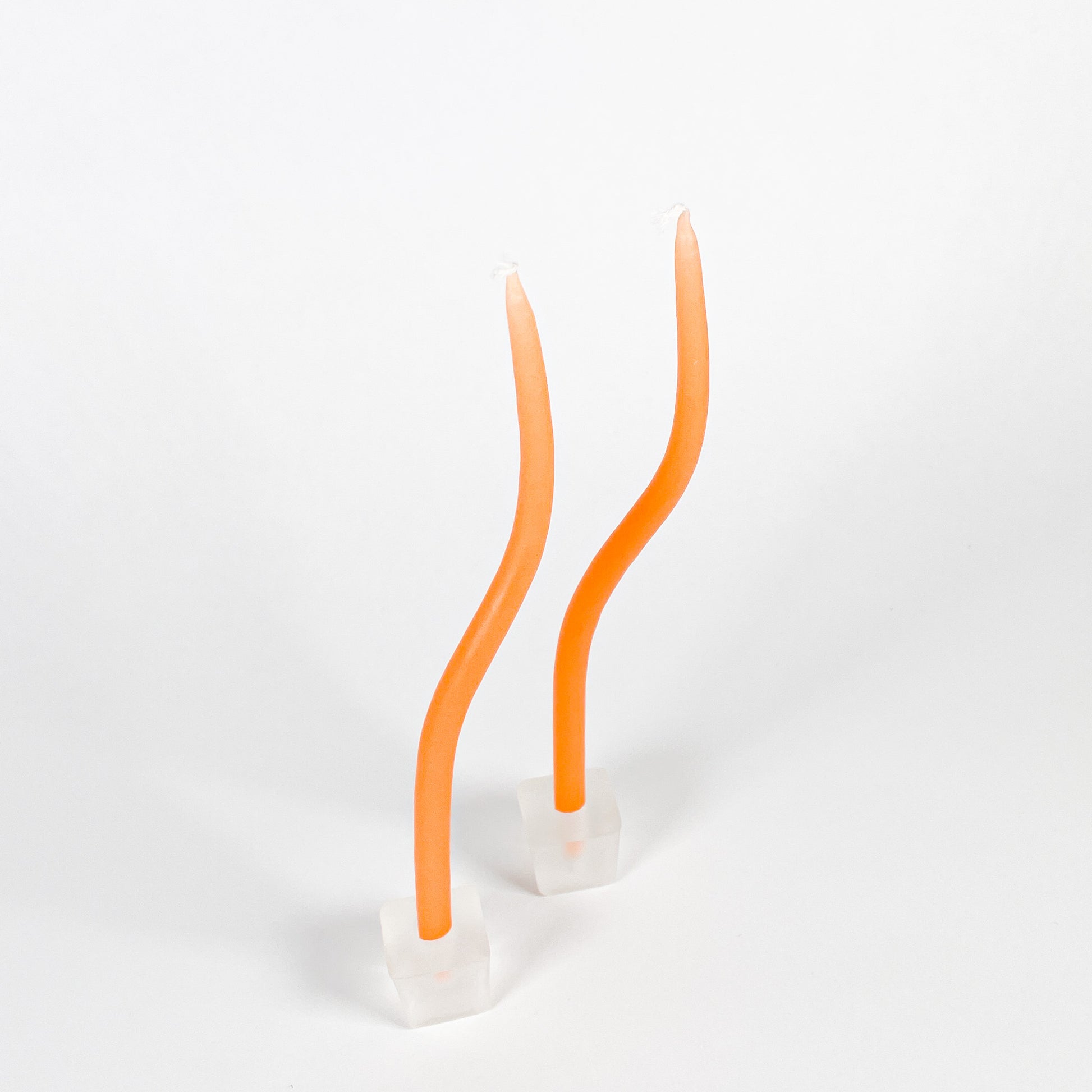 Thin orange squiggly taper candles