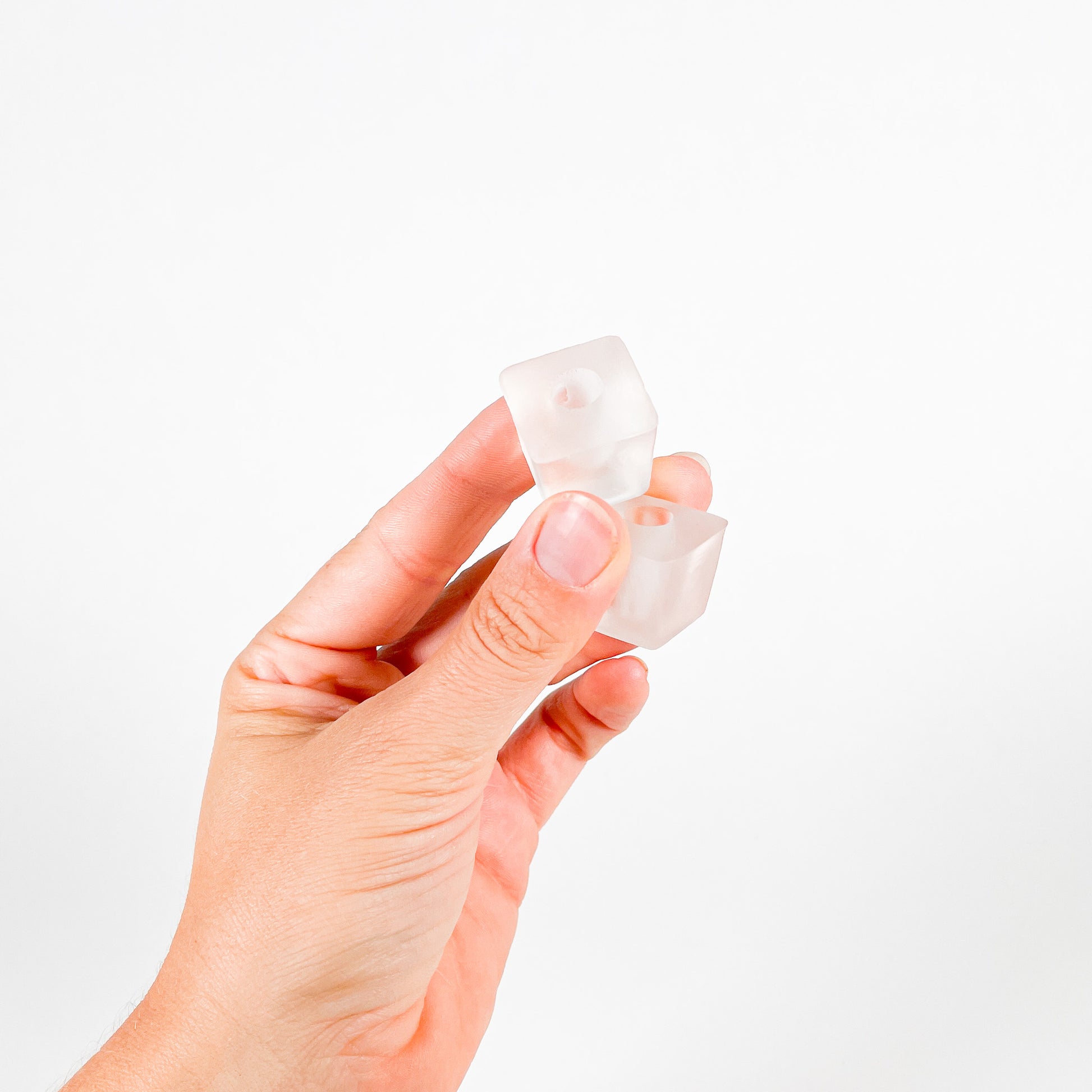 Set of 5 fine orange wavy taper candles with 2 cubed frosted glass candle holders.