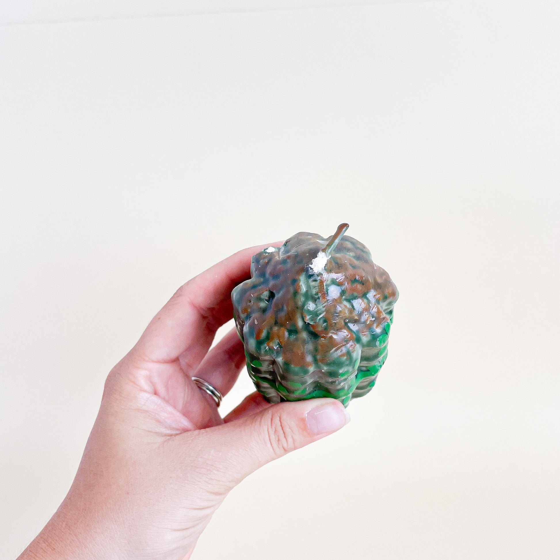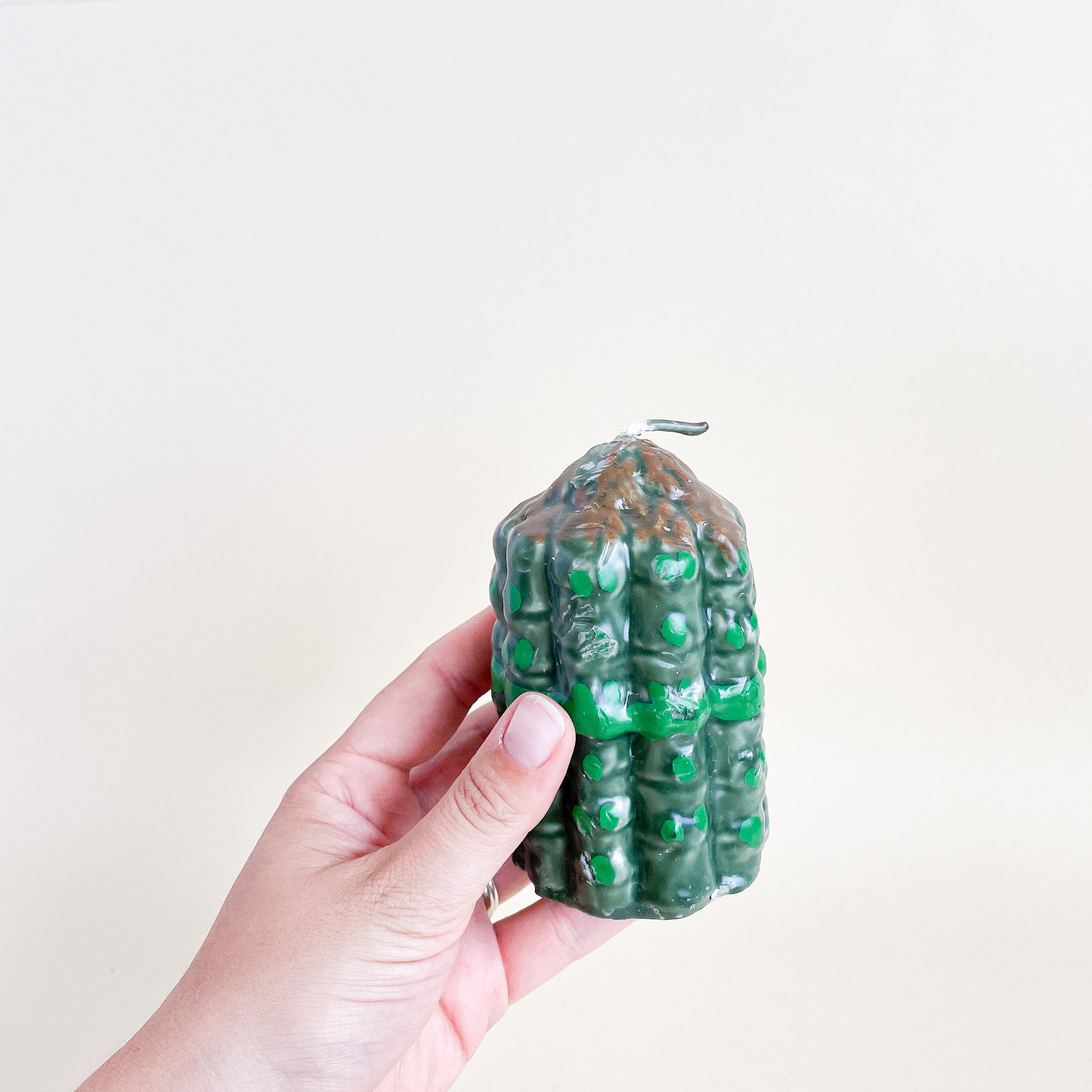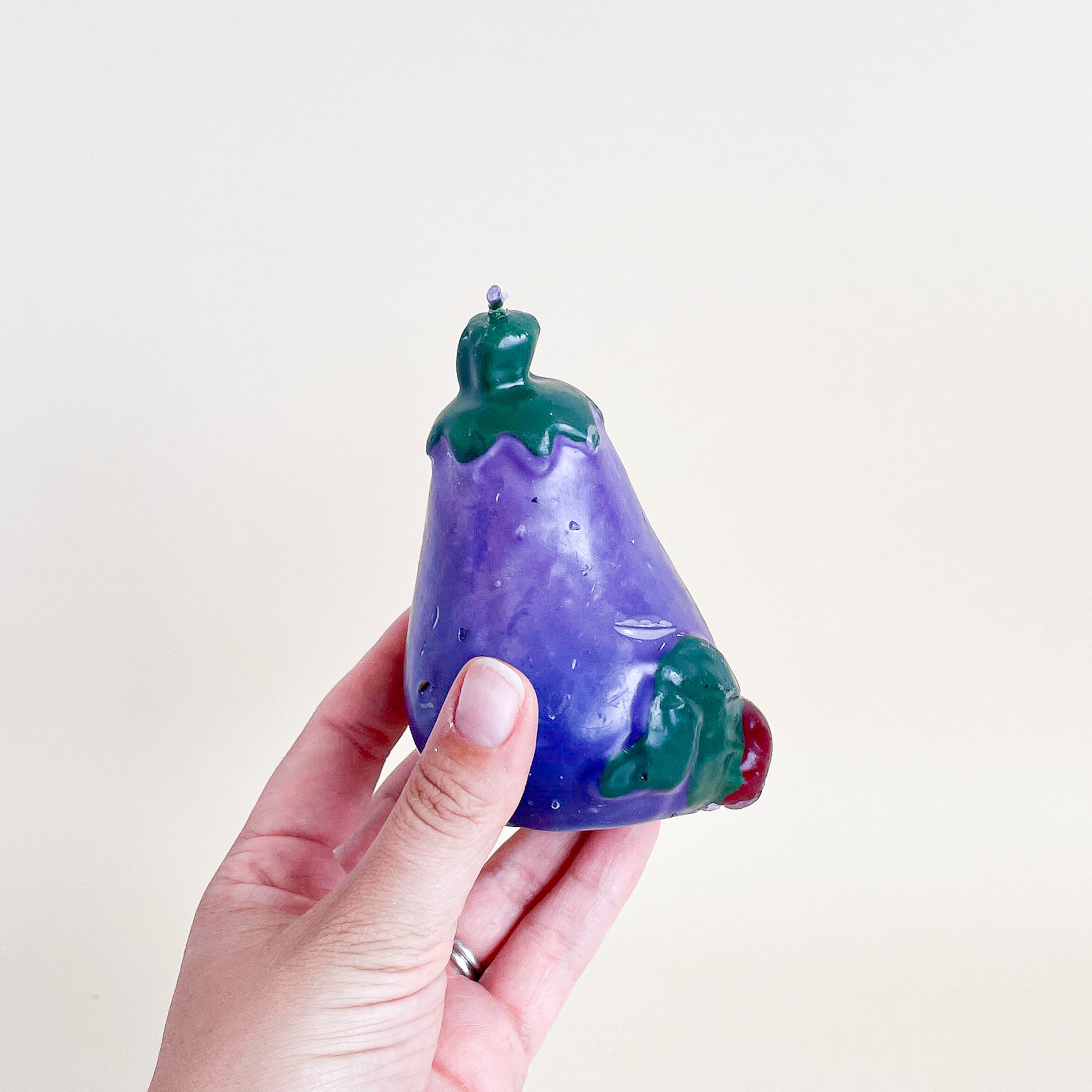 Super kitsch set of 3 paraffin wax candles in the shape of vegetables.
