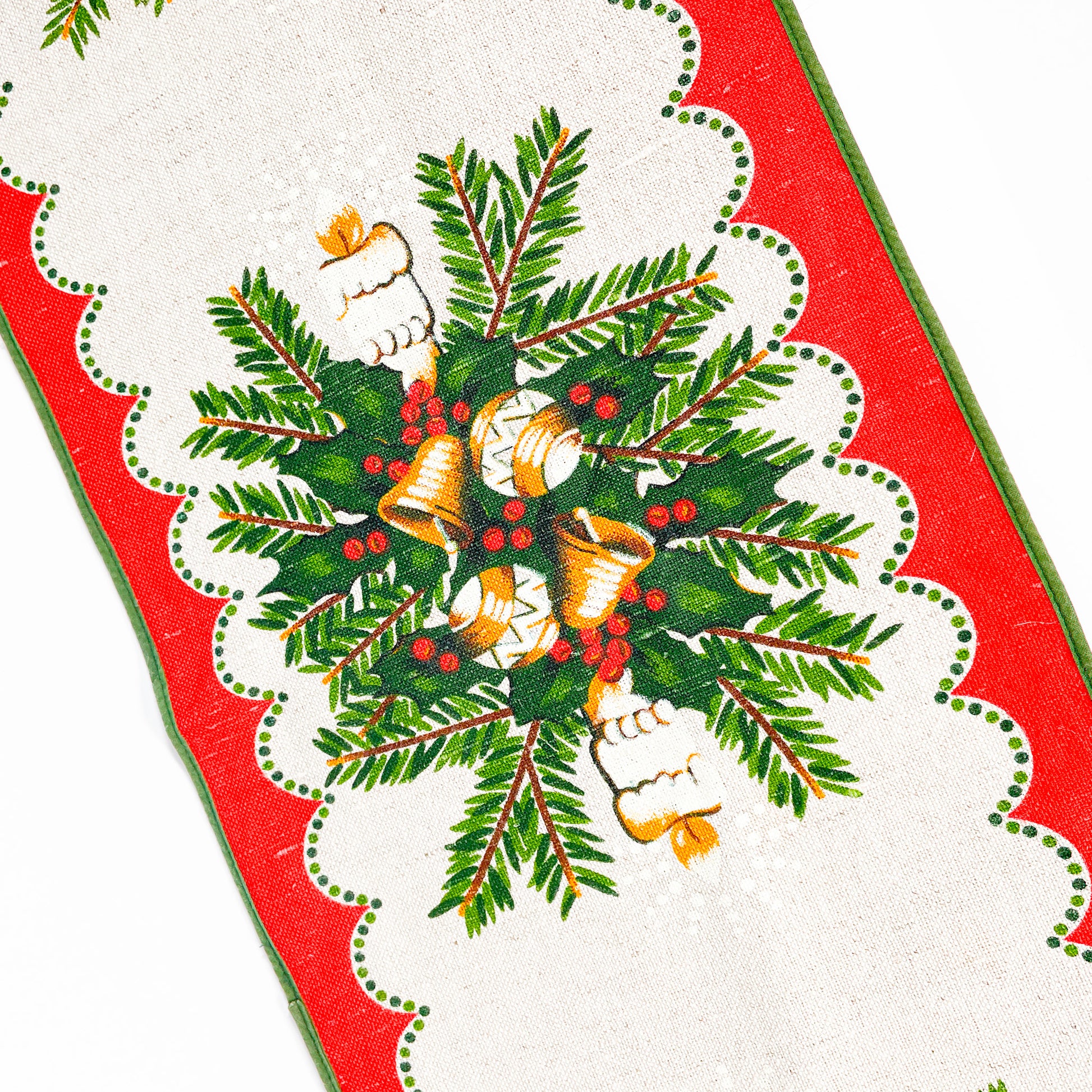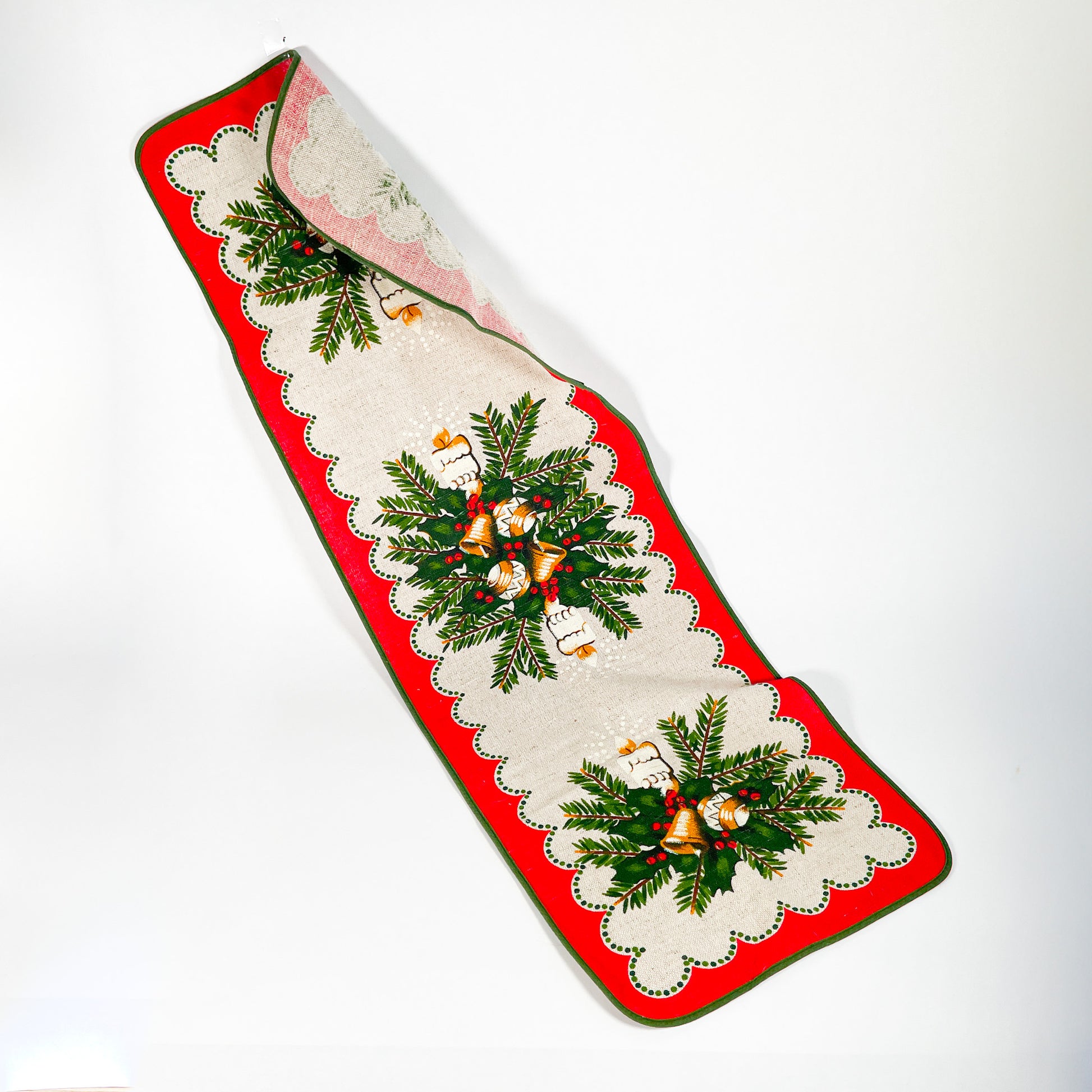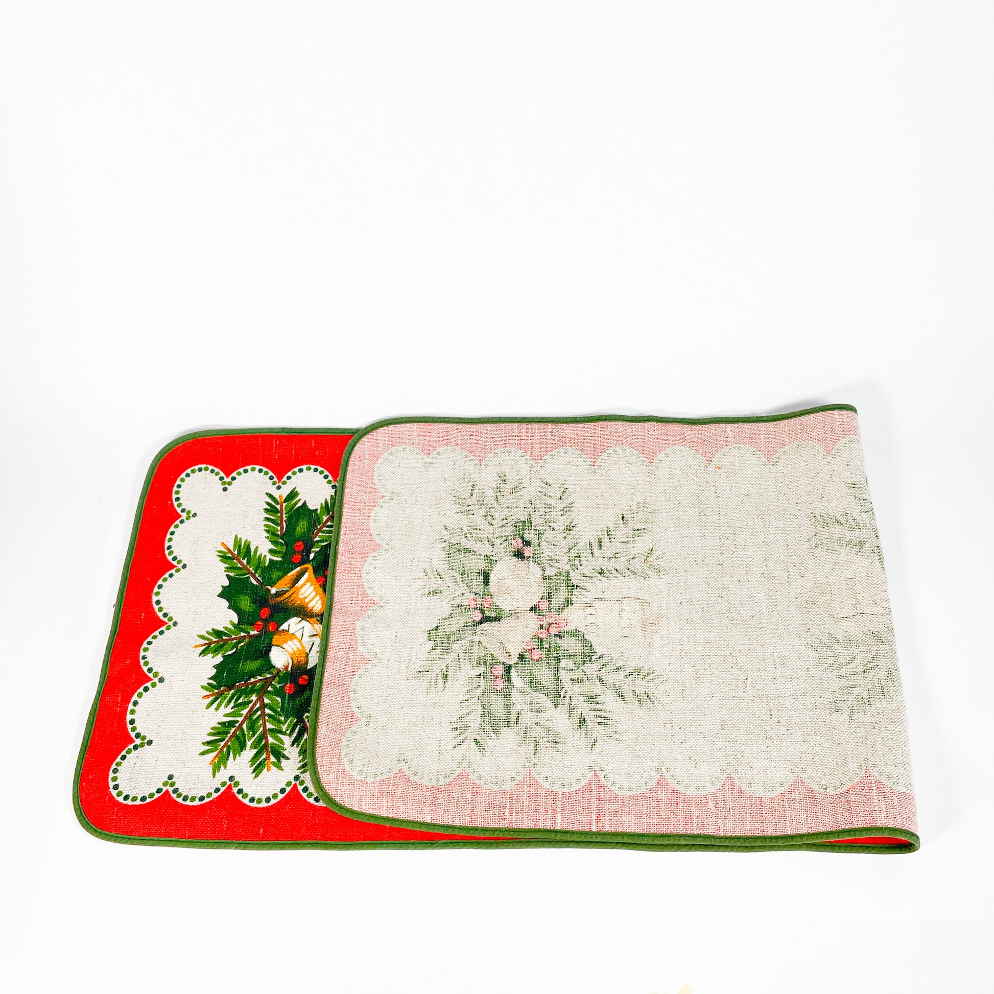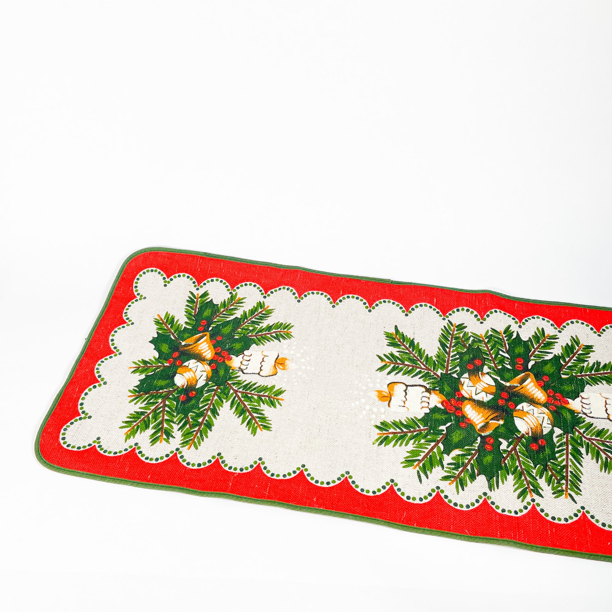 Very pretty Christmas table runner in printed linen. Imagine it with golden candle holders in the center! 😍