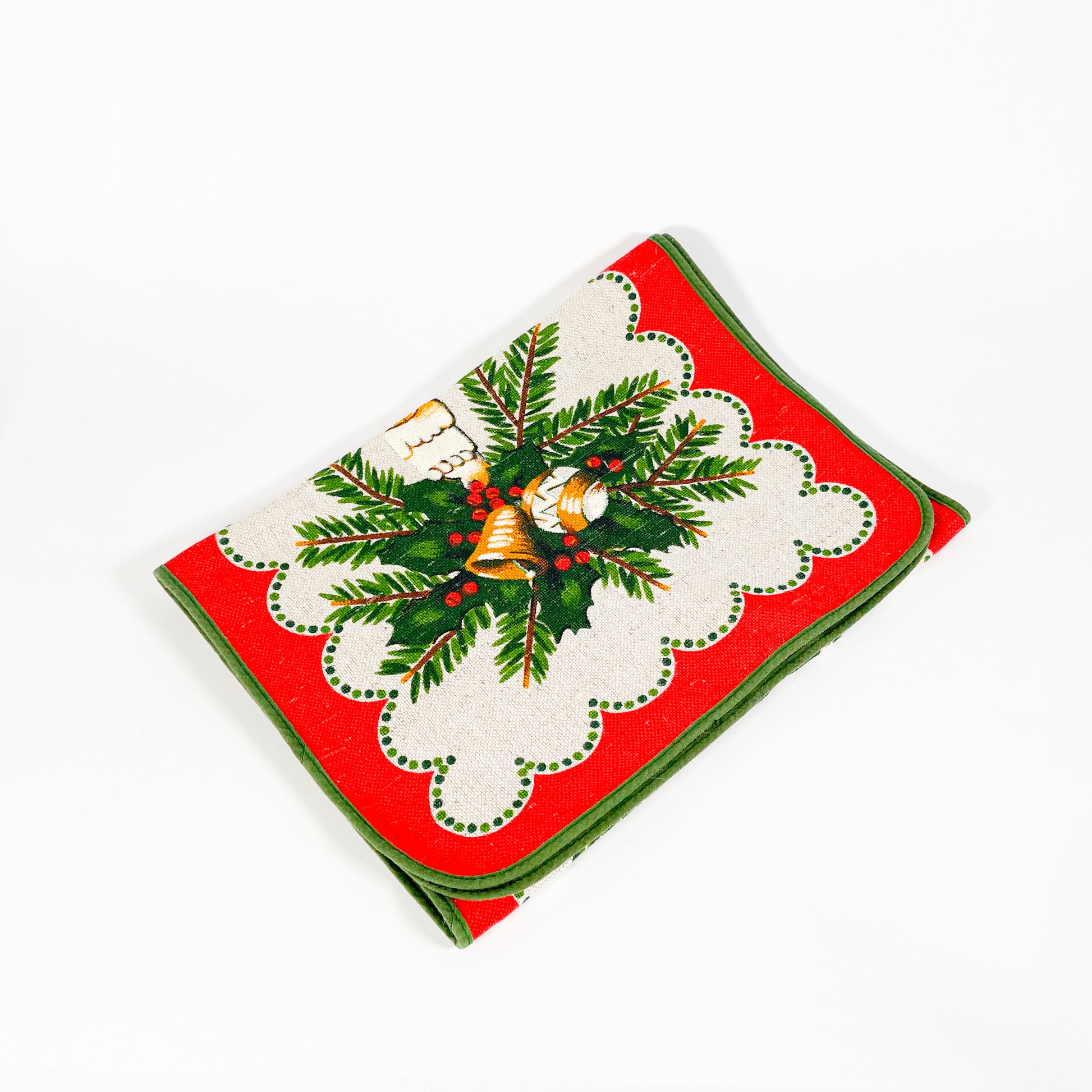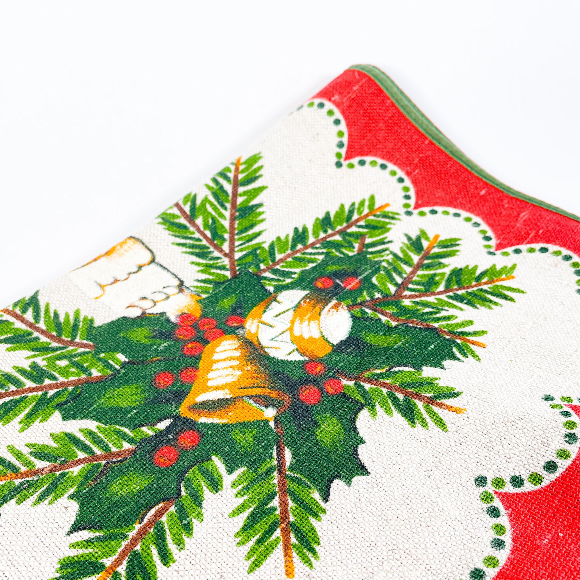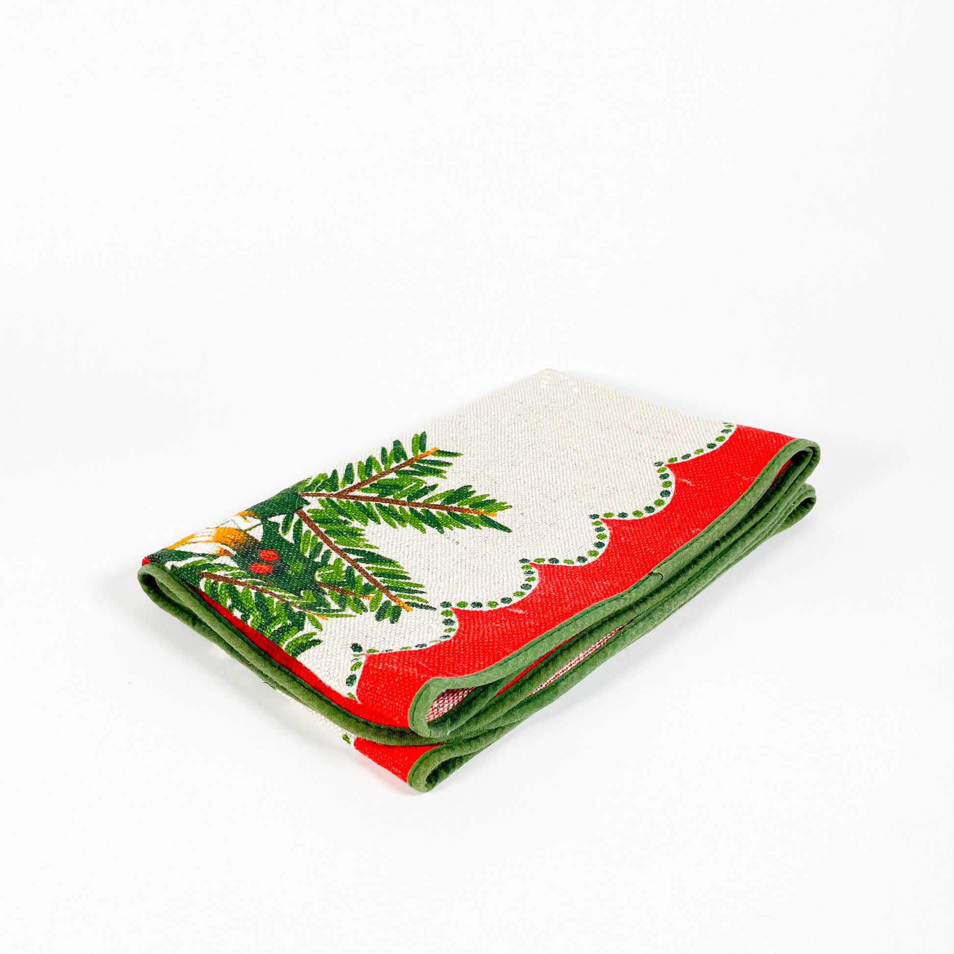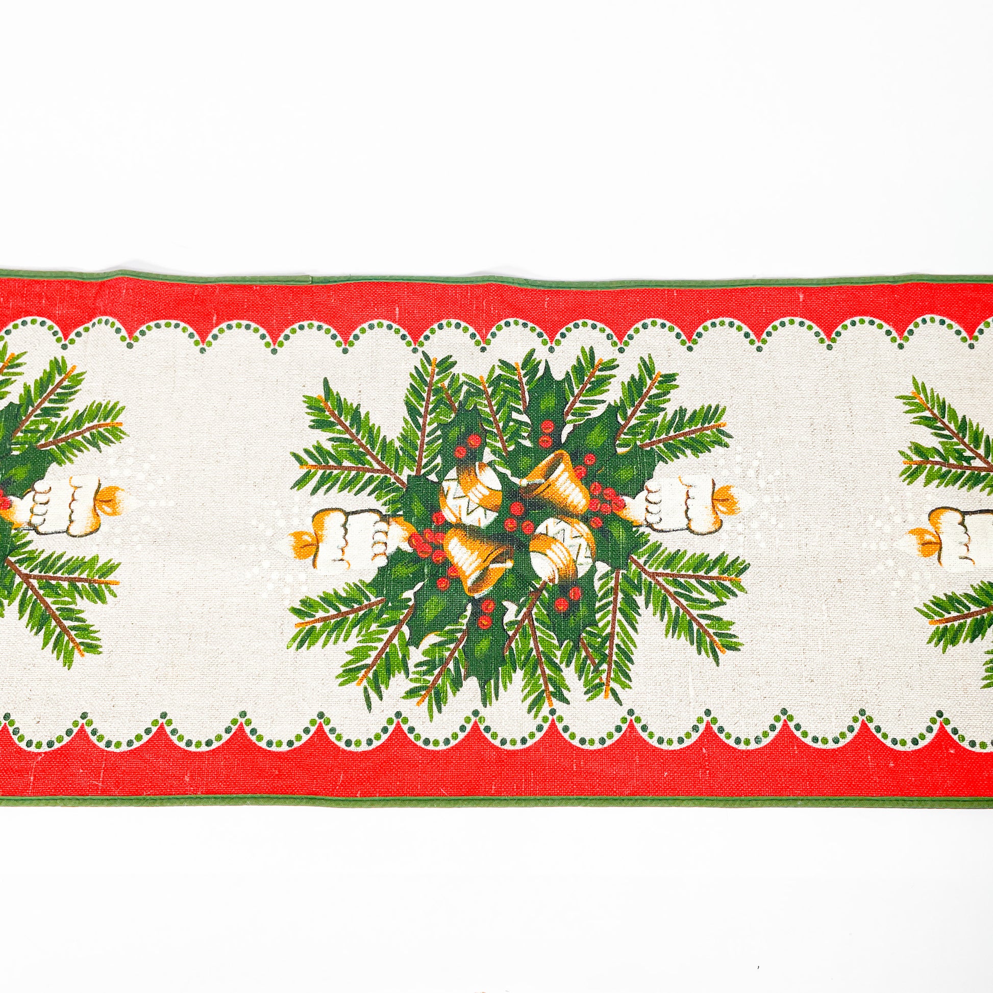 Very pretty Christmas table runner in printed linen. Imagine it with golden candle holders in the center! 😍
