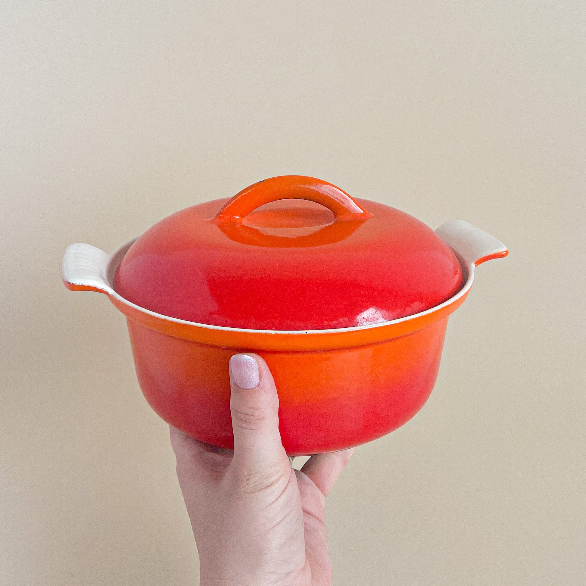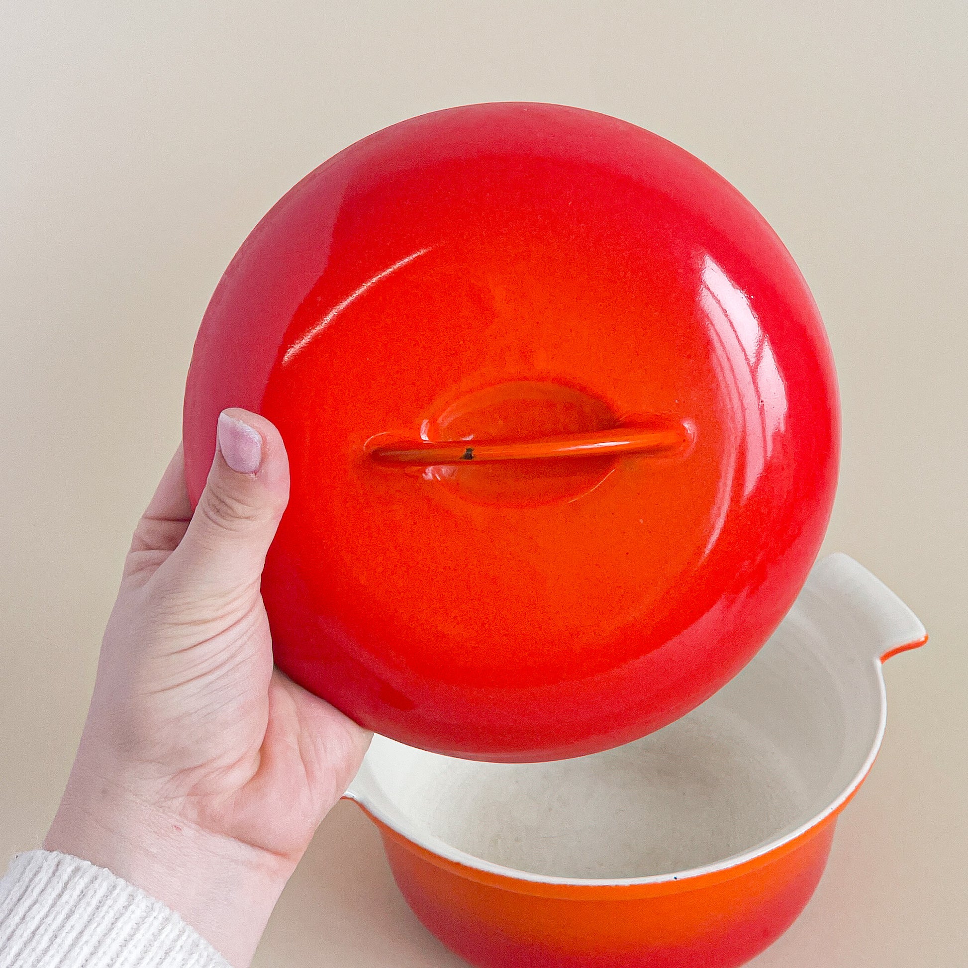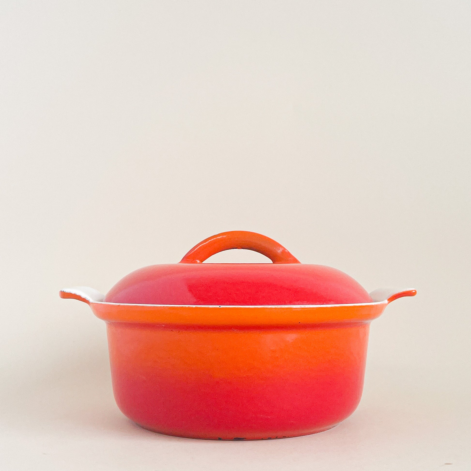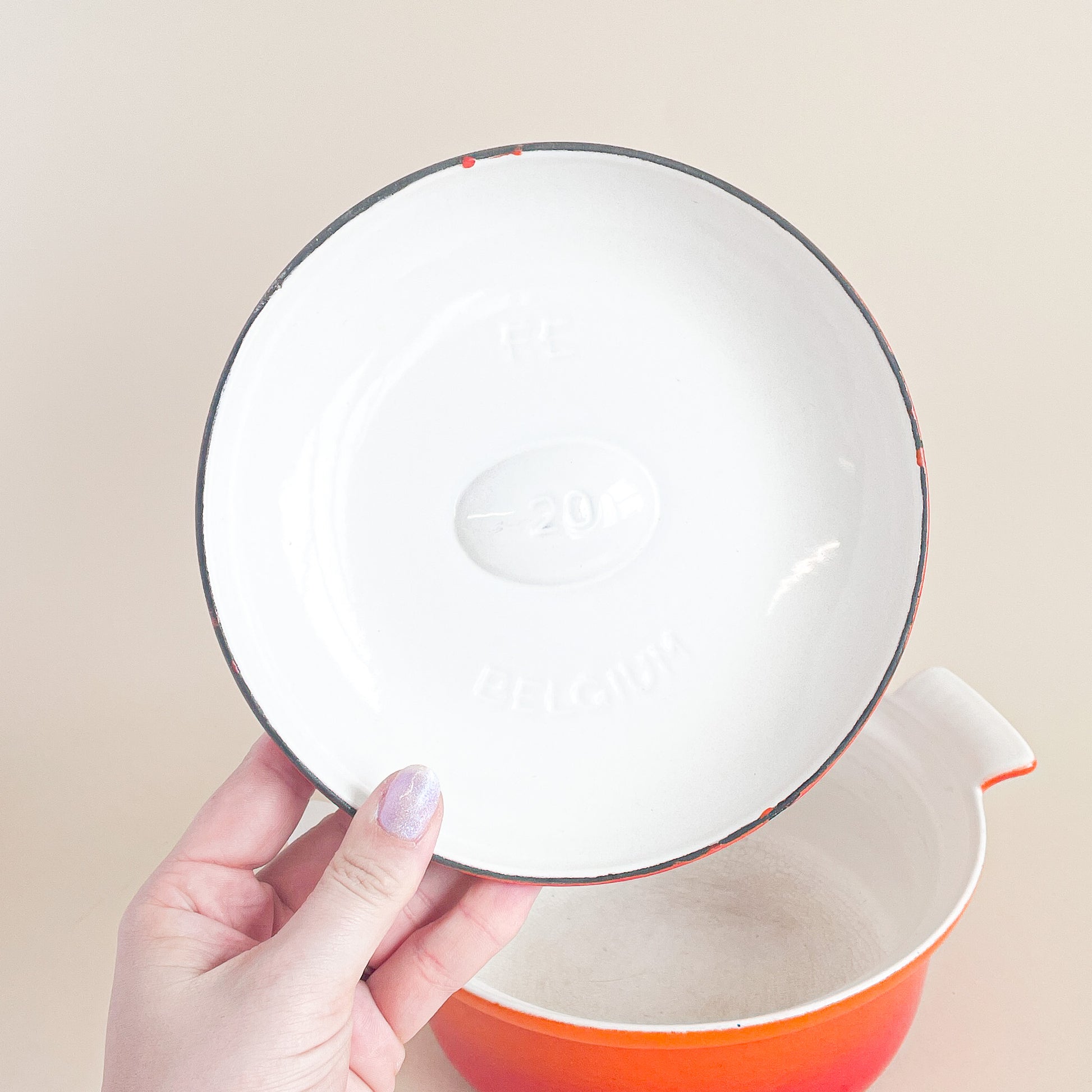 Beautiful 1970s enameled cast iron casserole dutch oven made by FE Belgium.
