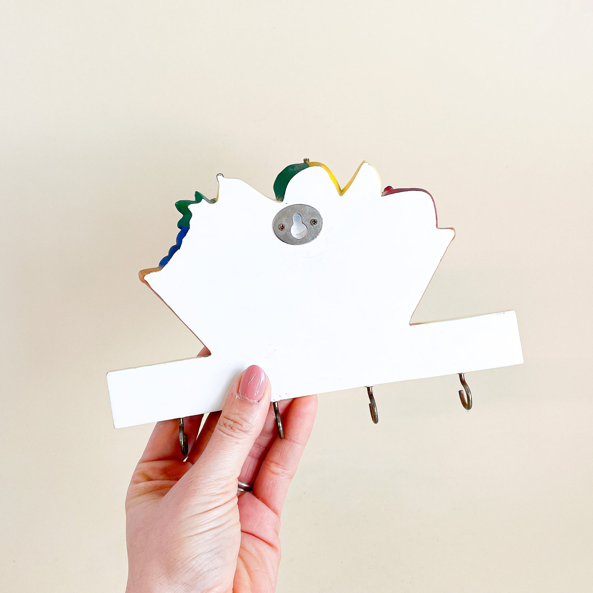 Painted cast resin wall hooks. The hooks are suitable for use for small, lightweight things like keys.