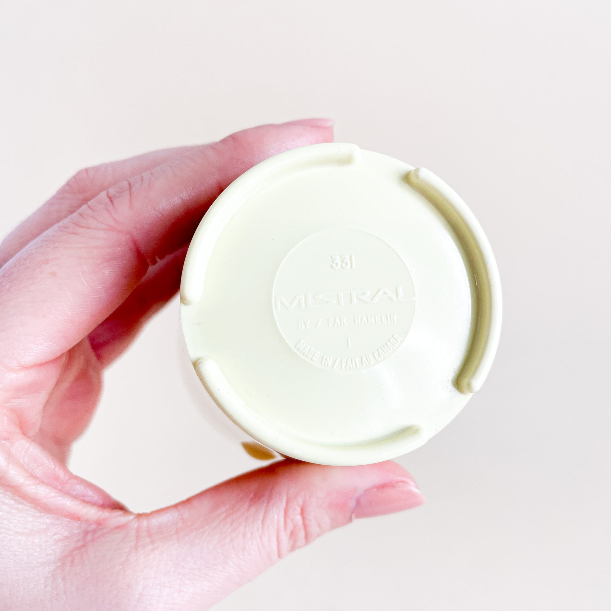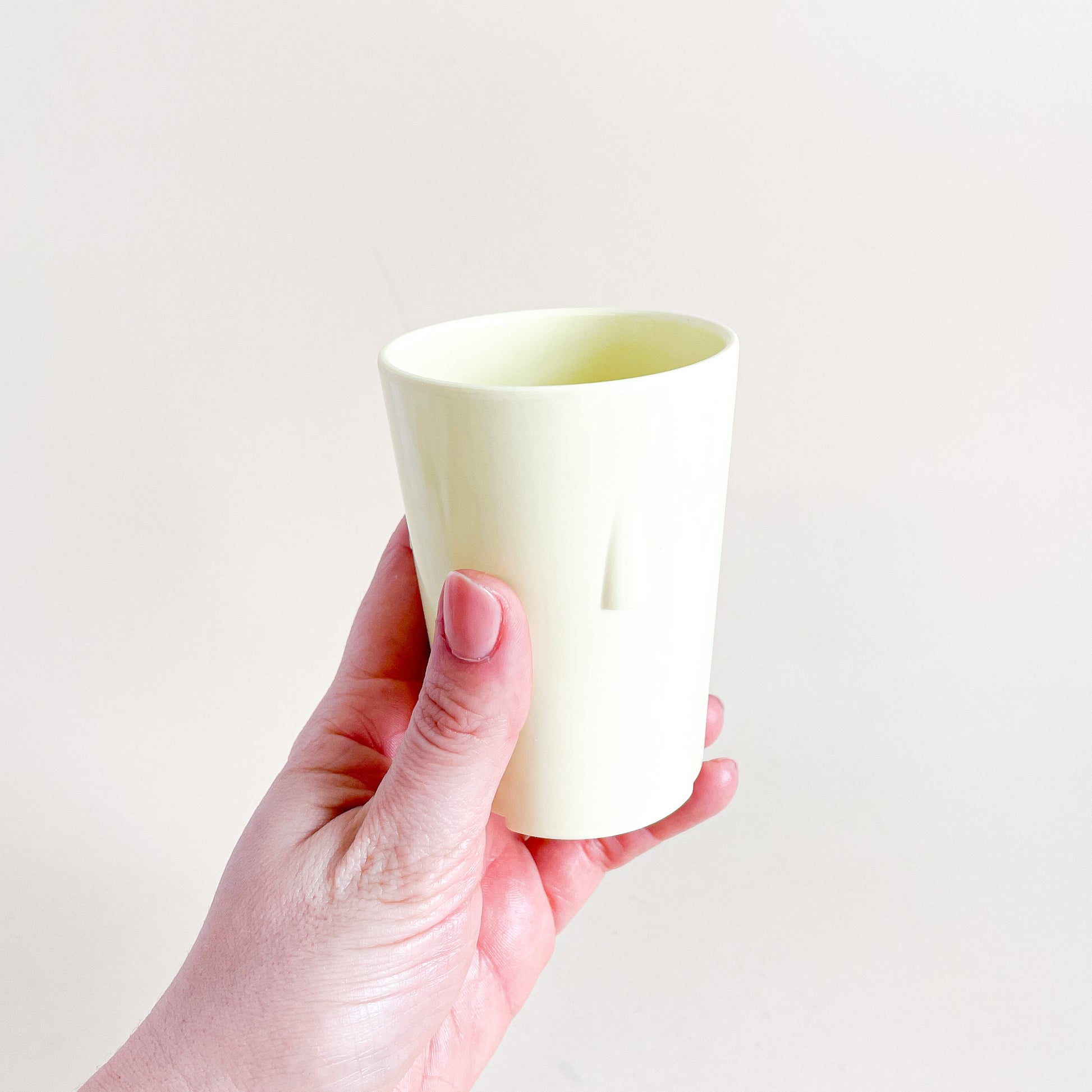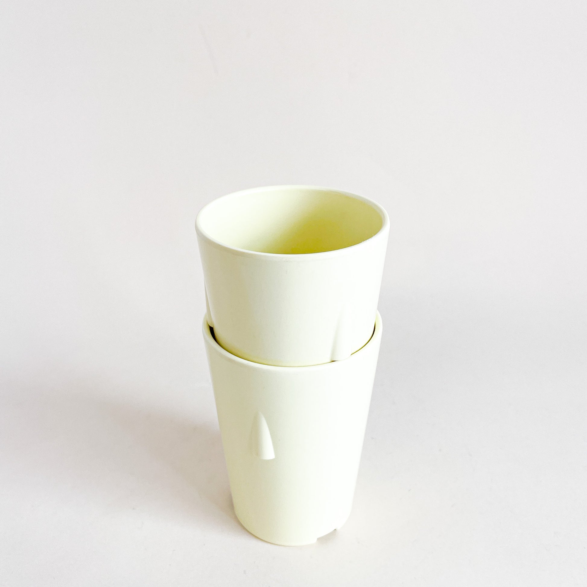Set of 2 pastel yellow melamine cups, made in Canada by Mistral.