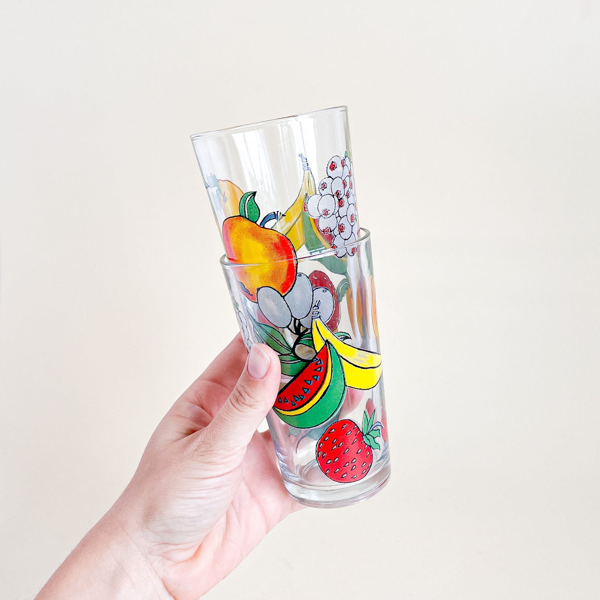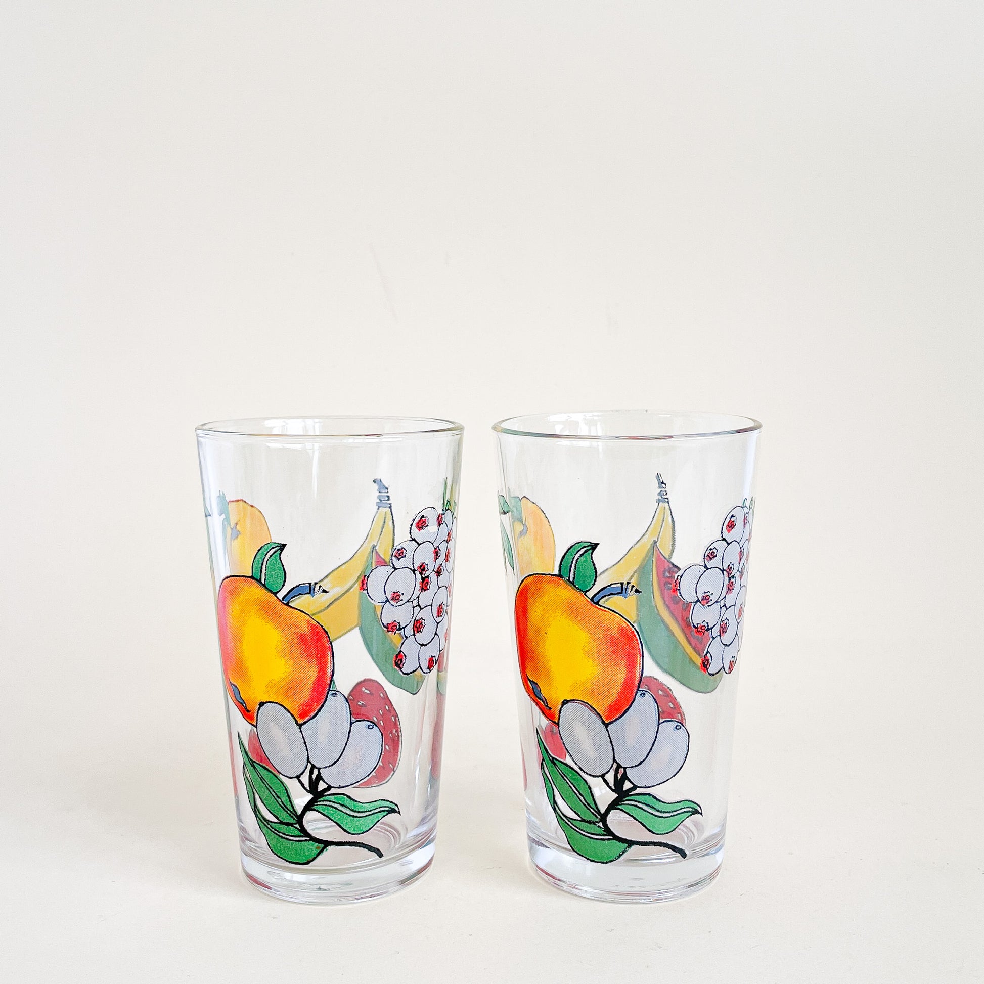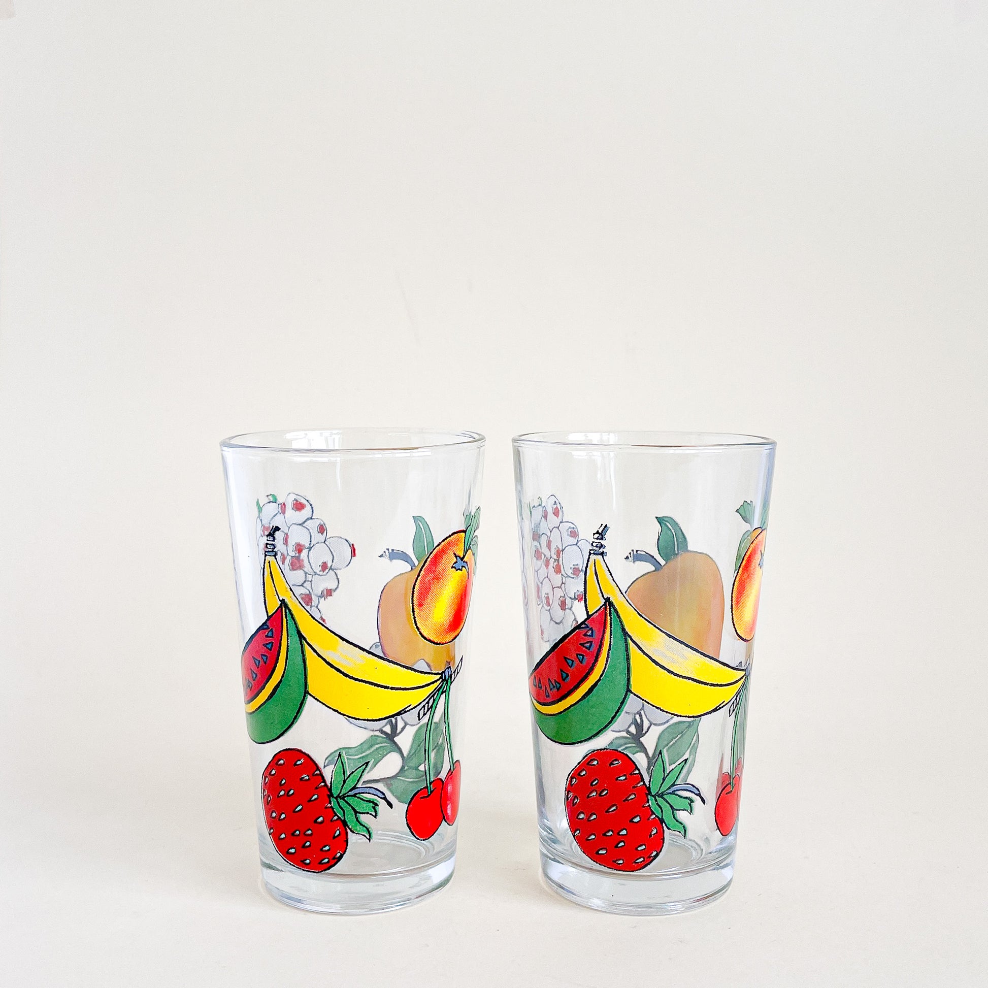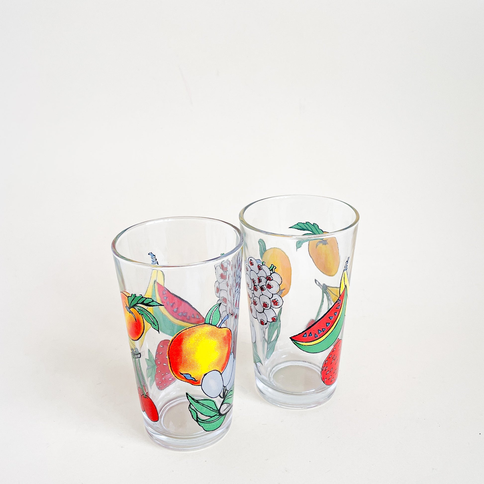Set of 2 fruit print glasses, made by KIG Indonesia.