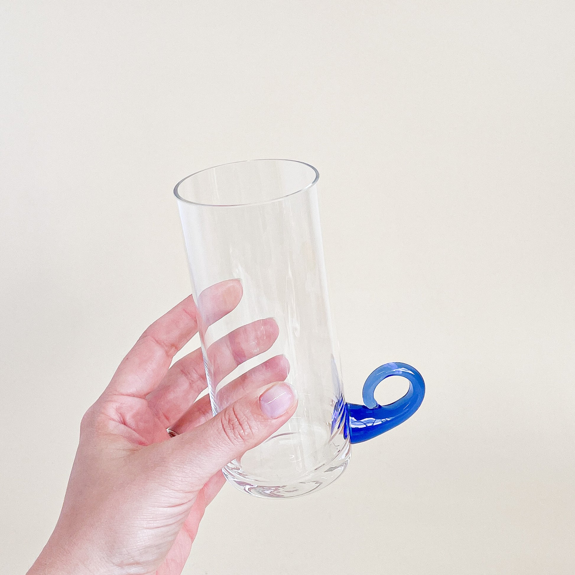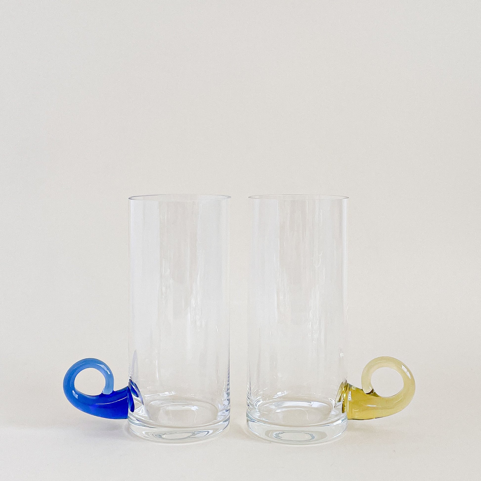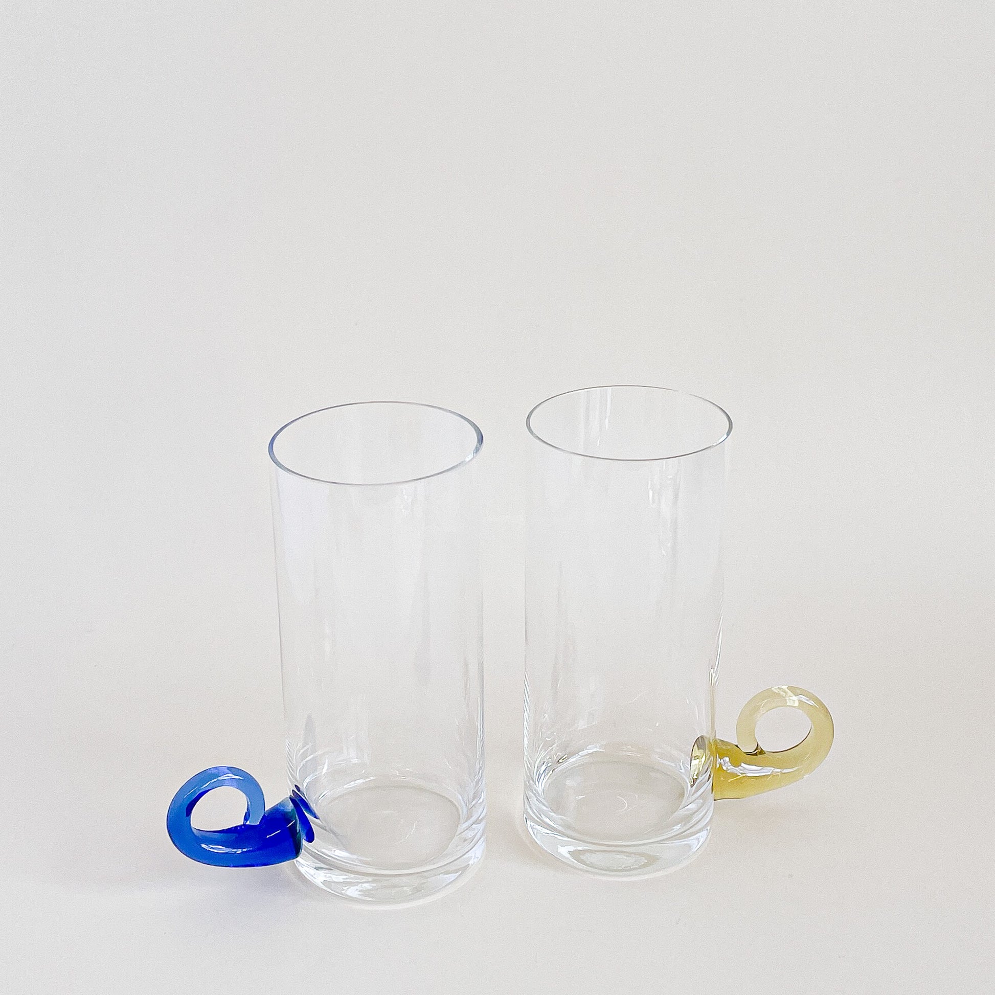 I fell in love with this set of 2 large glasses with colored handles in blown glass.