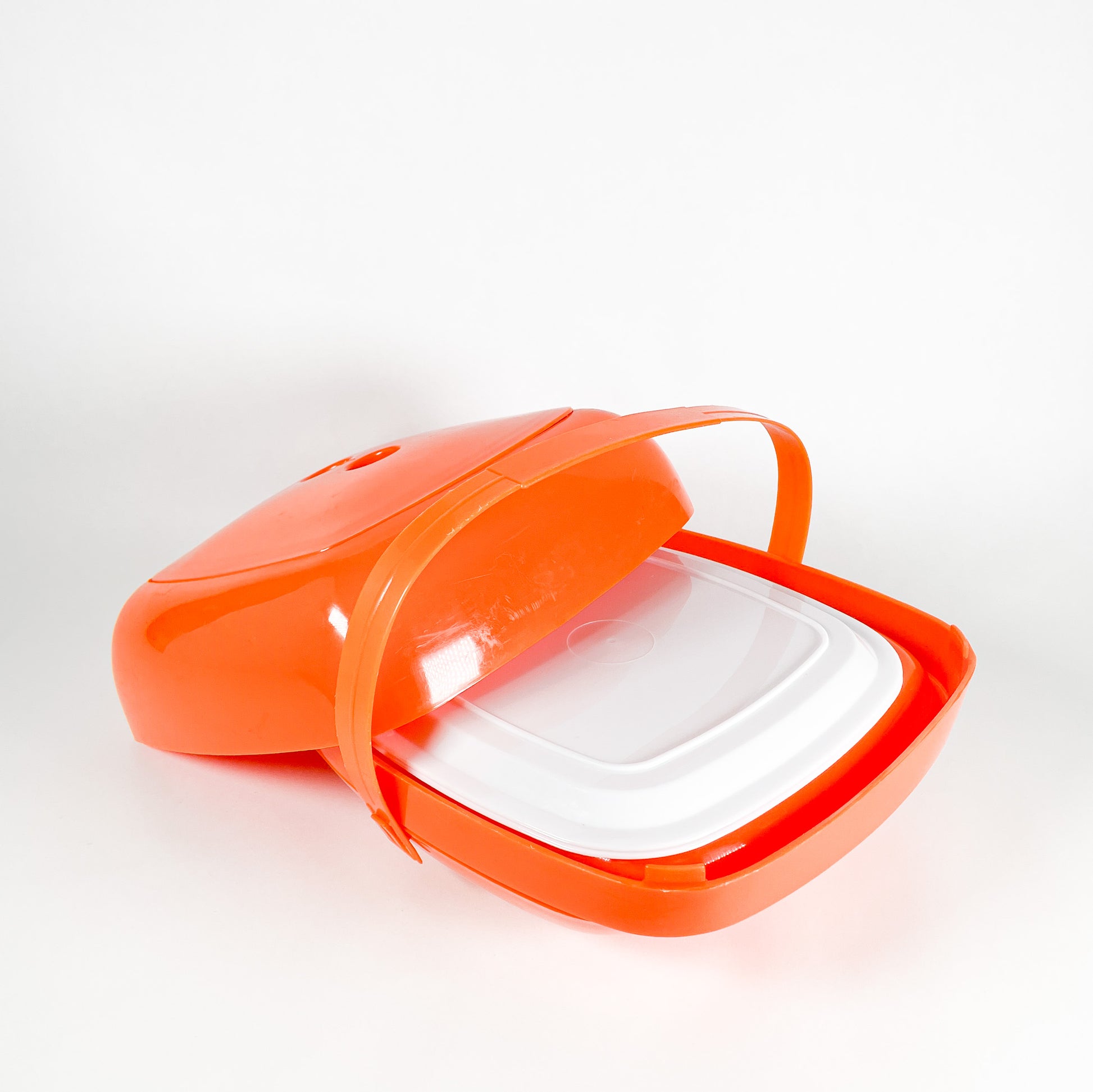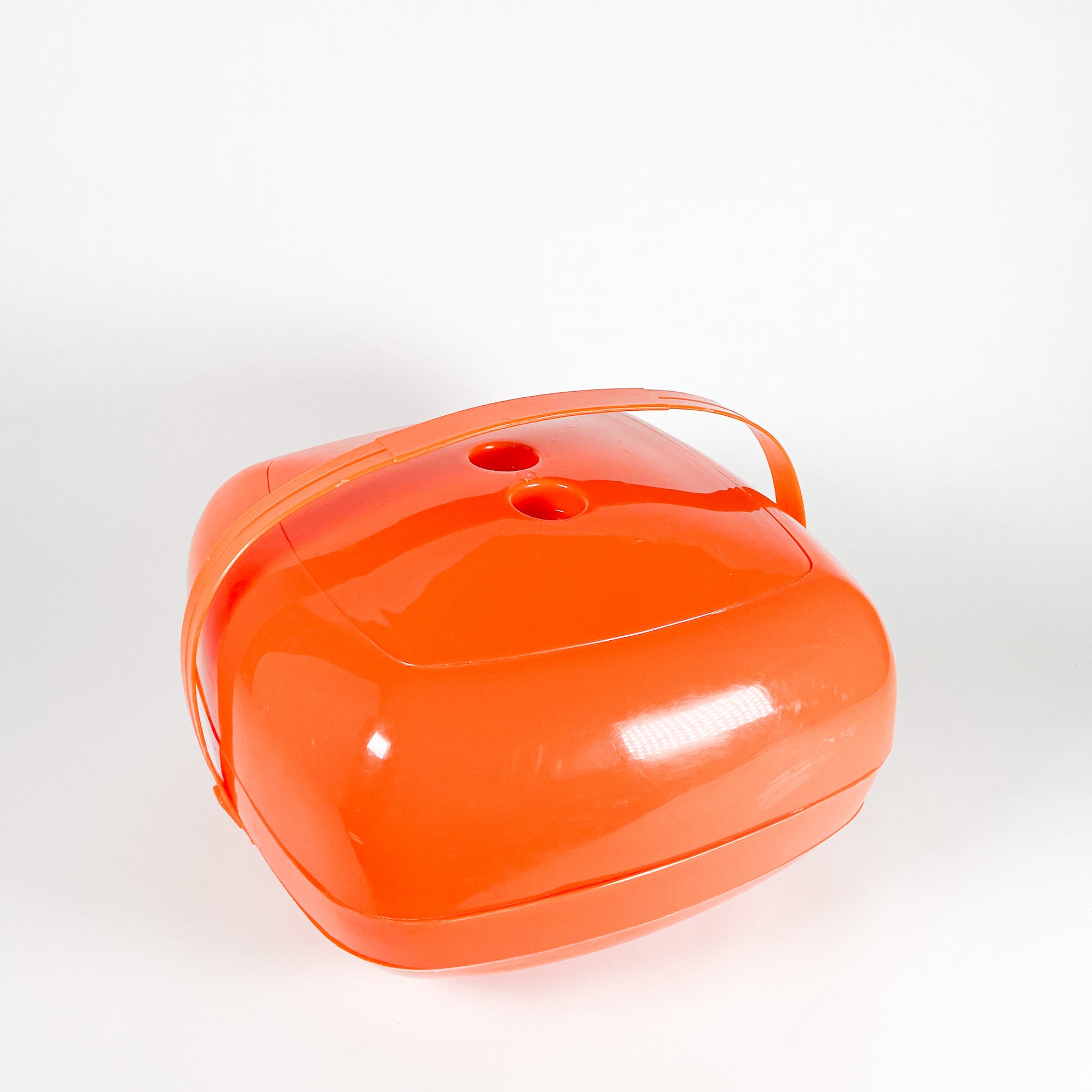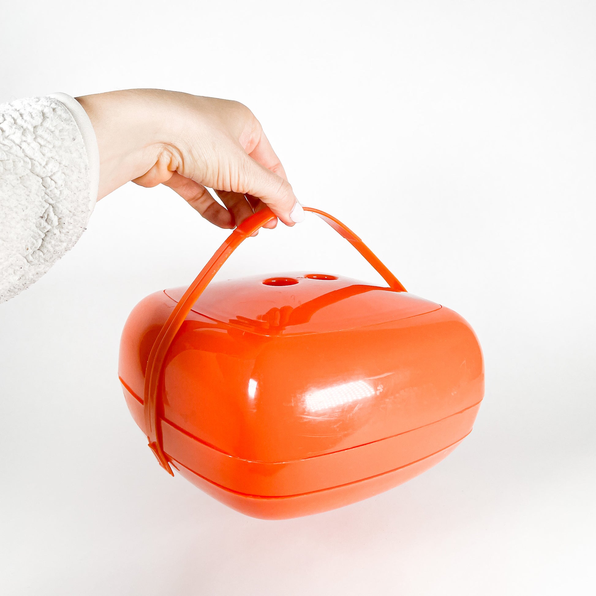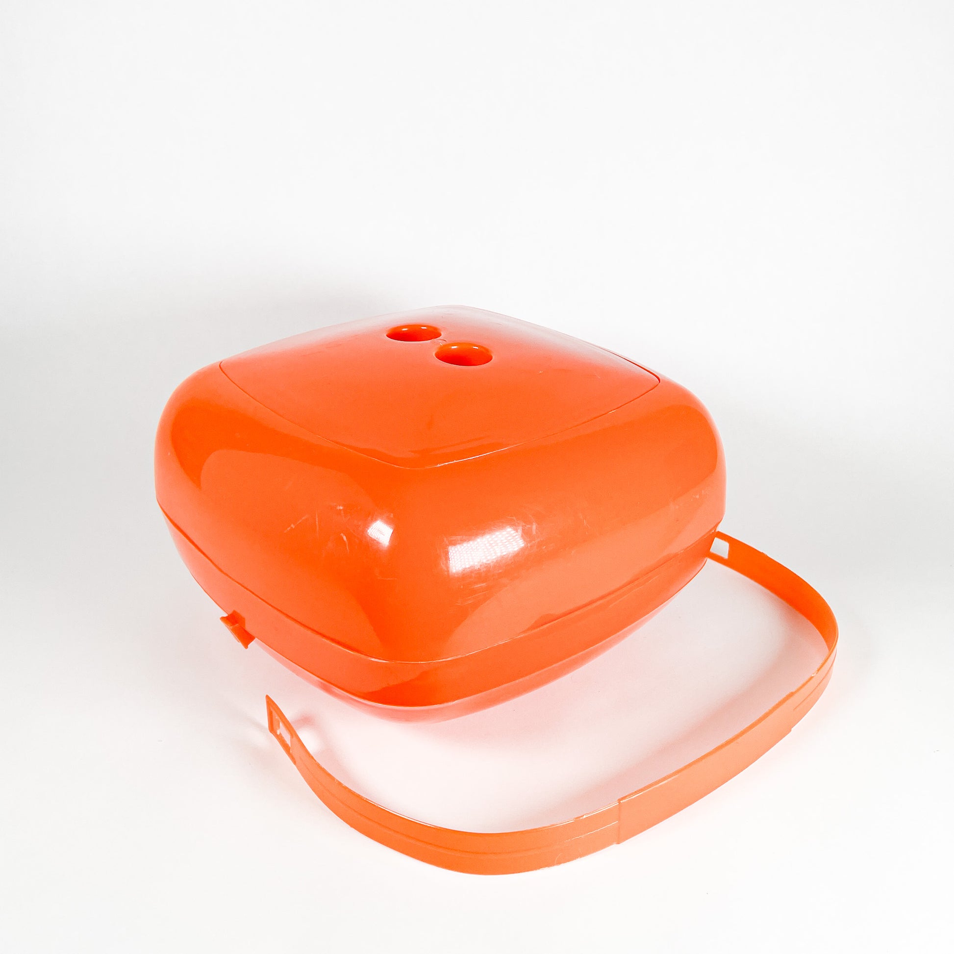 Really cool bright orange plastic space age style picnic set made in Mexico. You're going to be so stylish with this at the park this summer!!!