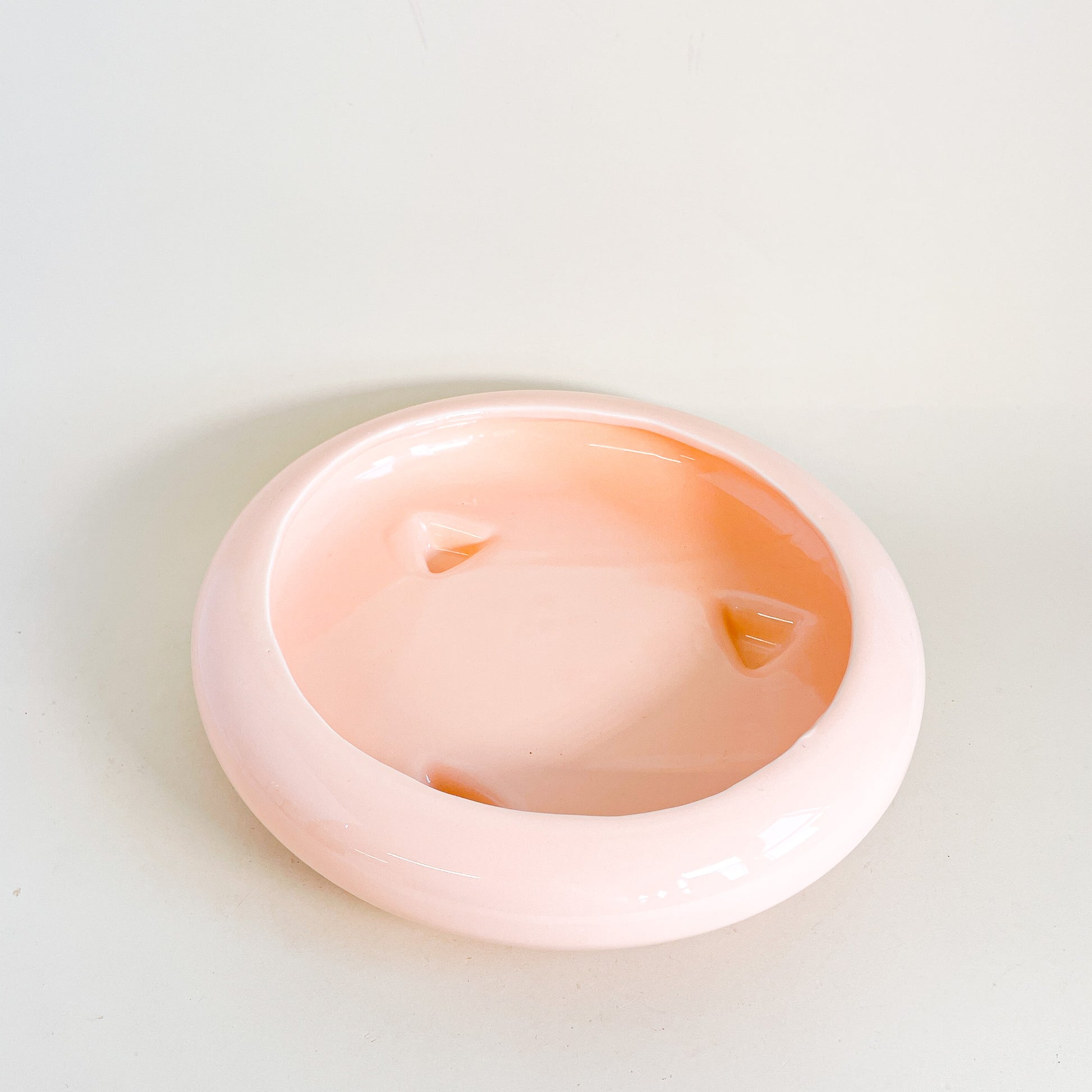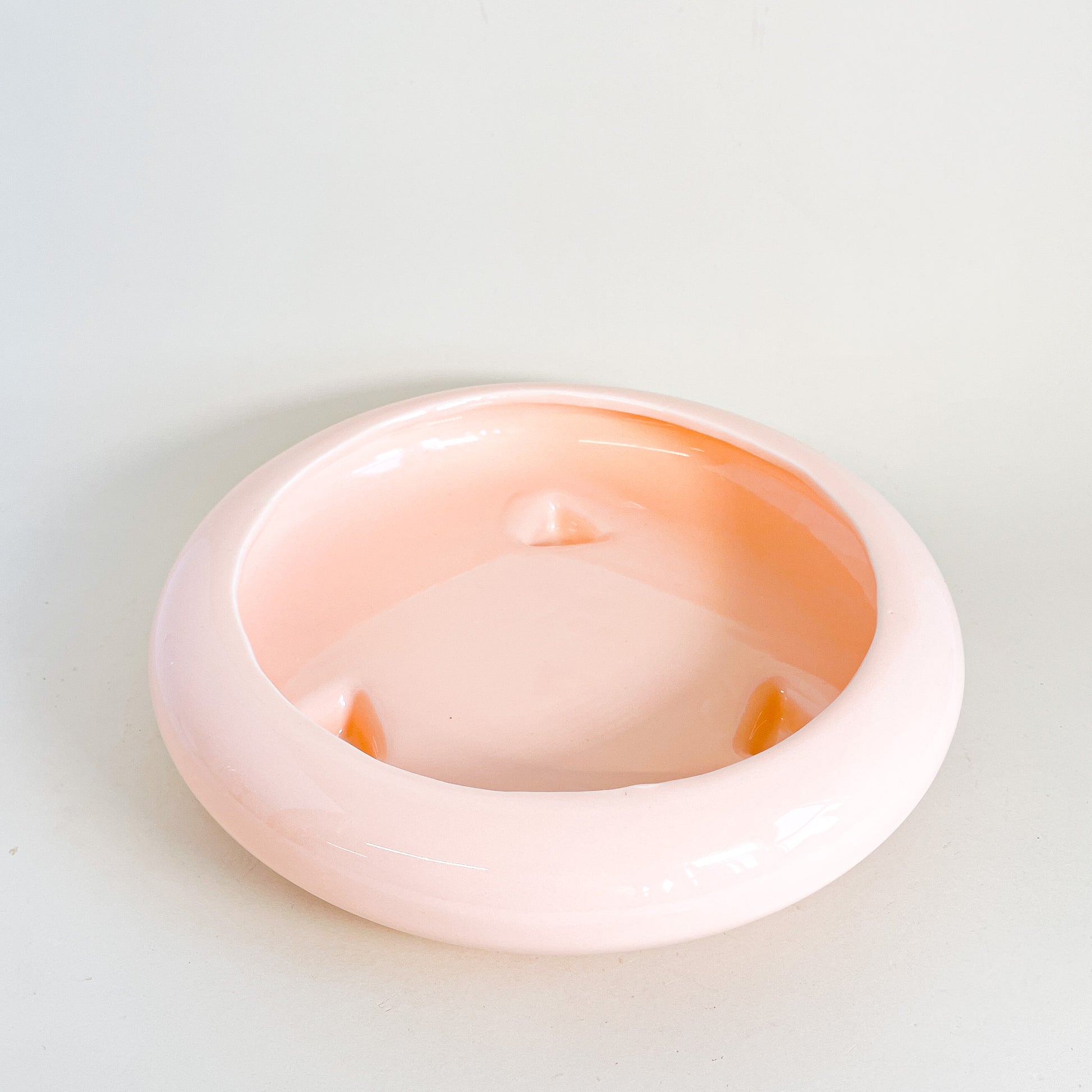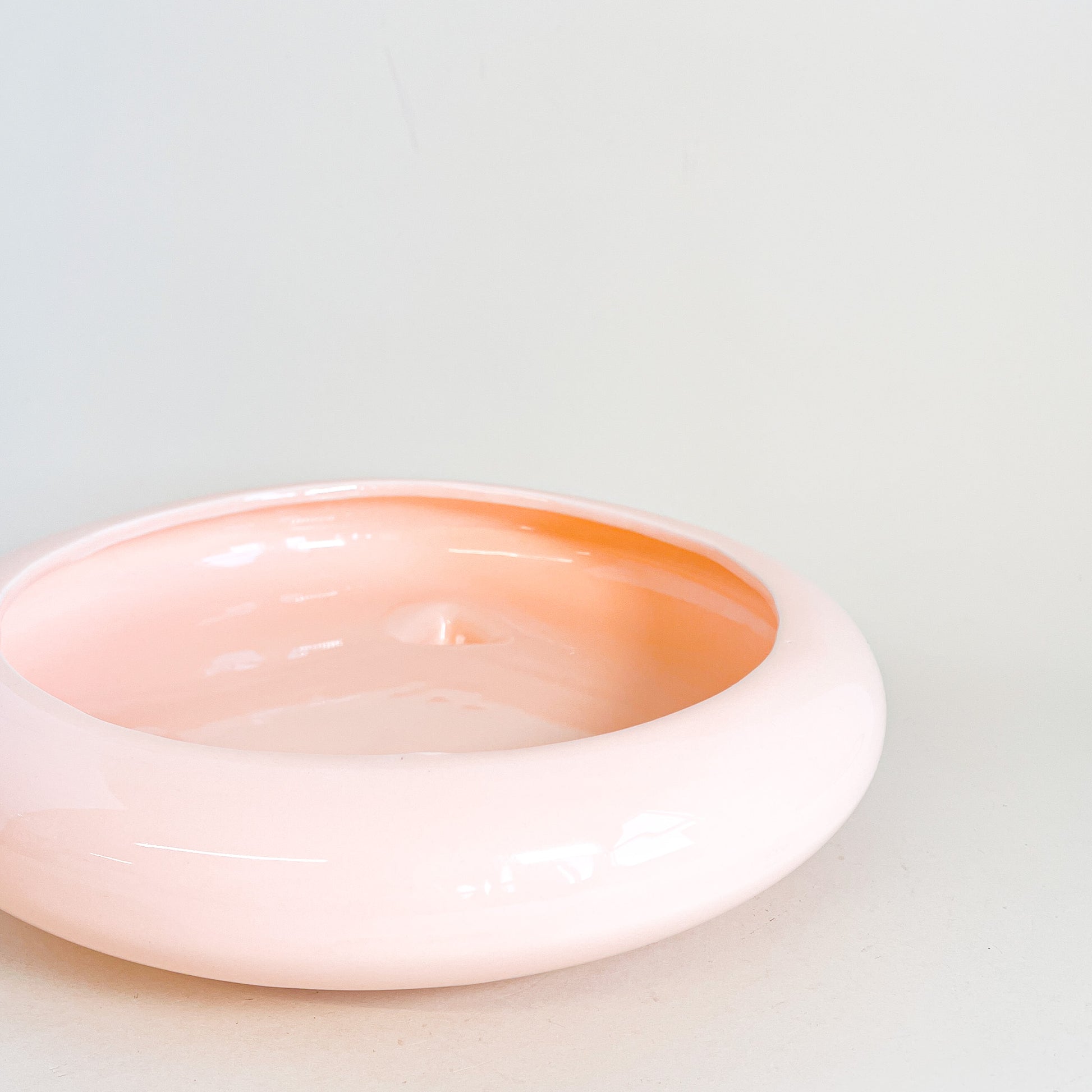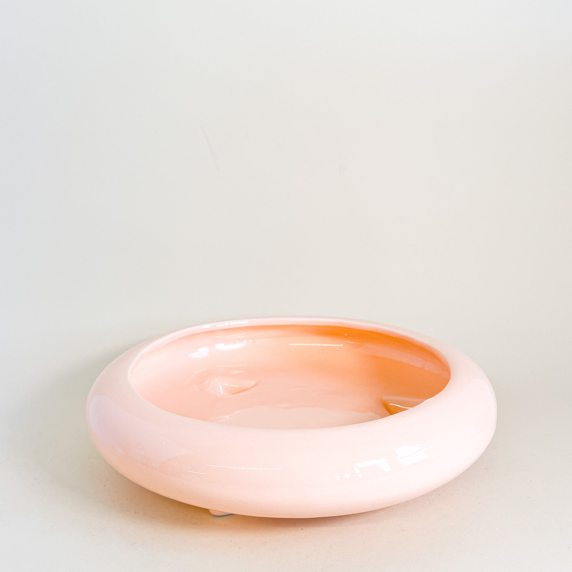 Large salmon pink ceramic bowl to use as a storage container or as a plant pot to create a small cactus garden. :)