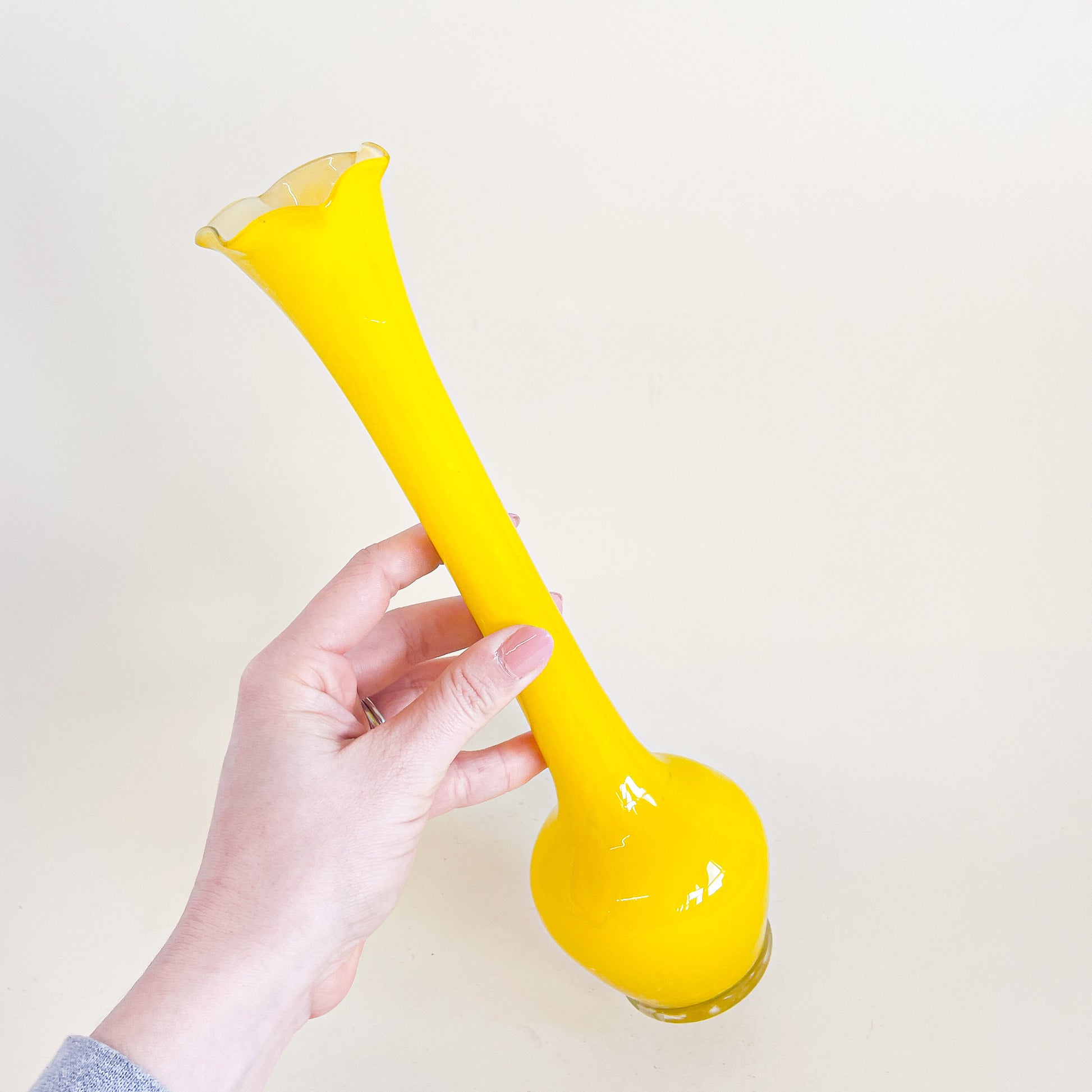 Large yellow blown glass soliflore