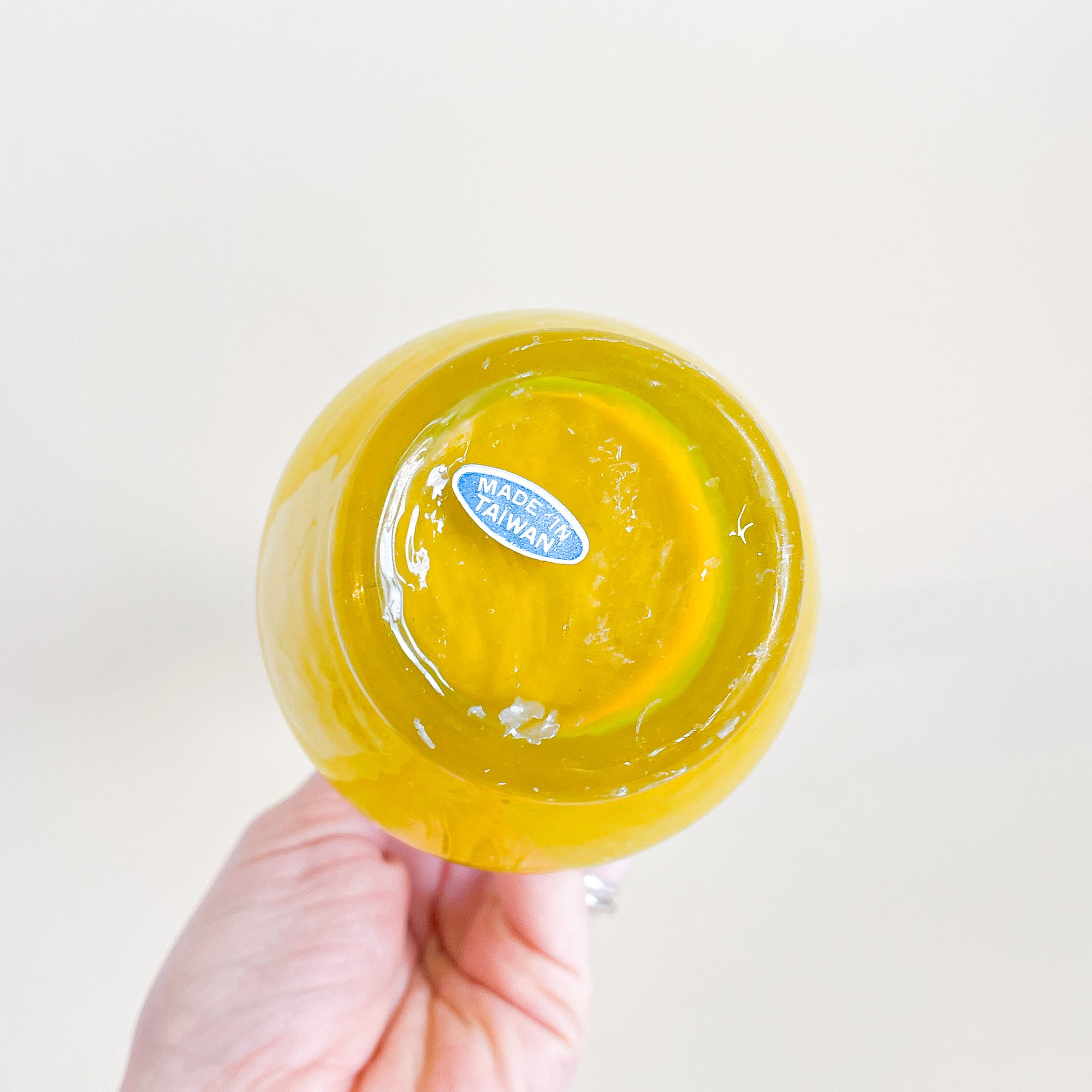 Large yellow blown glass soliflore, made in Taiwan.