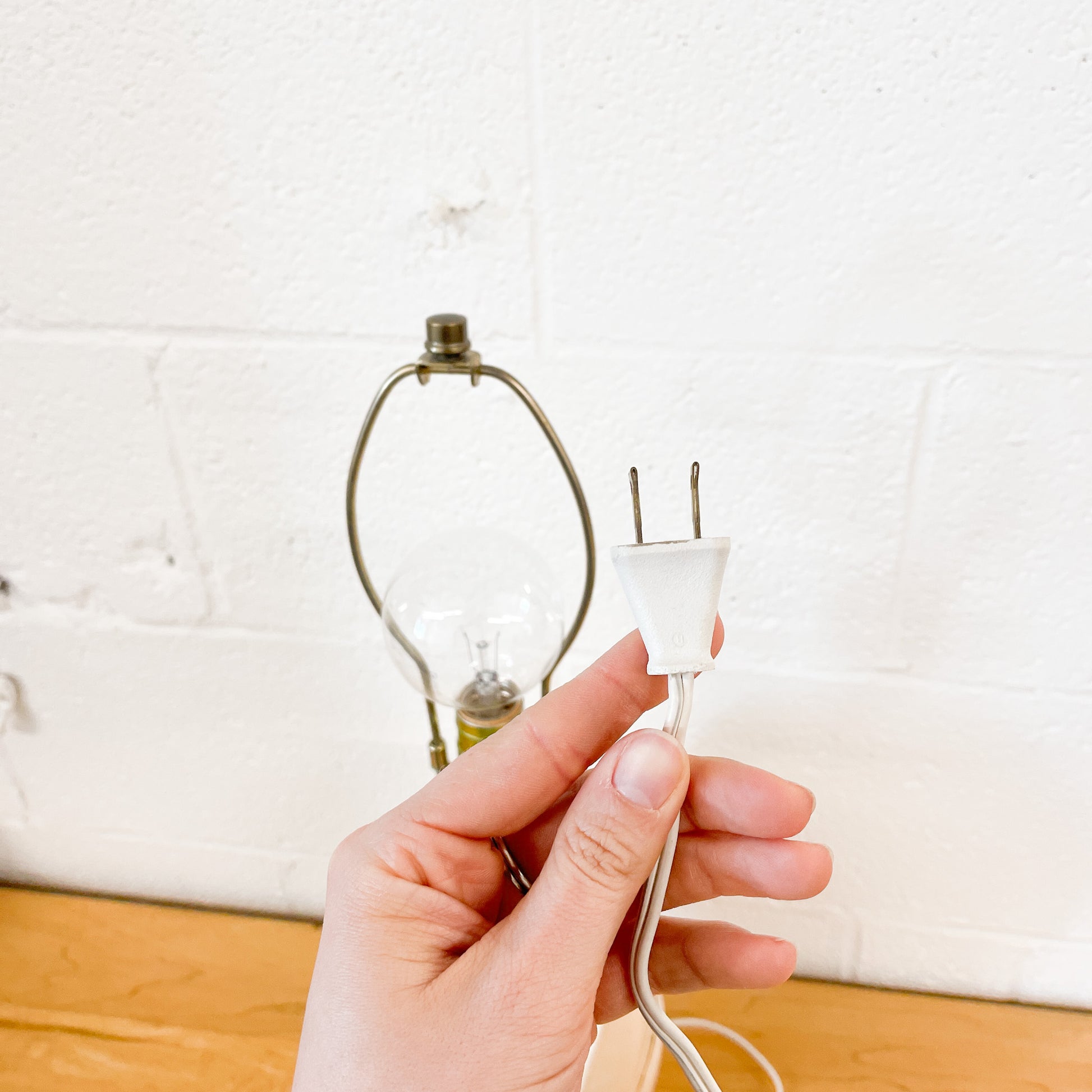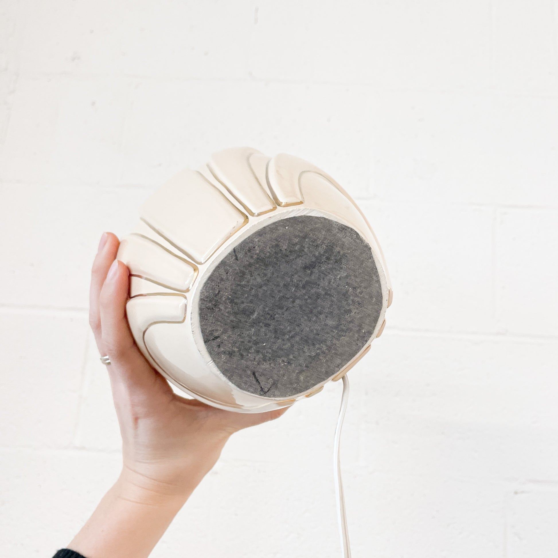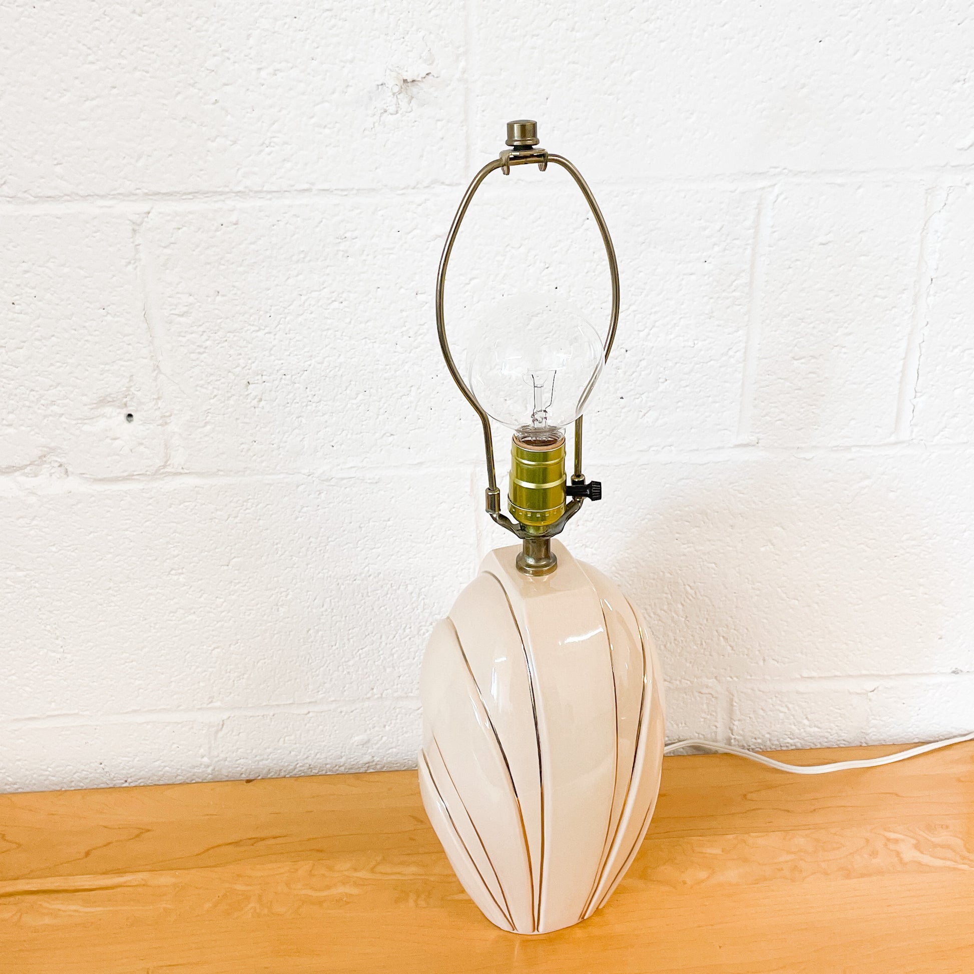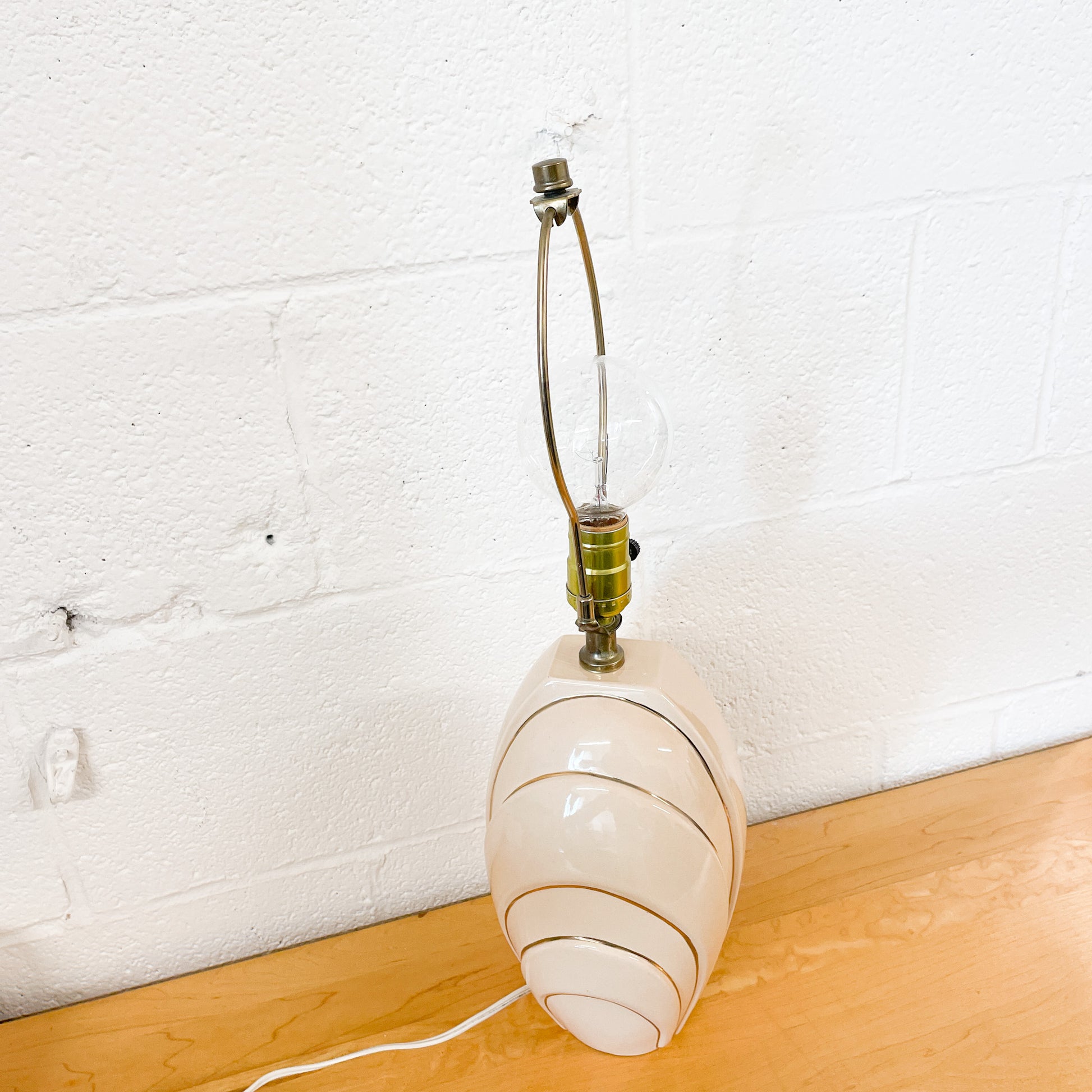 Beautiful large peach pink ceramic lamp with insertion of golden lines.