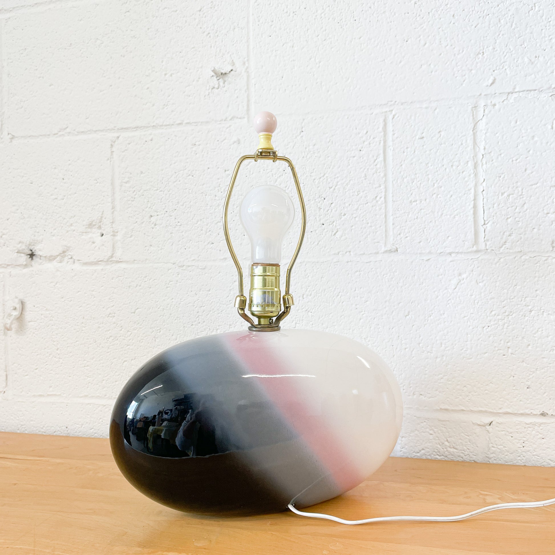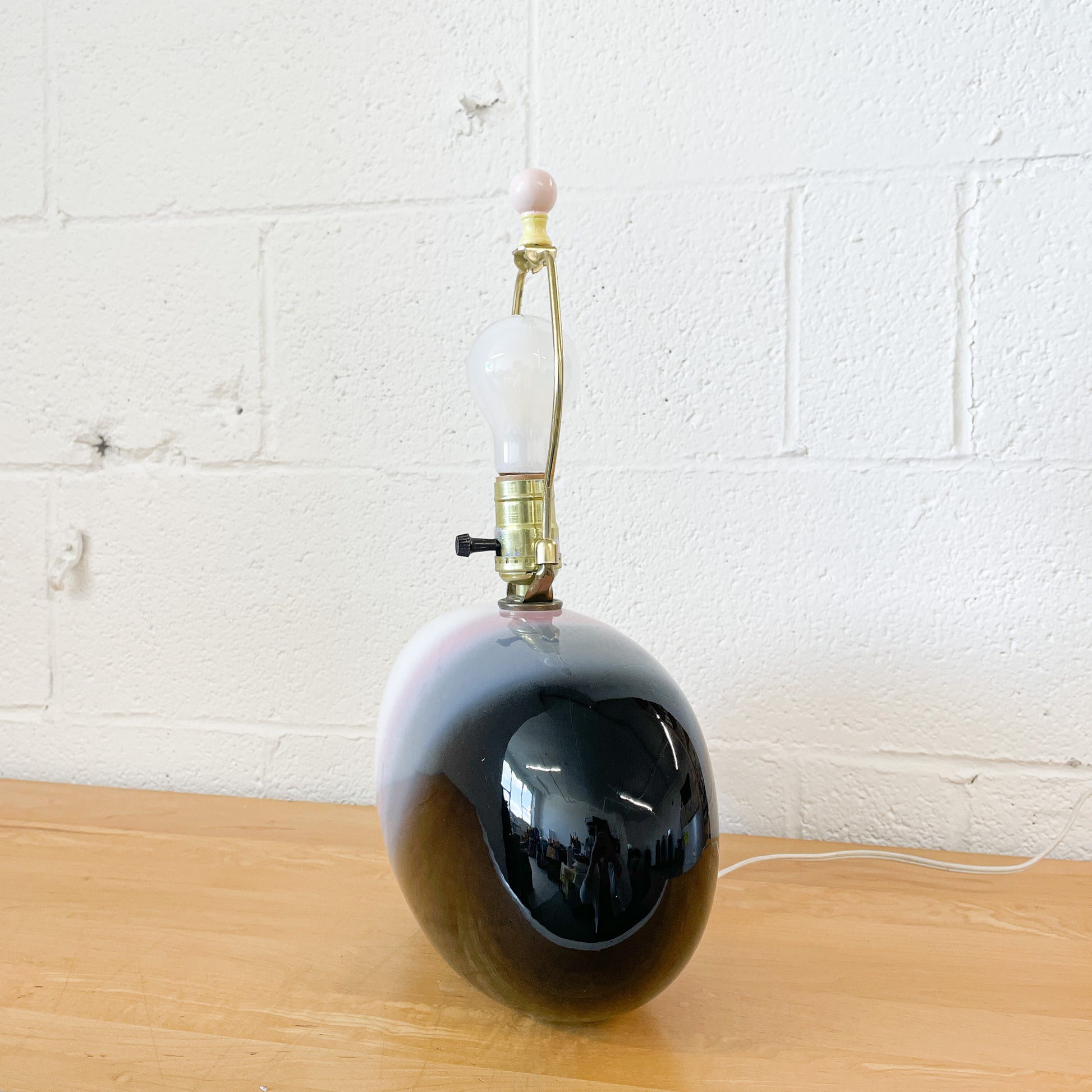 Oval ceramic lamp with gradient glaze, sold without bulb.