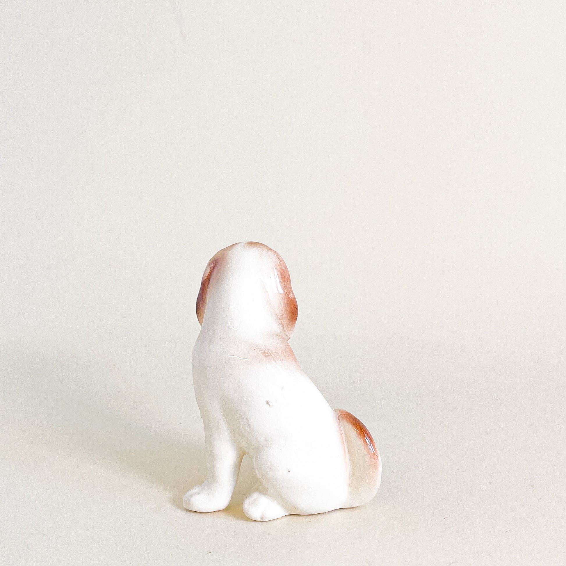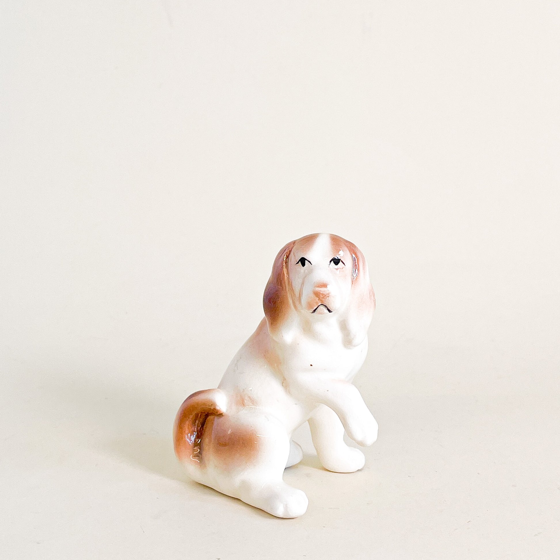 Cute little ceramic dog with raised paw.