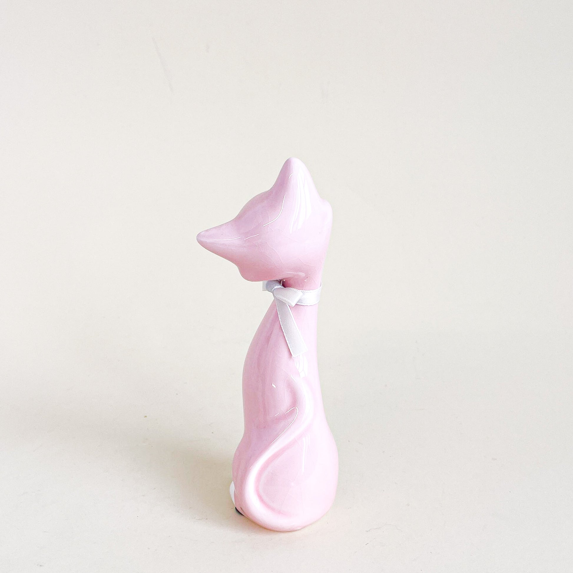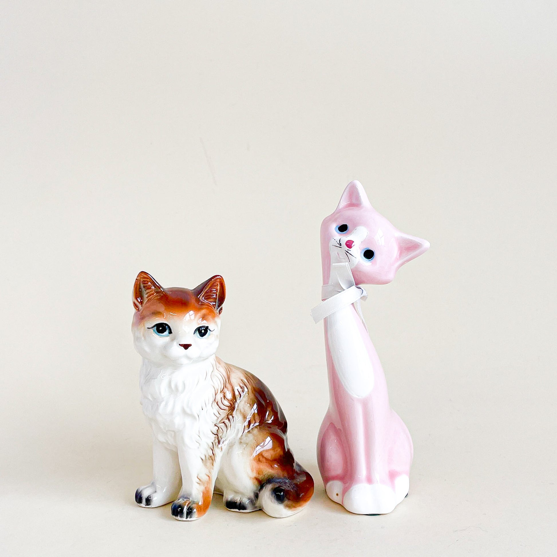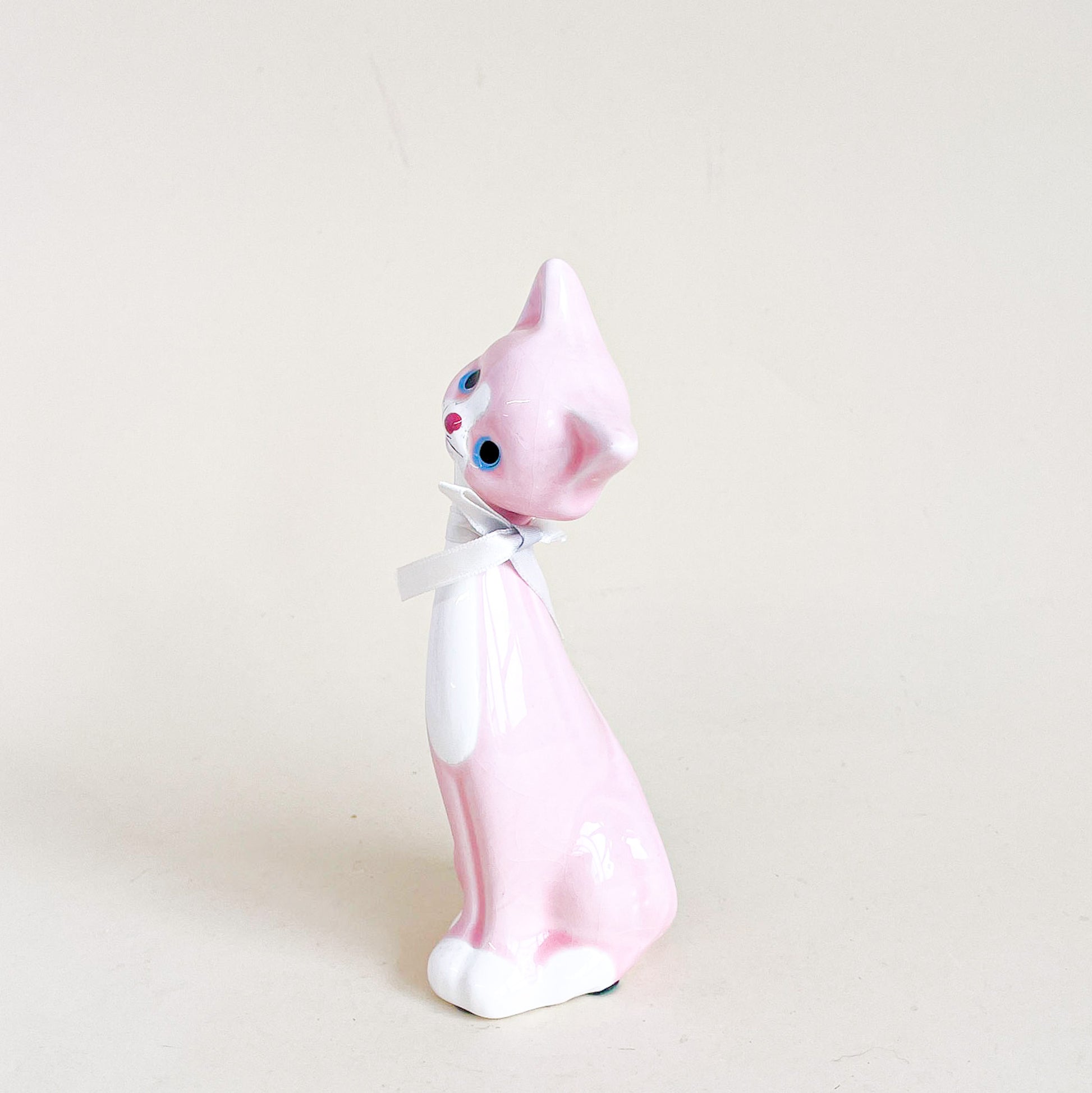 Very good vintage condition, the glaze of the pink cat is cracked on the surface.