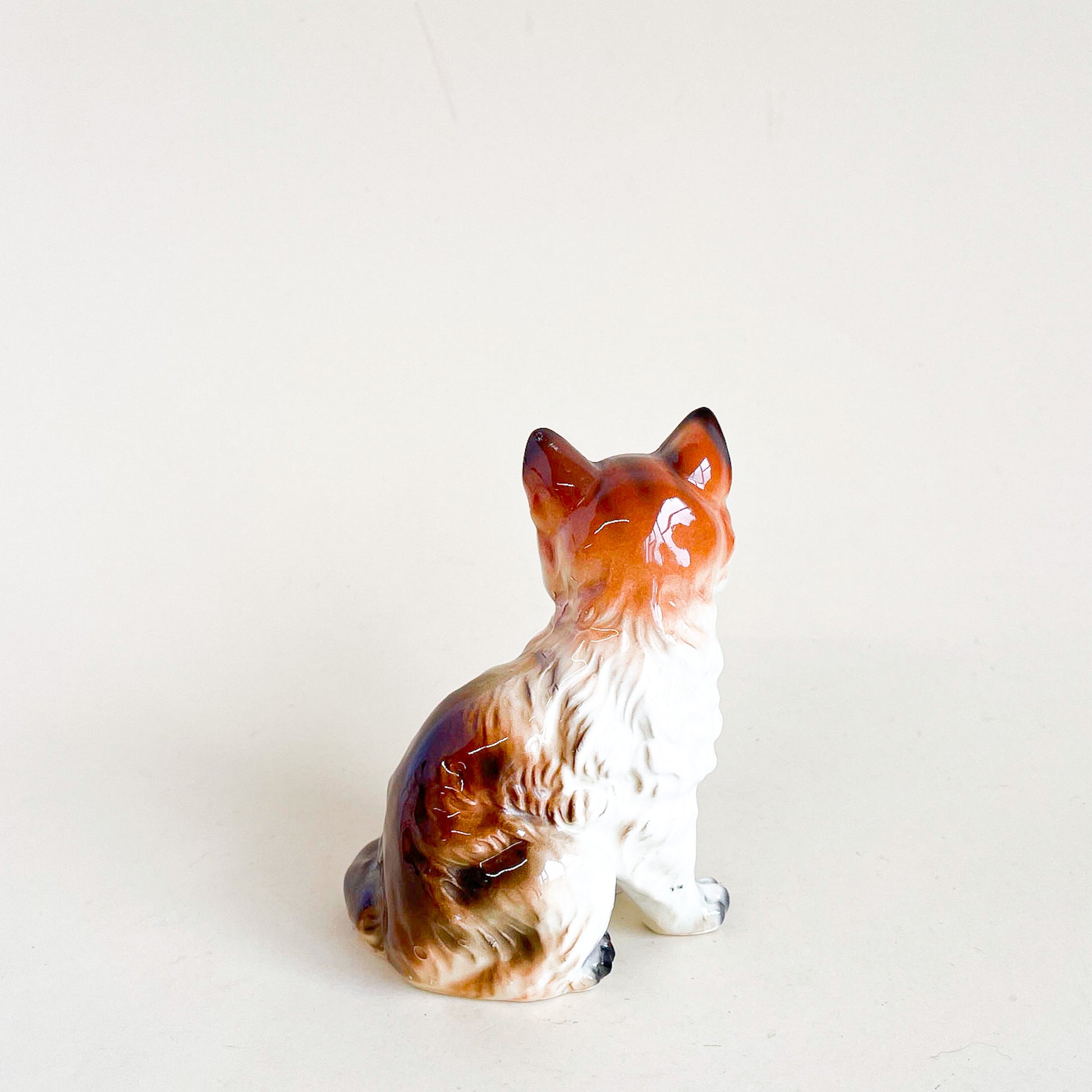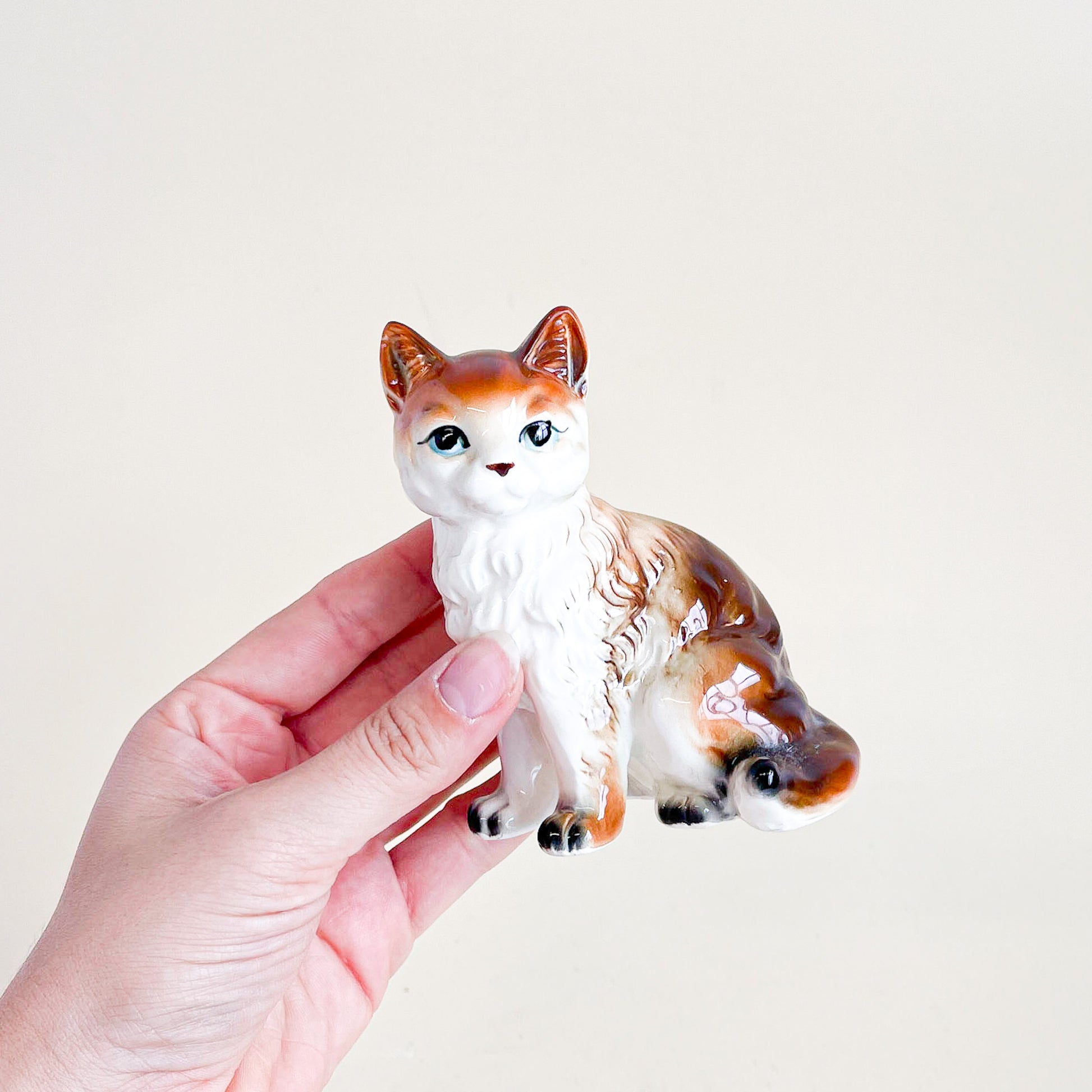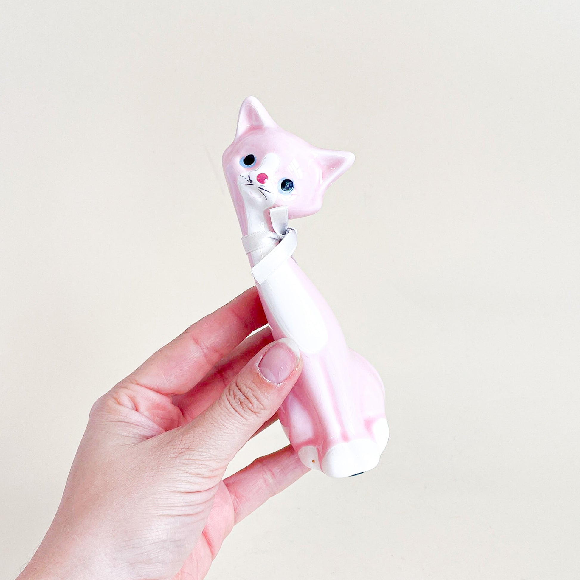 Very good vintage condition, the glaze of the pink cat is cracked on the surface.