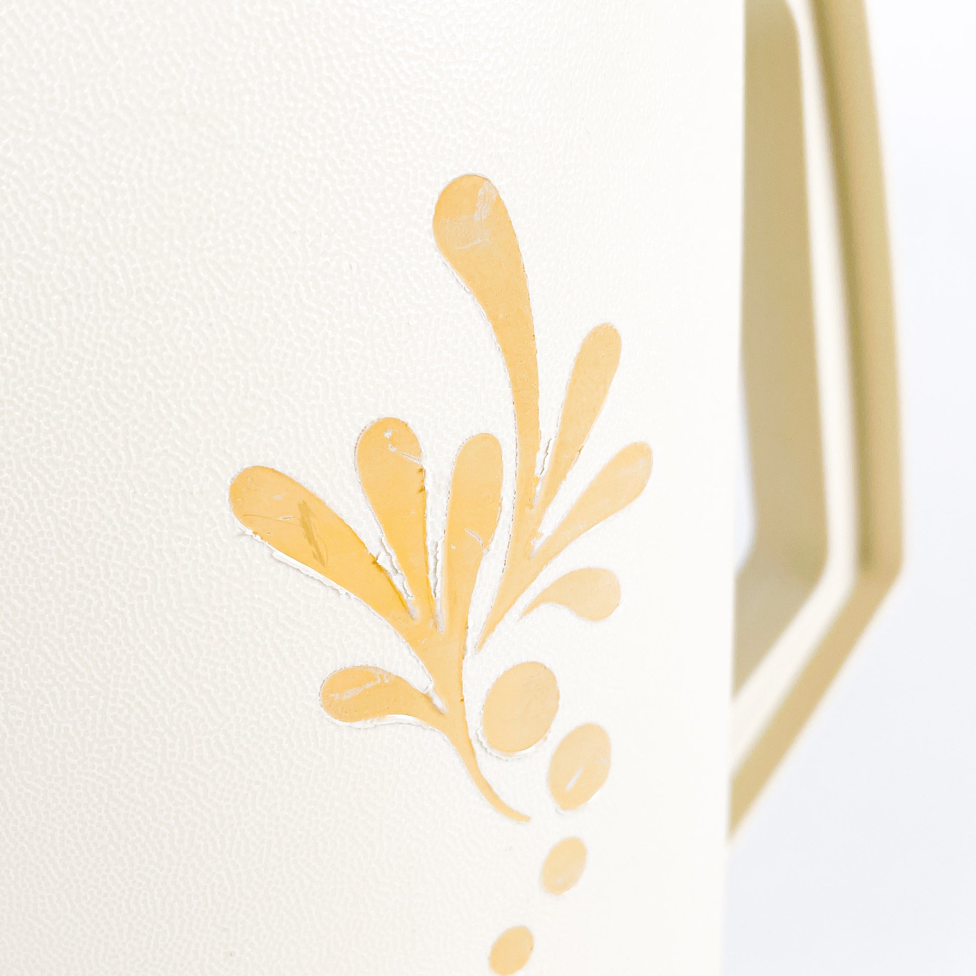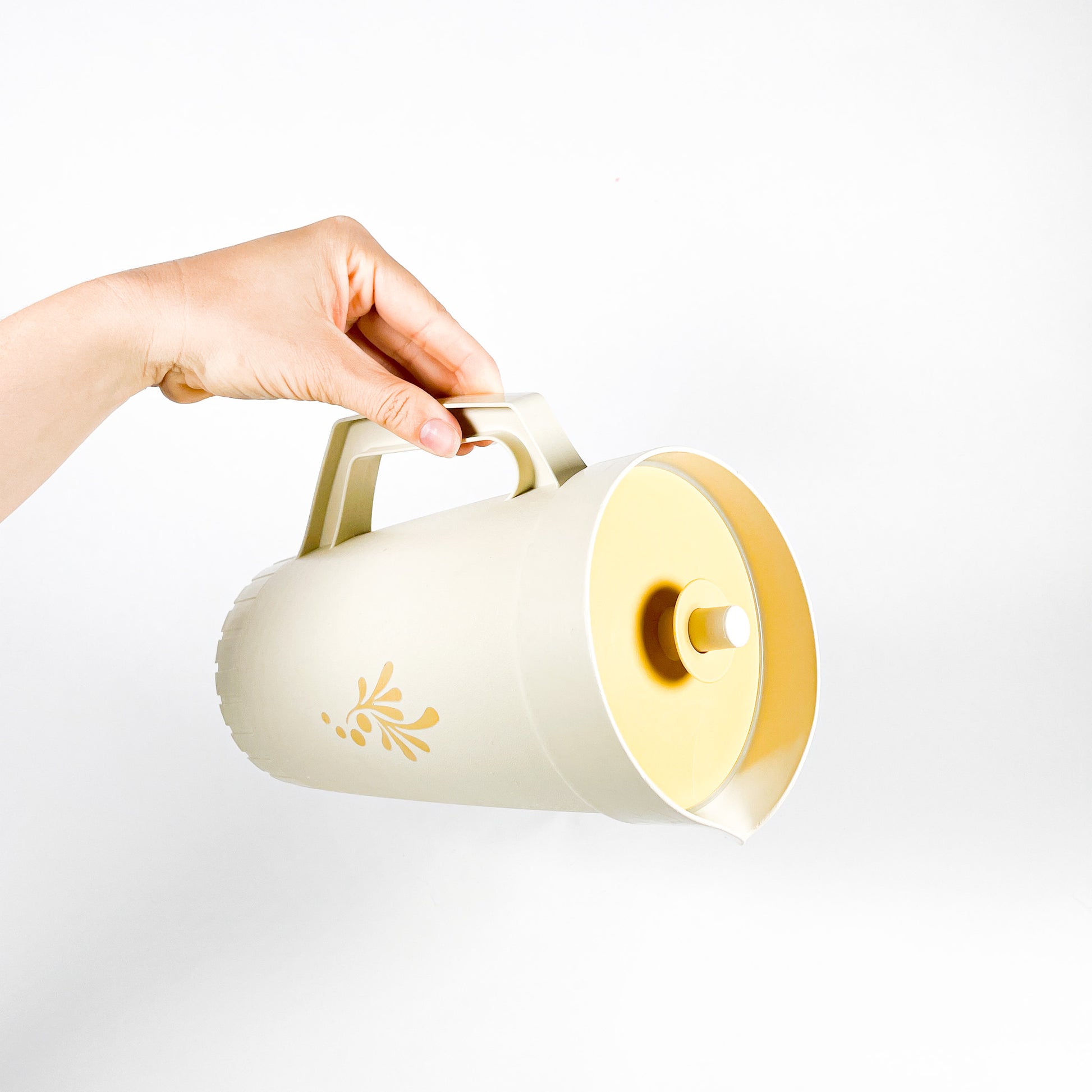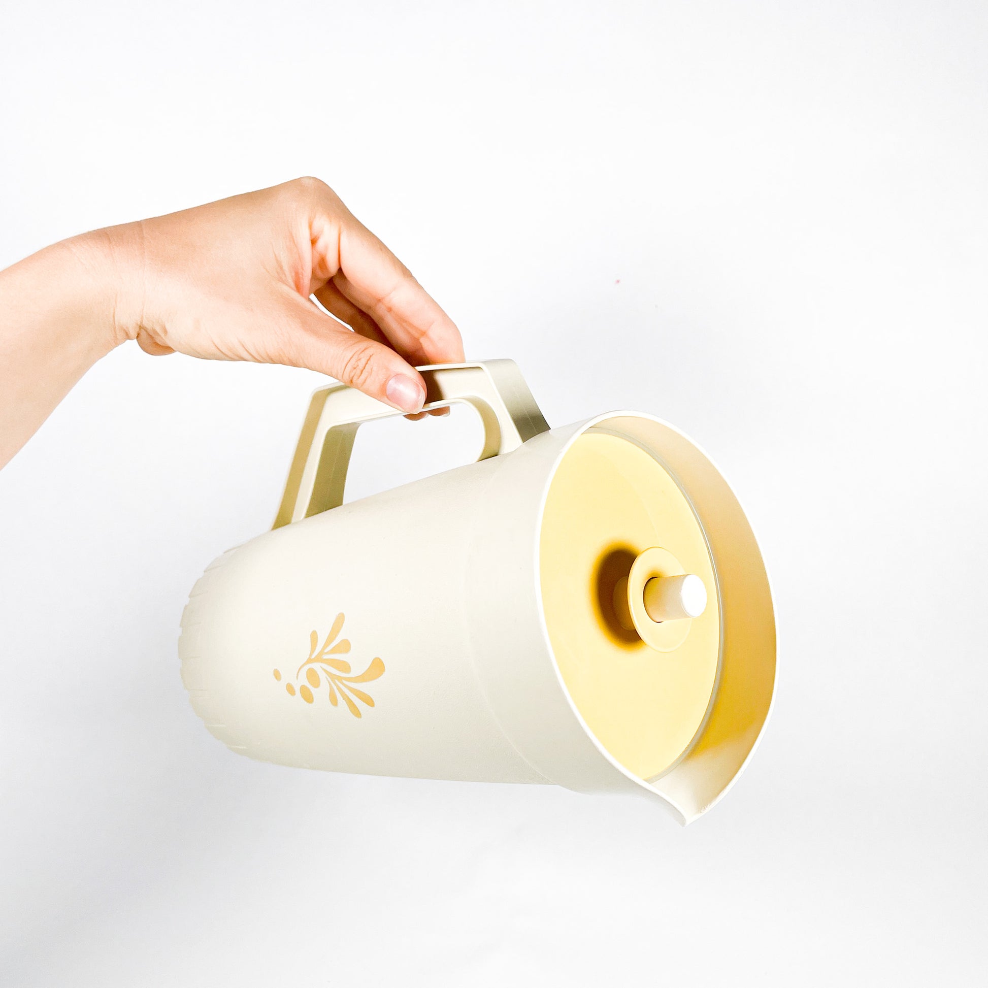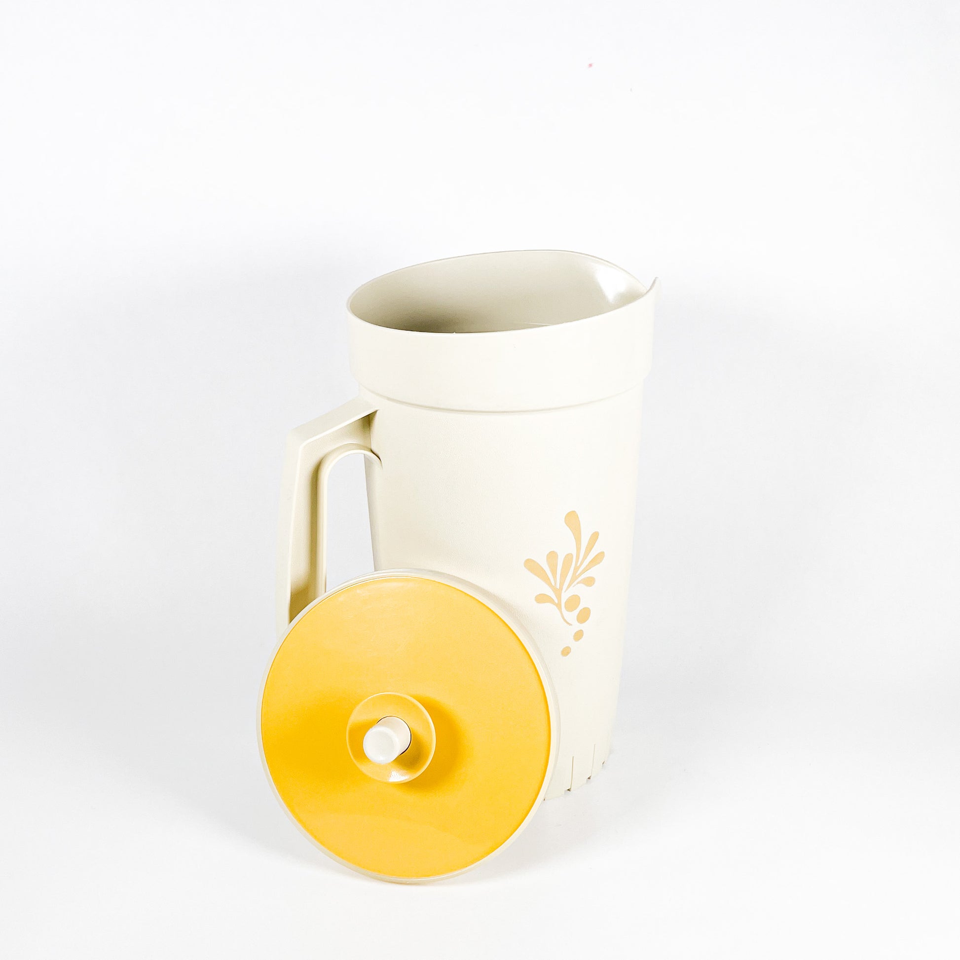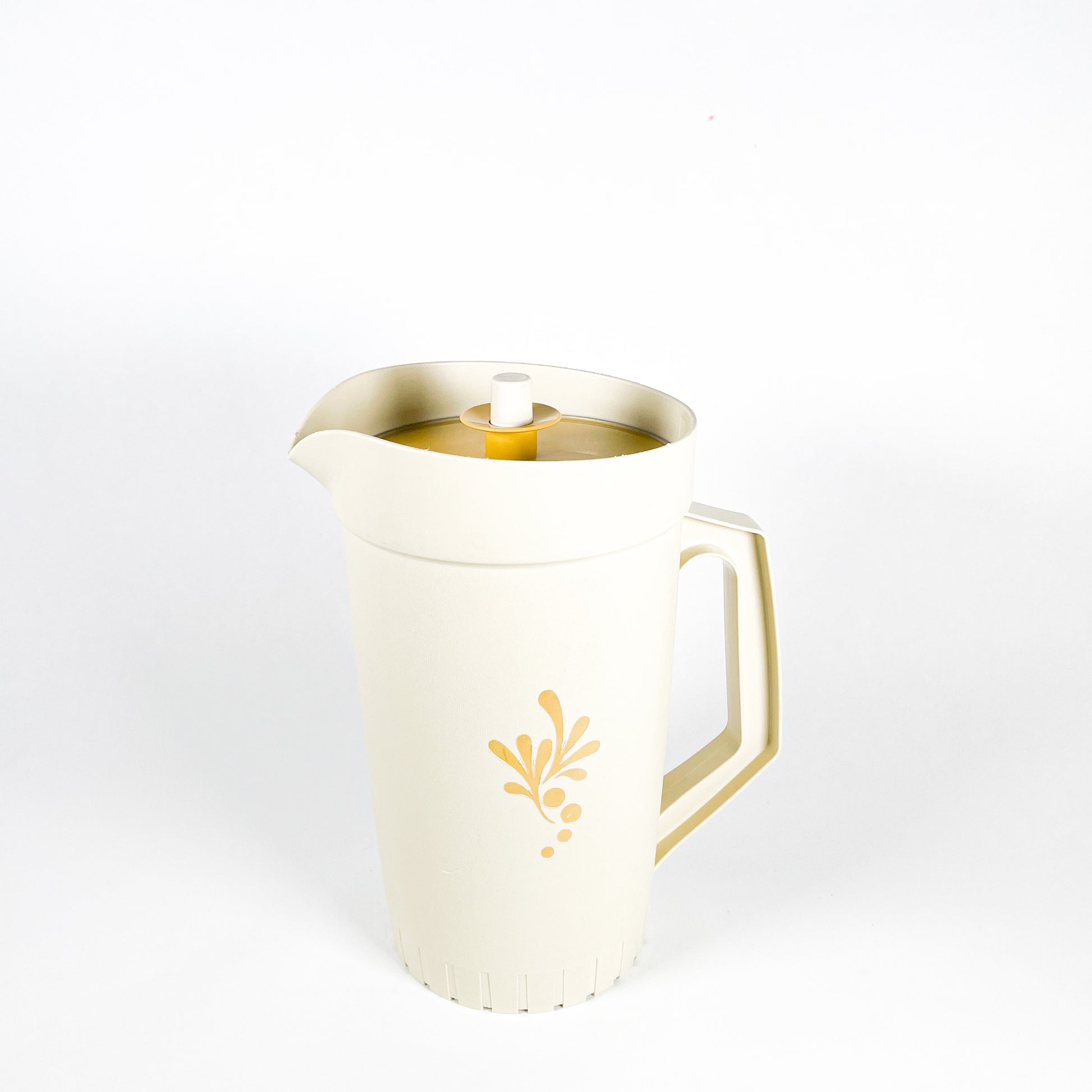Classic Tupperware beige plastic juice pitcher, made in Canada.