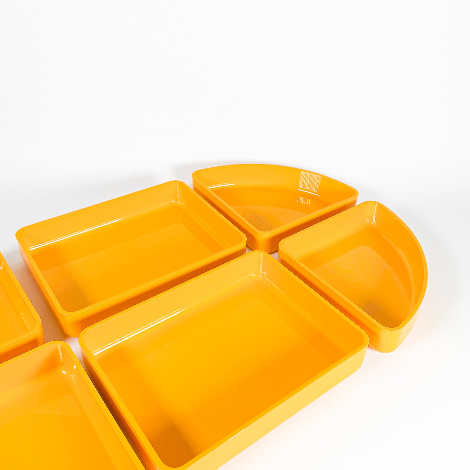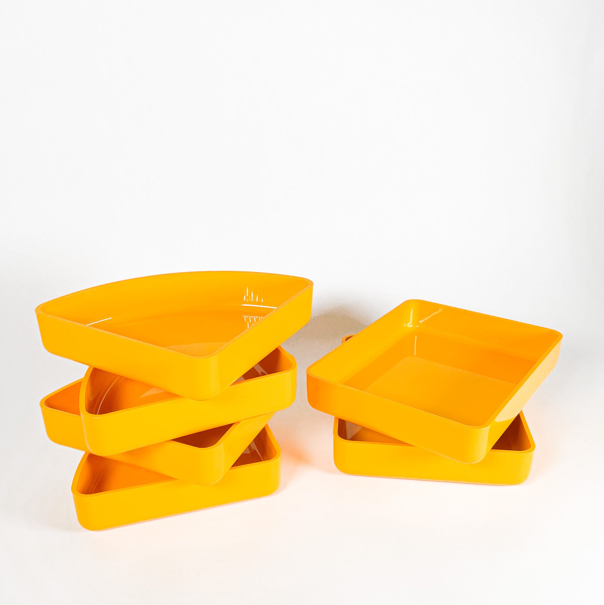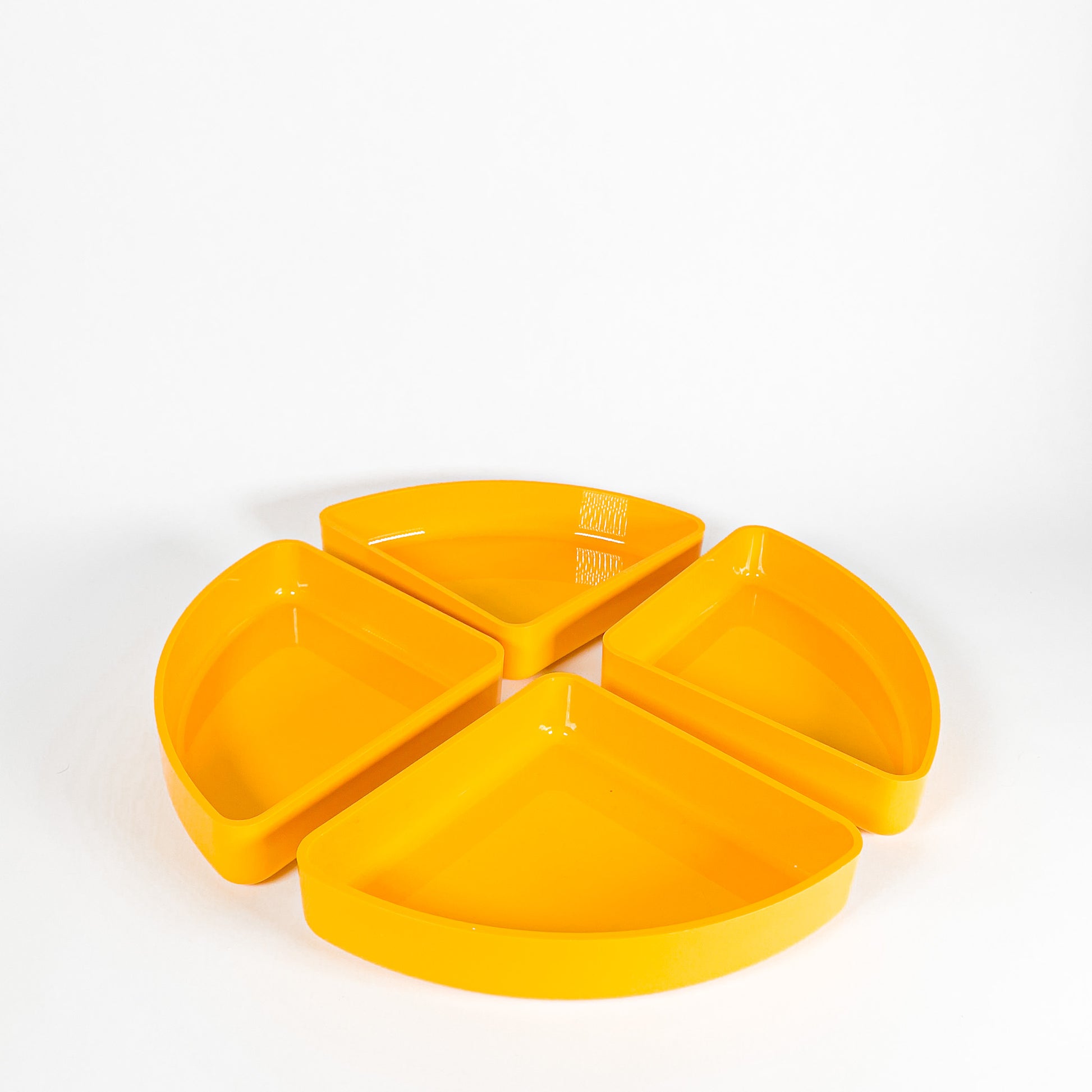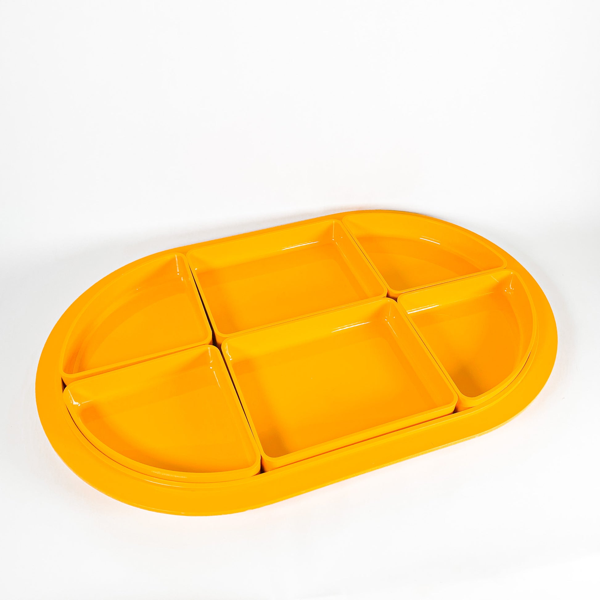 An iconic piece by designer André Morin (some pieces of this collection are exhibited at the National Museum of Fine Arts of Quebec )! Large yellow melamine serving tray made in Quebec by IPL. The 6 compartments are removable, so it is perfect for serving snacks as an aperitif! Big big crush on him!