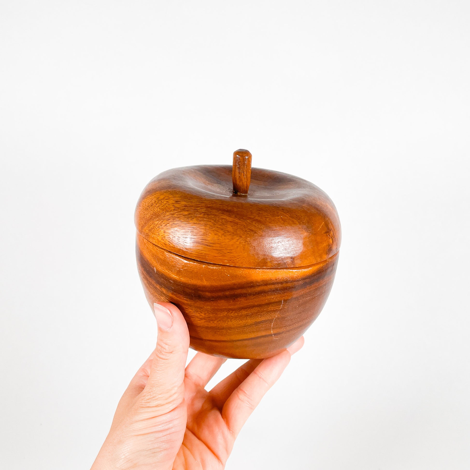 Apple-shaped wooden container, perfect for storing jewelry or any other small things.