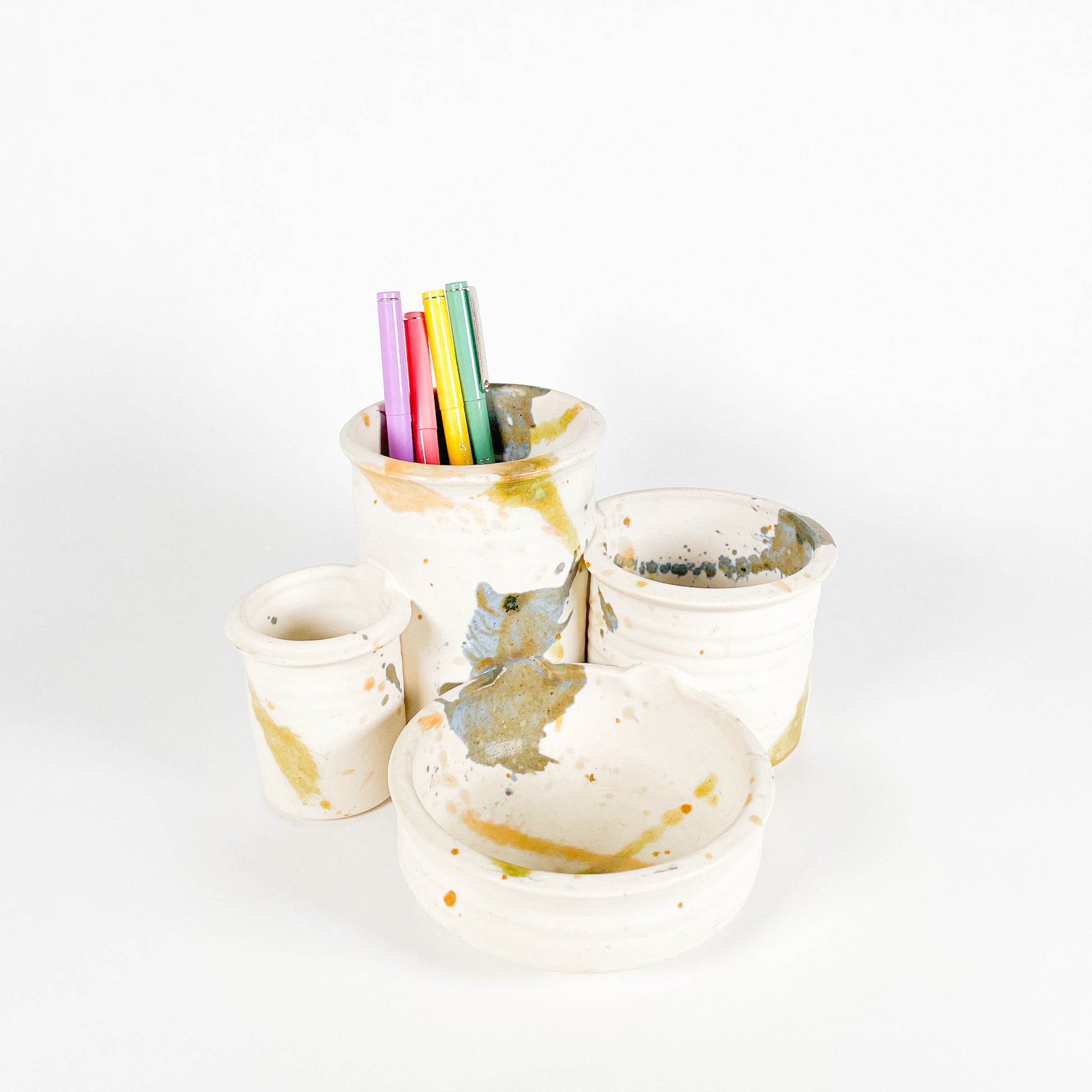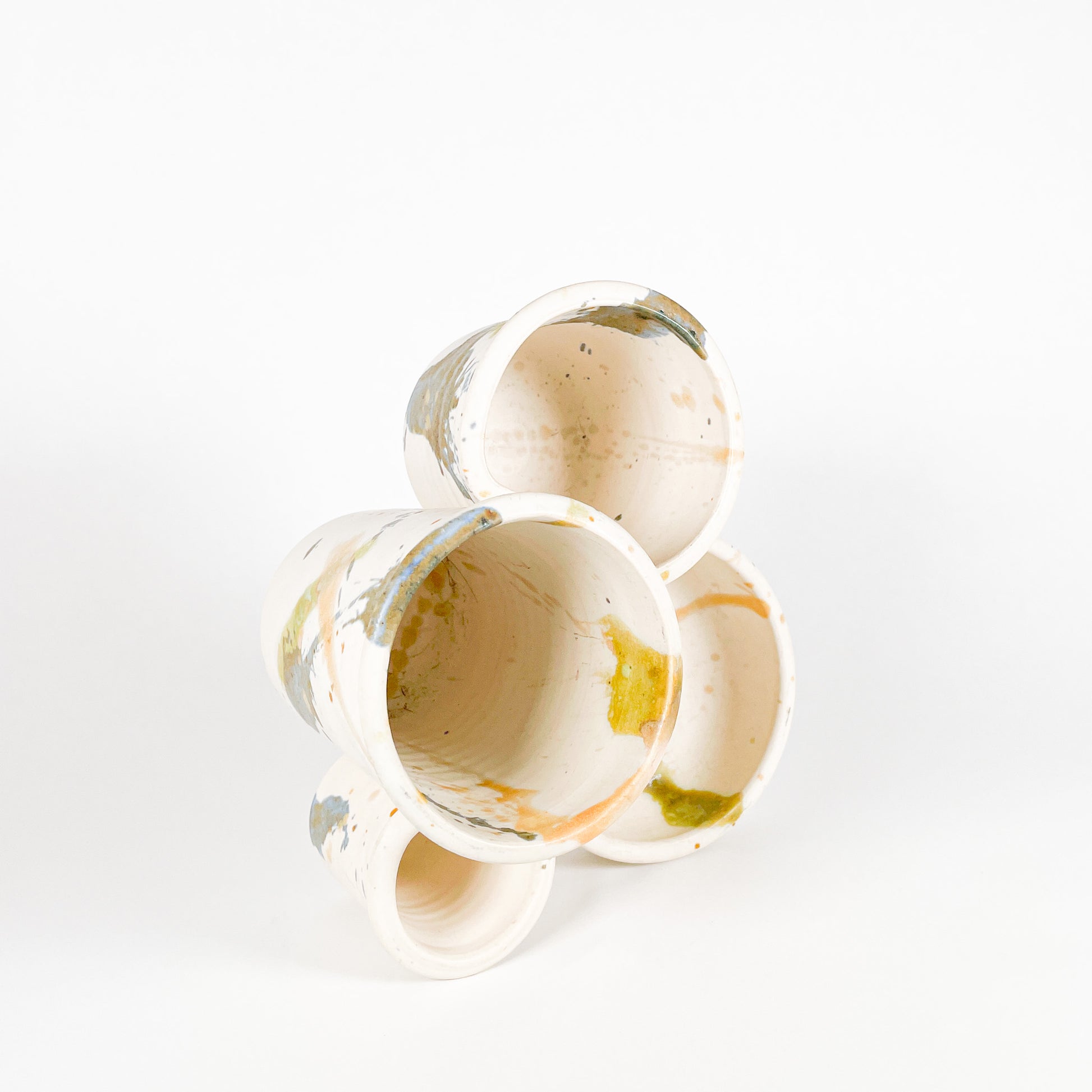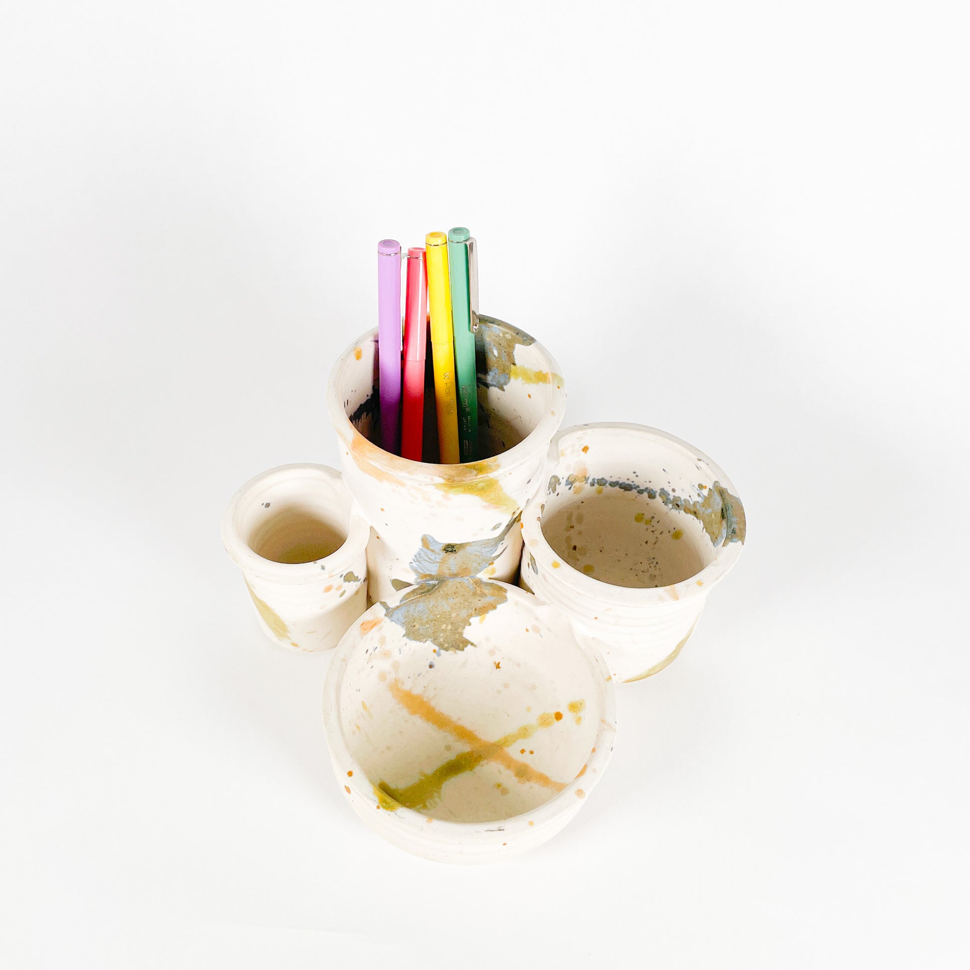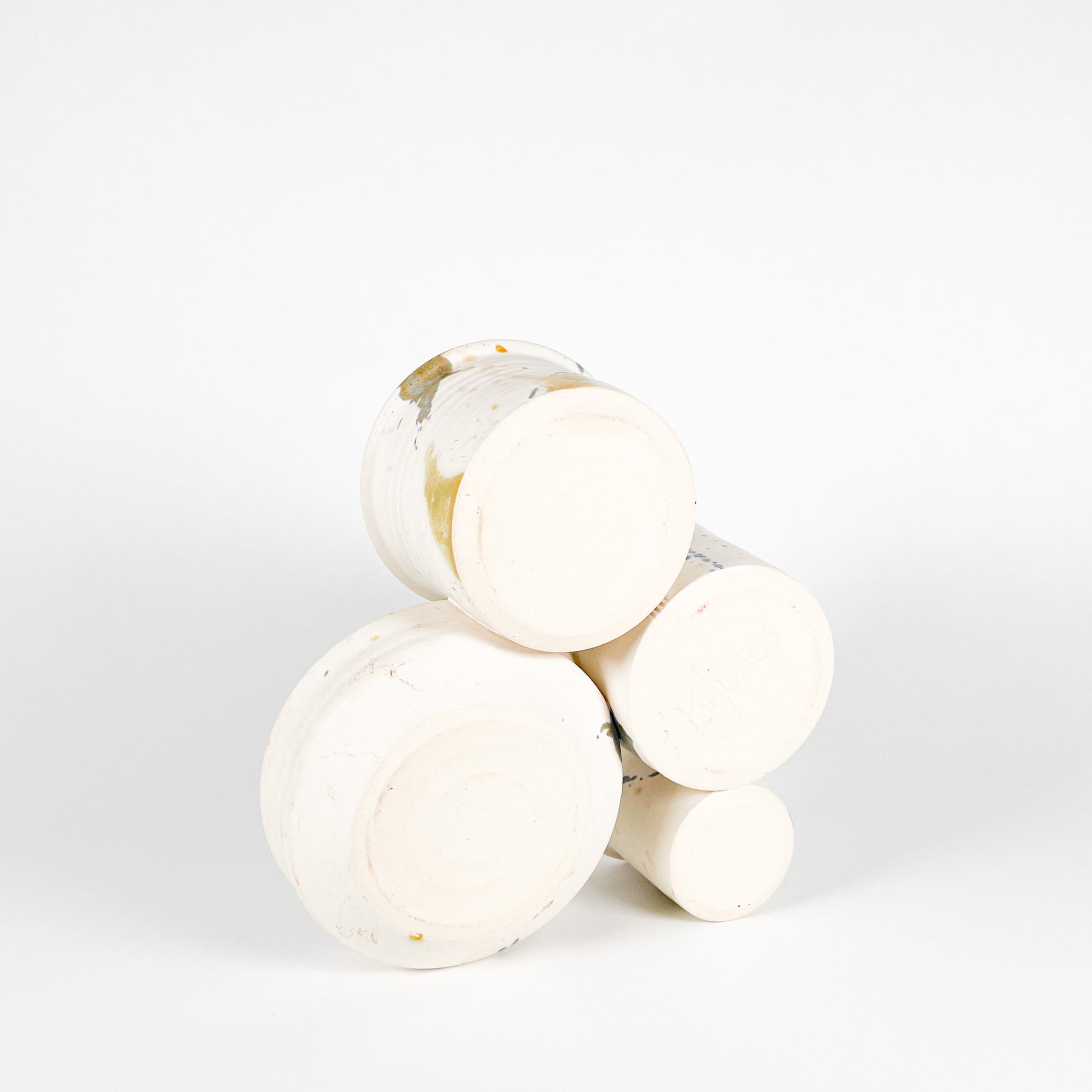 Set of sculptural style stoneware pots (all glued together), handmade and signed below.