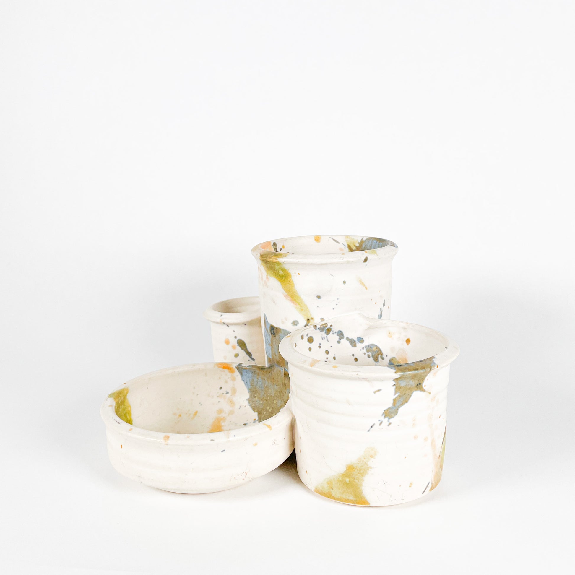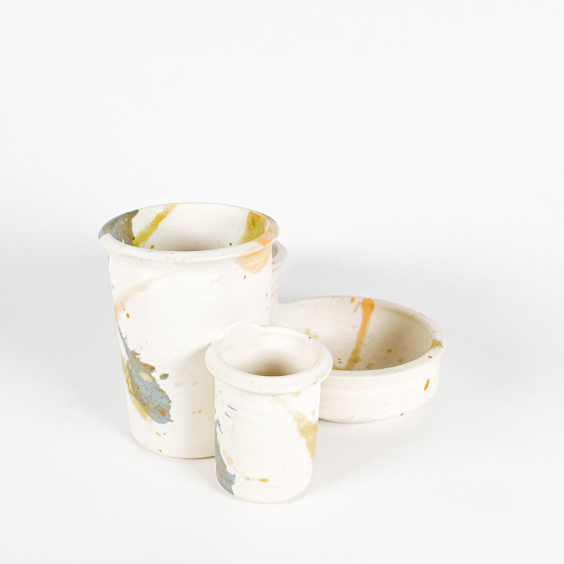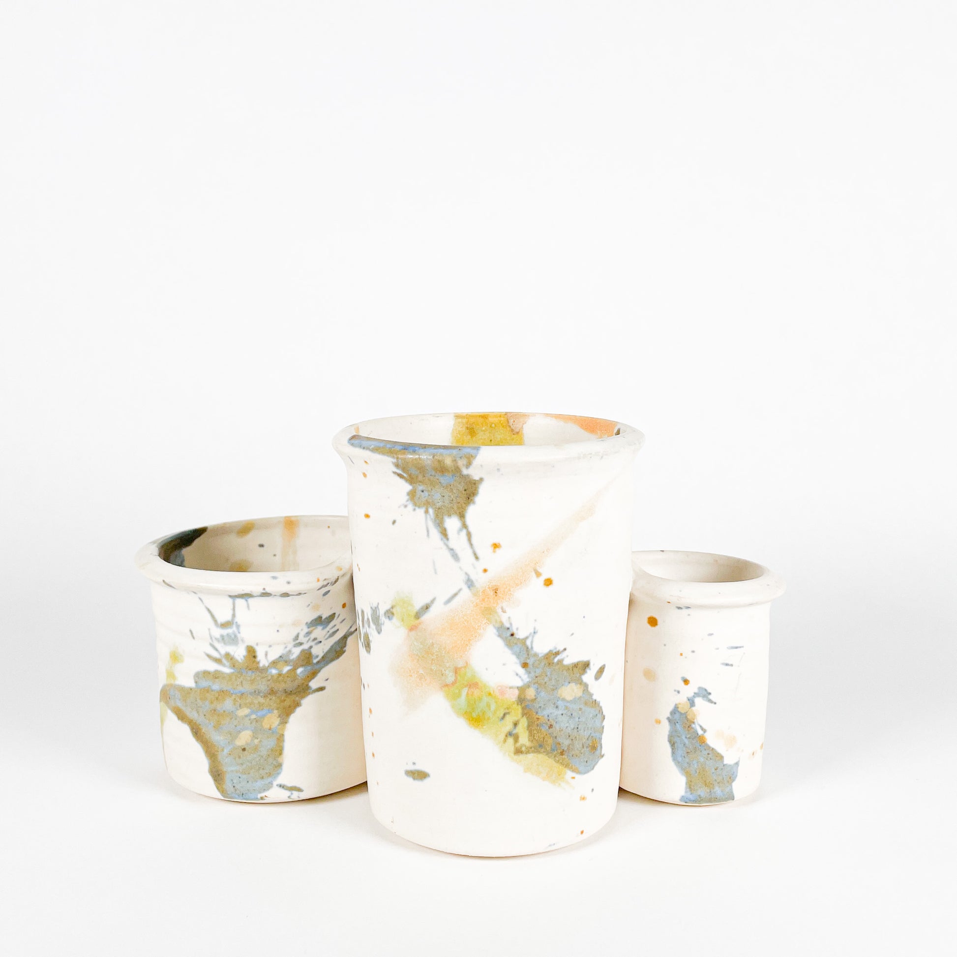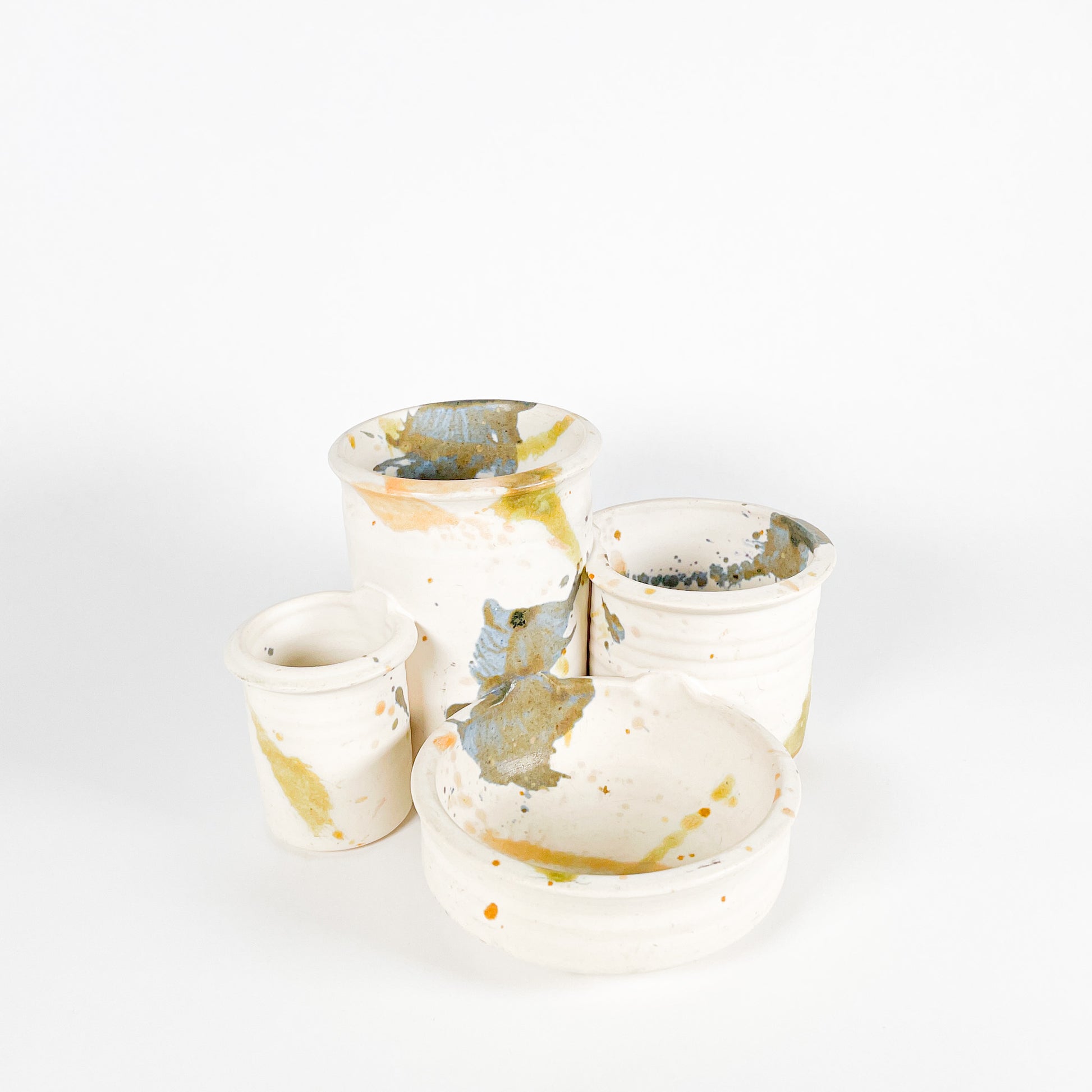 Set of sculptural style stoneware pots (all glued together), handmade and signed below.