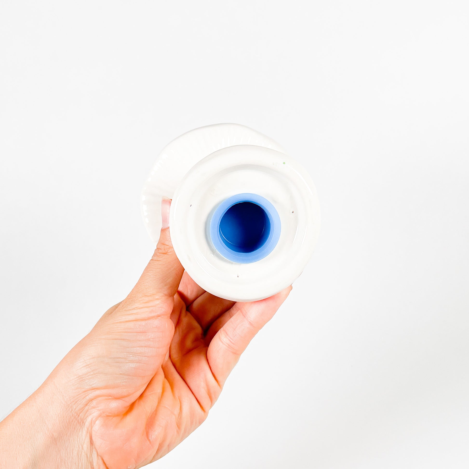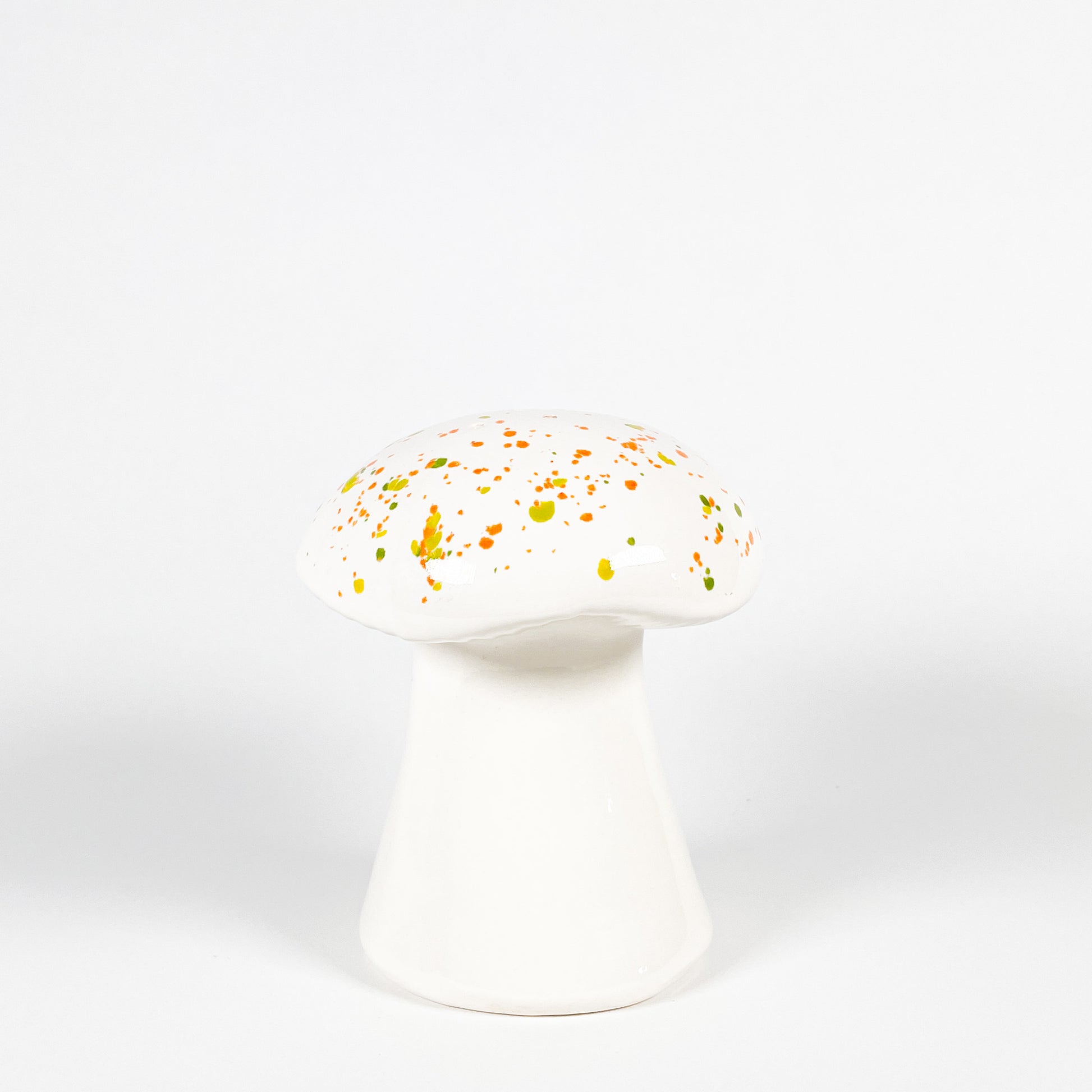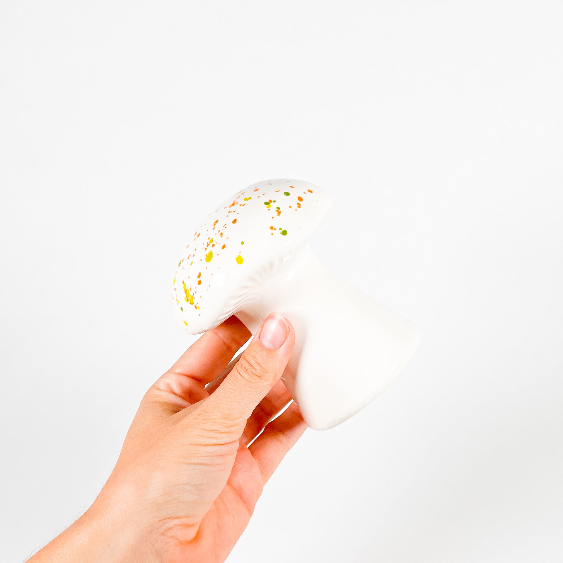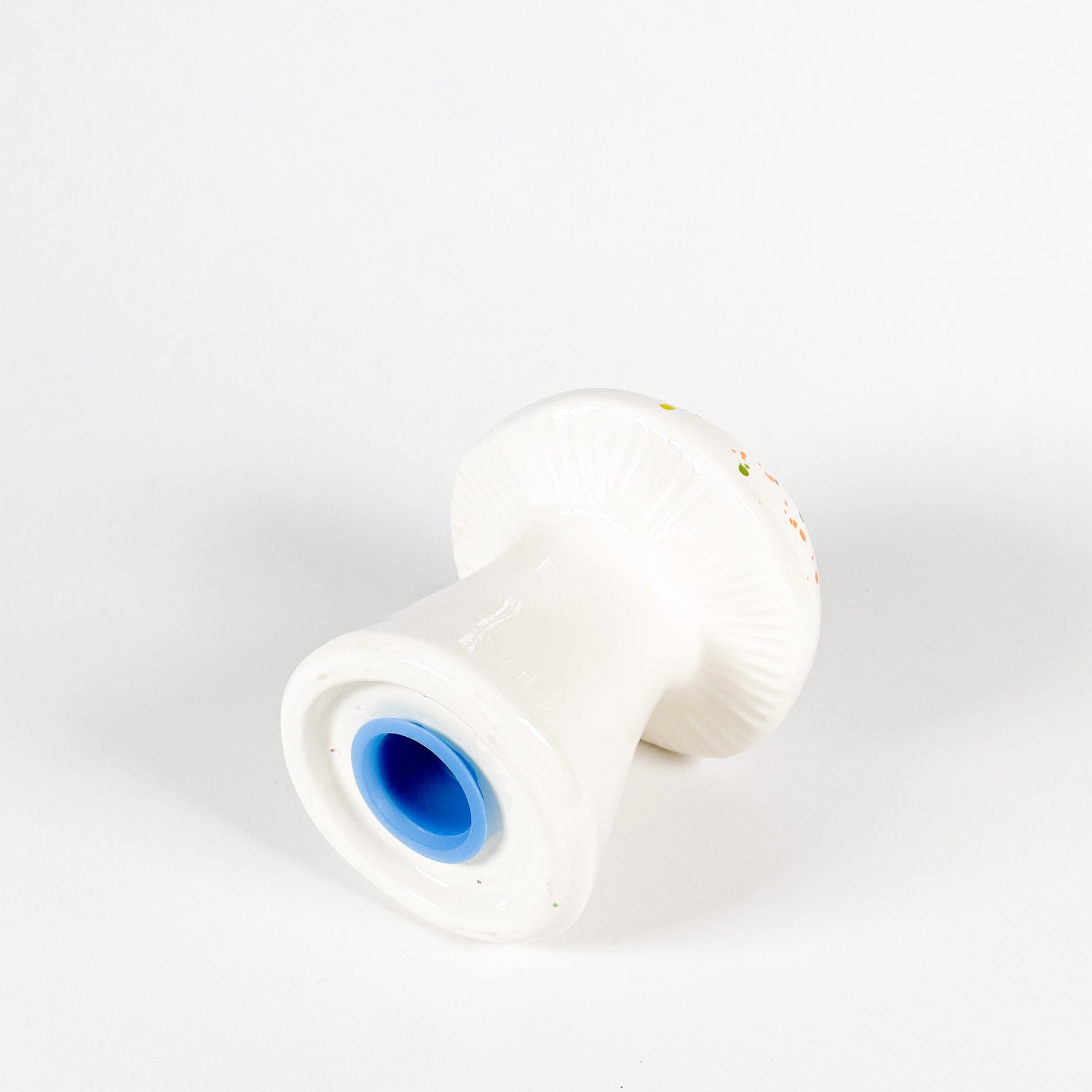 Large mushroom-shaped ceramic salt shaker, handmade and signed GM 73 below.