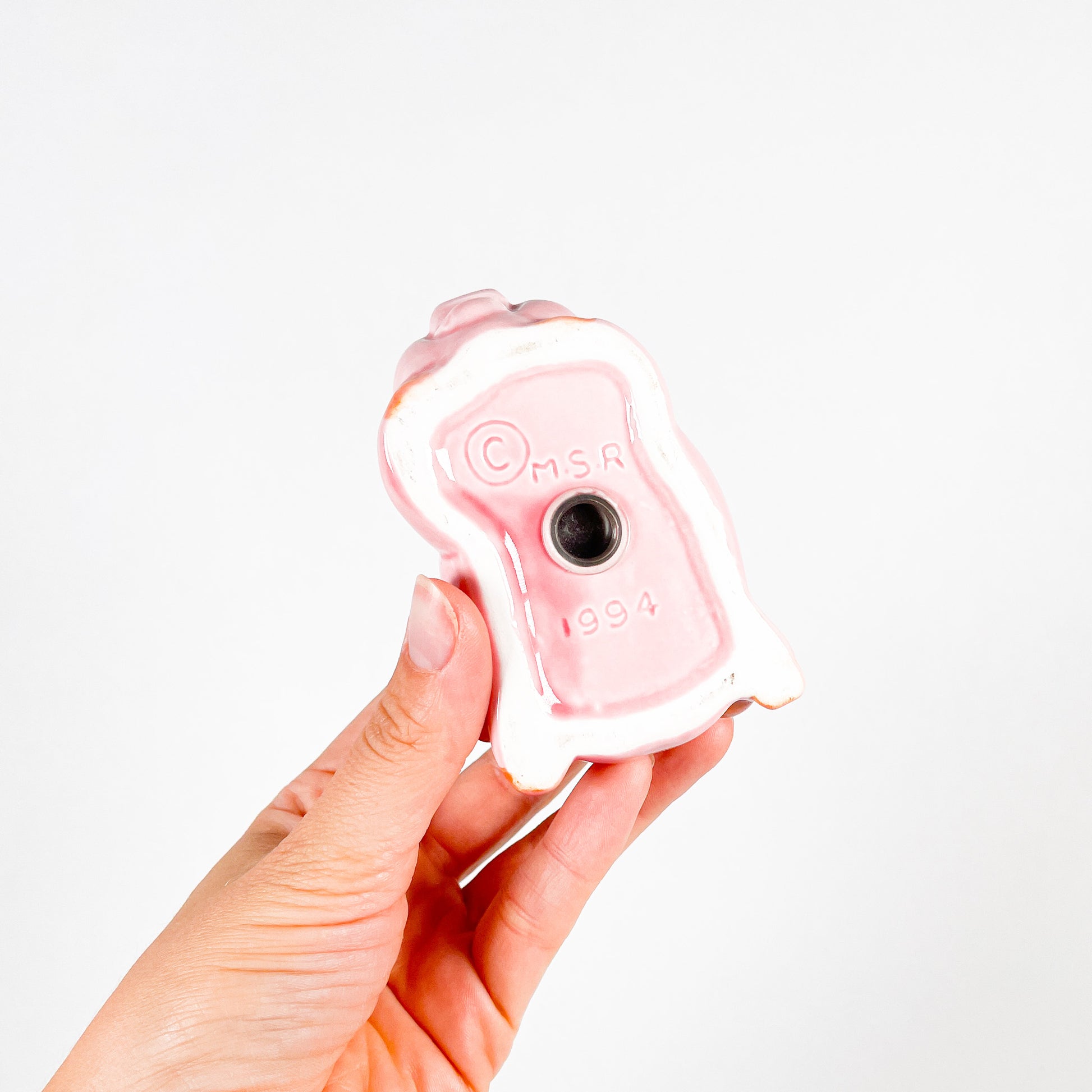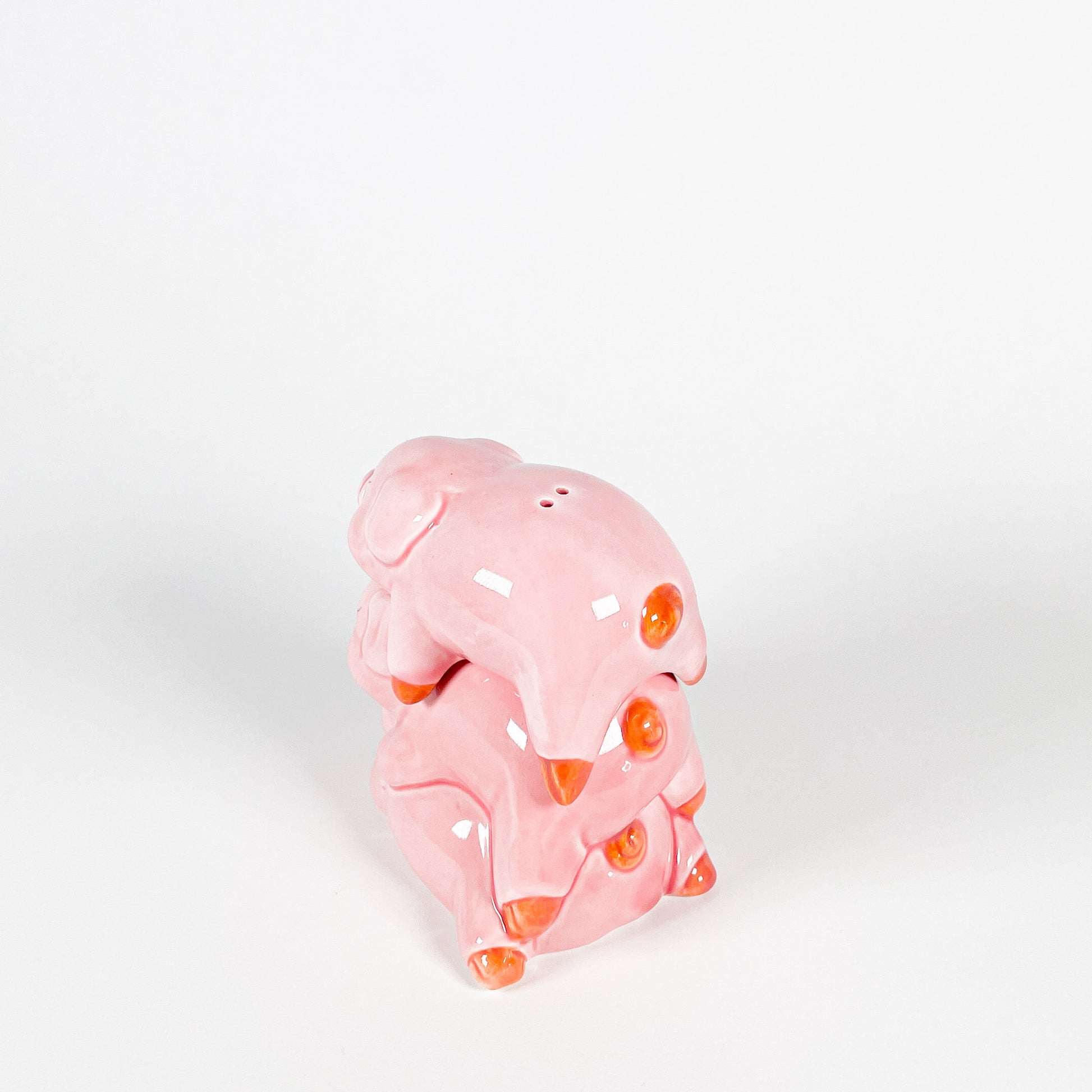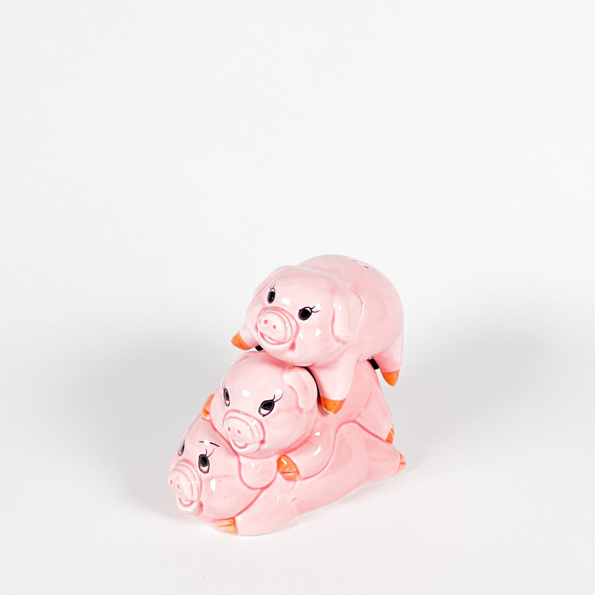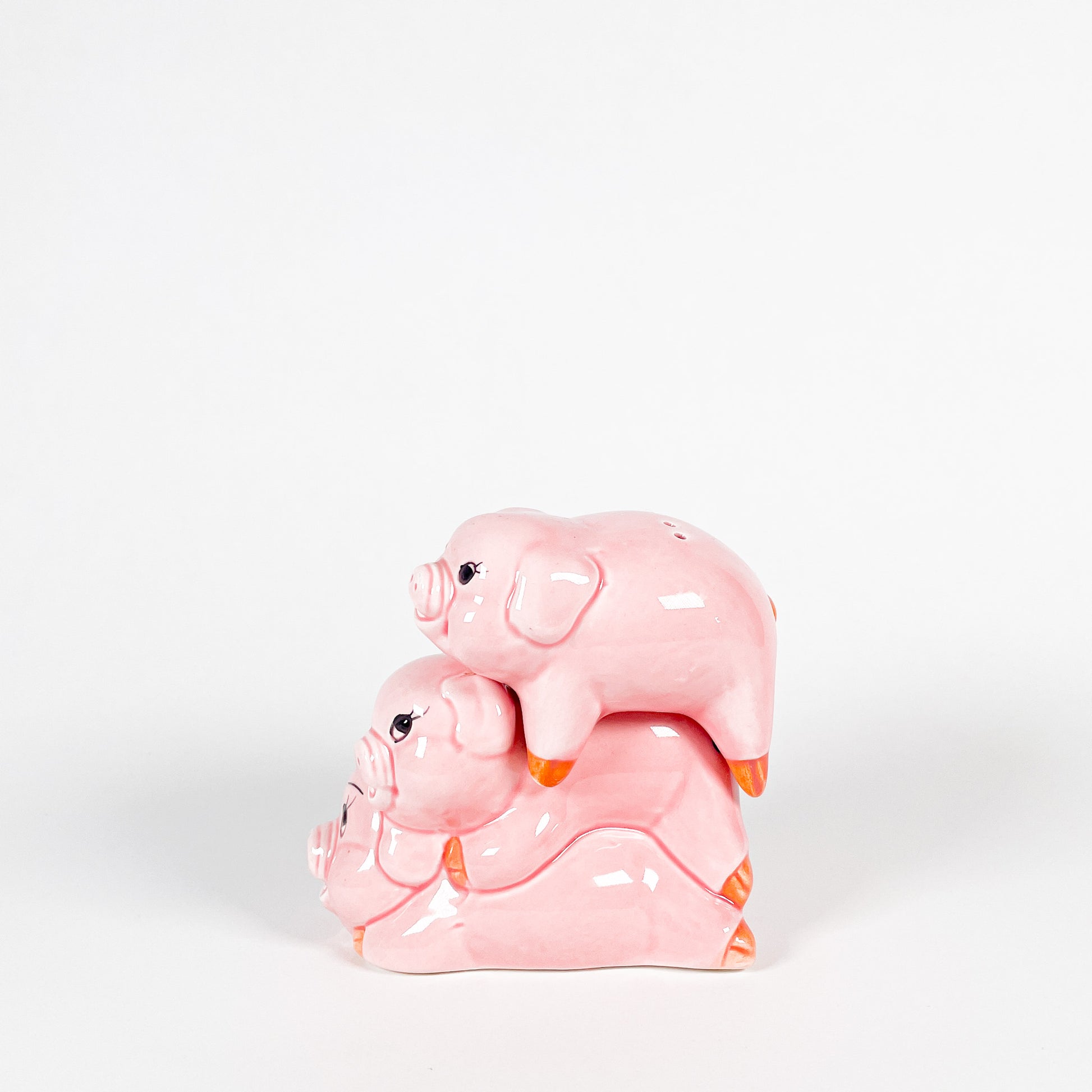 Ceramic salt and pepper shaker set in the shape of pigs, made in 1994.