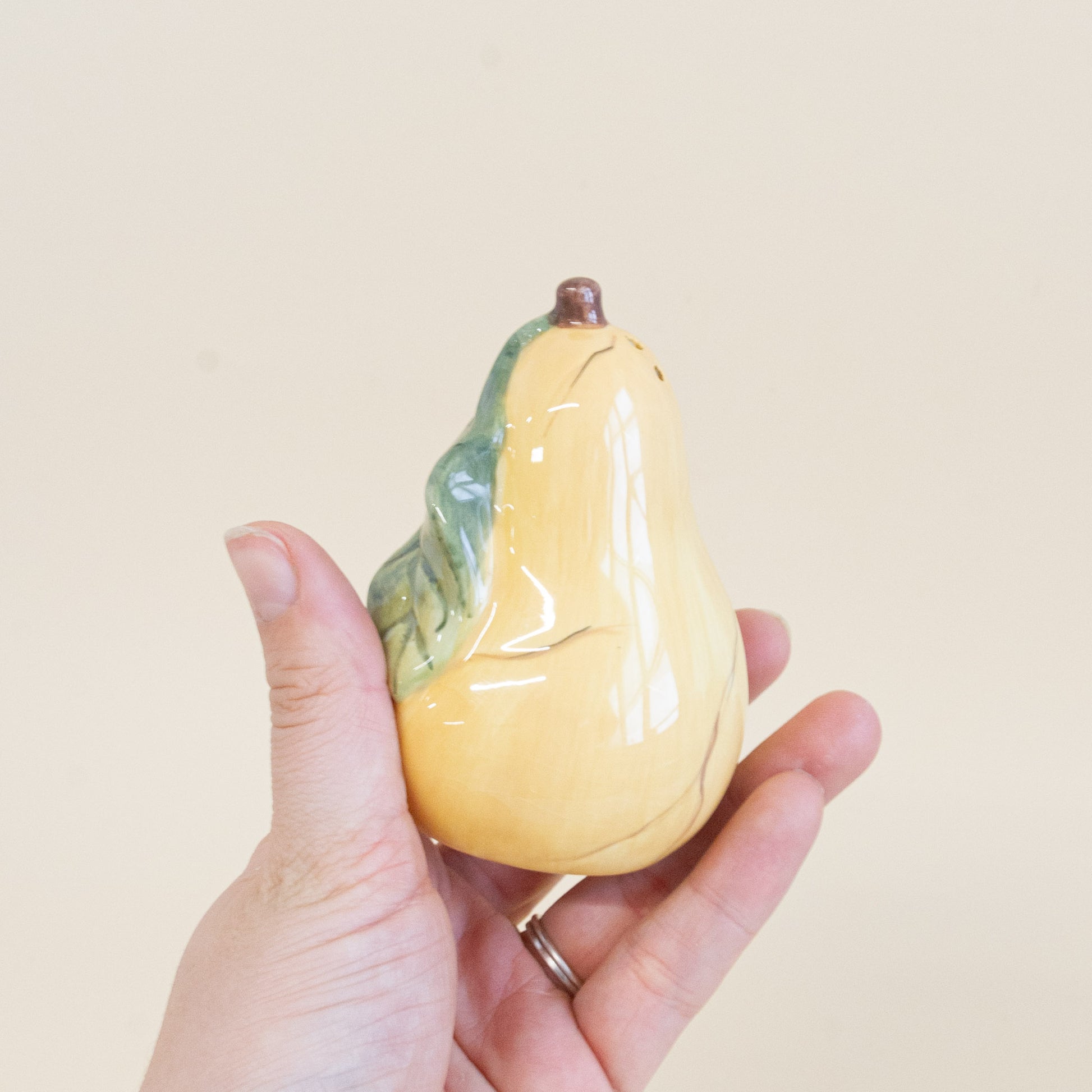 Ceramic salt and pepper set in the shape of pears, made by American Atelier At Home.