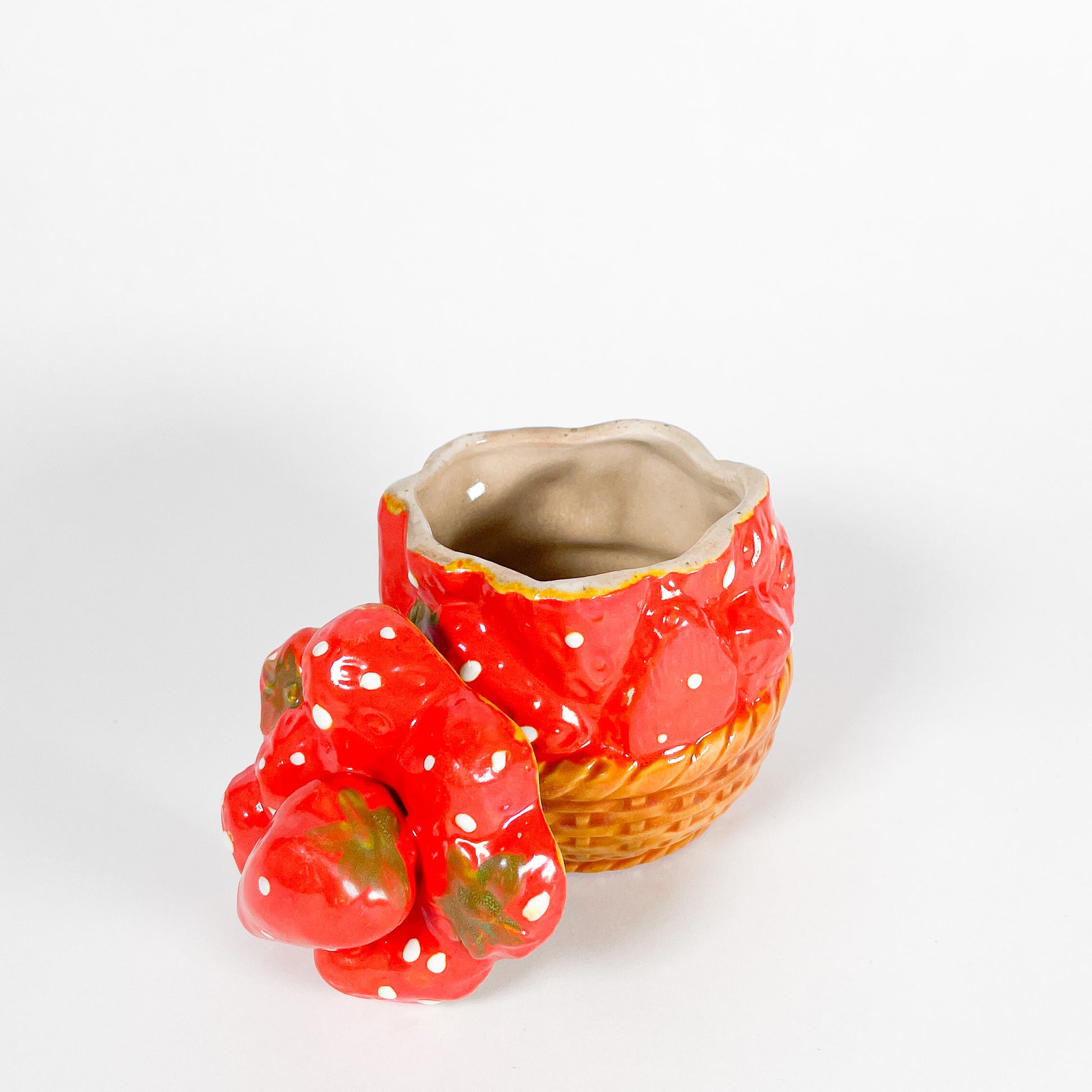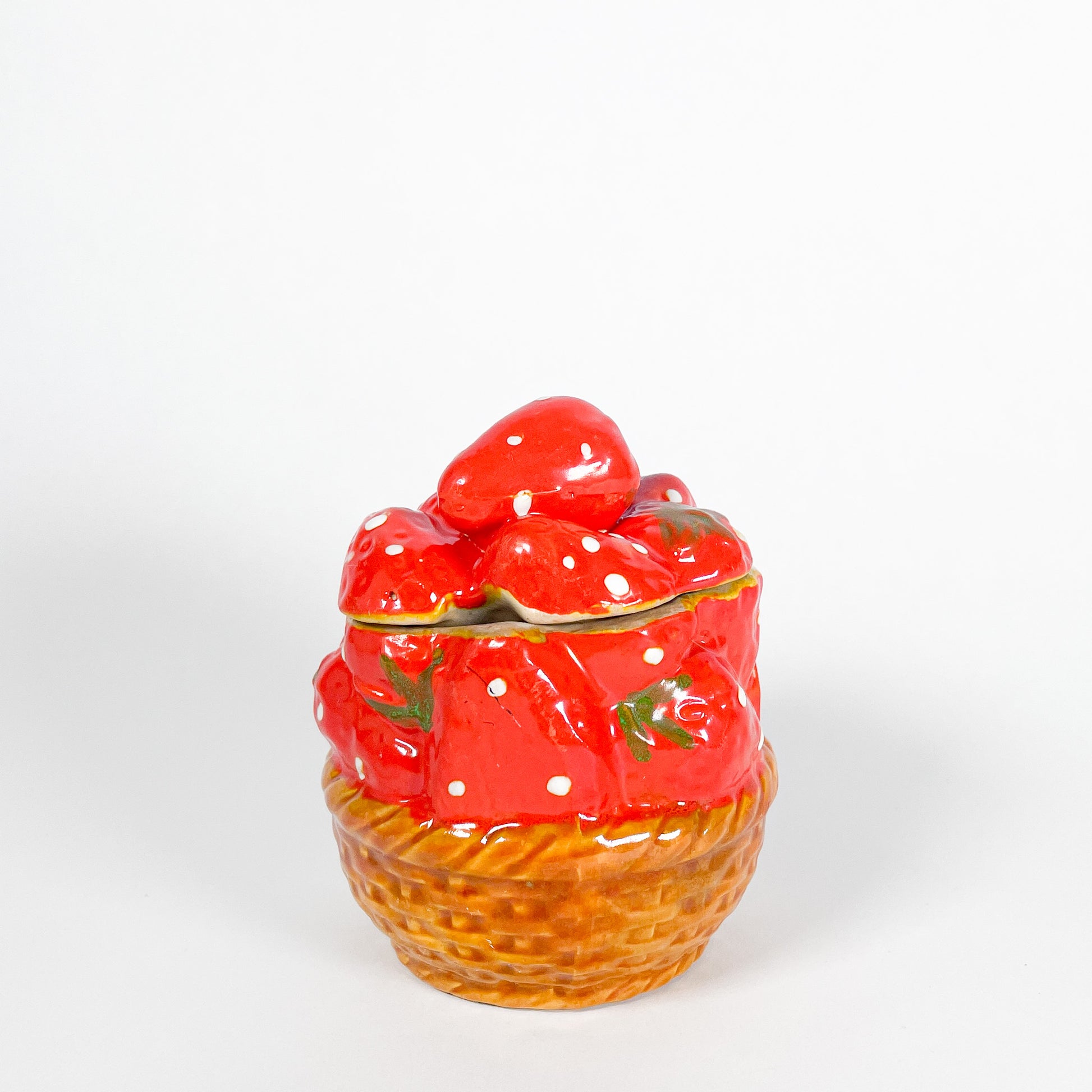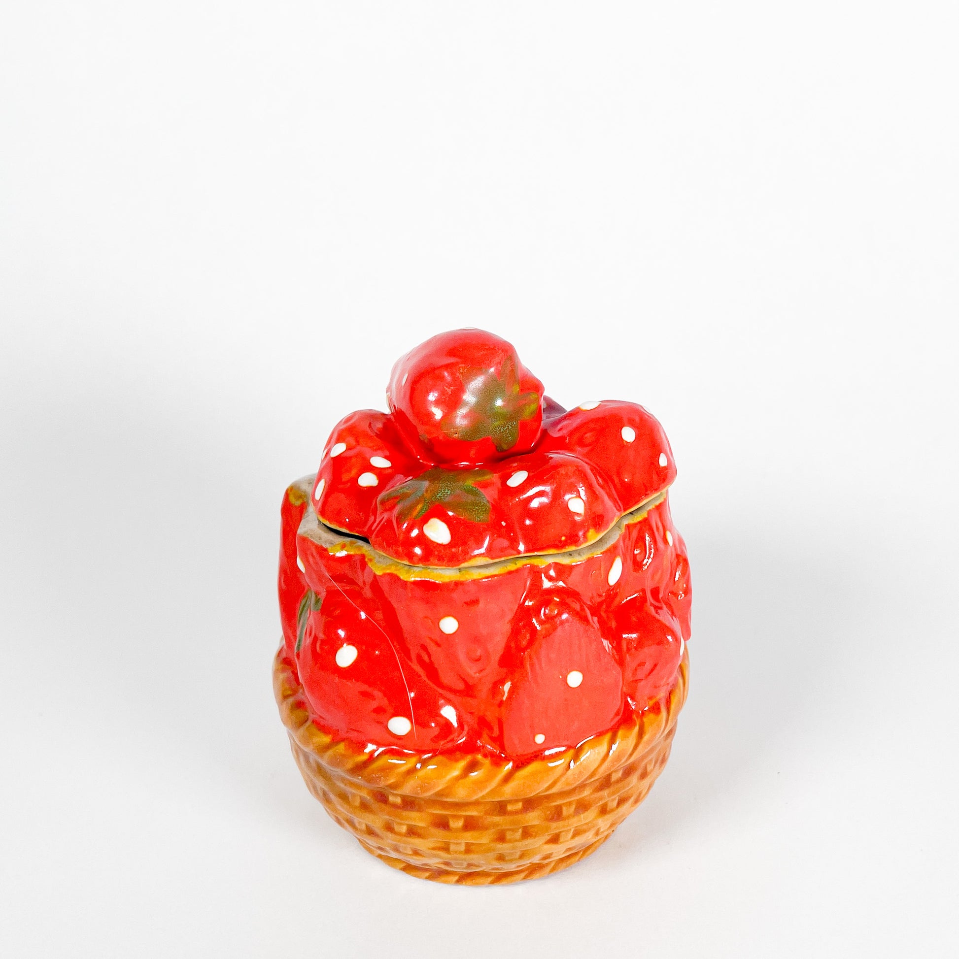 Ceramic sugar bowl made in Japan in the shape of a basket of strawberries.