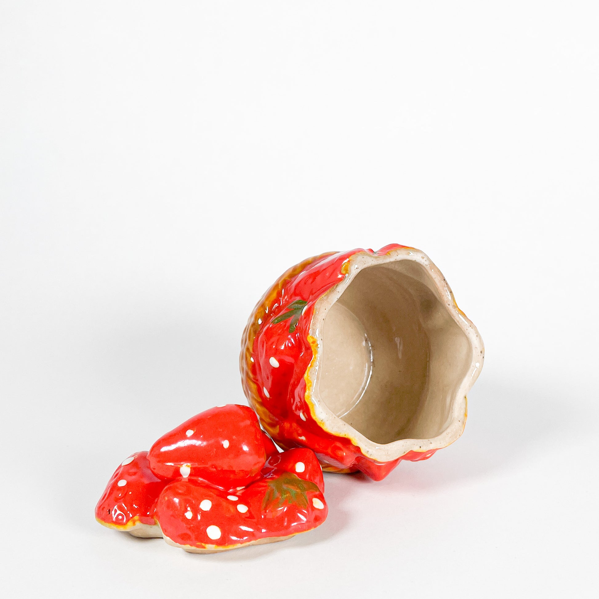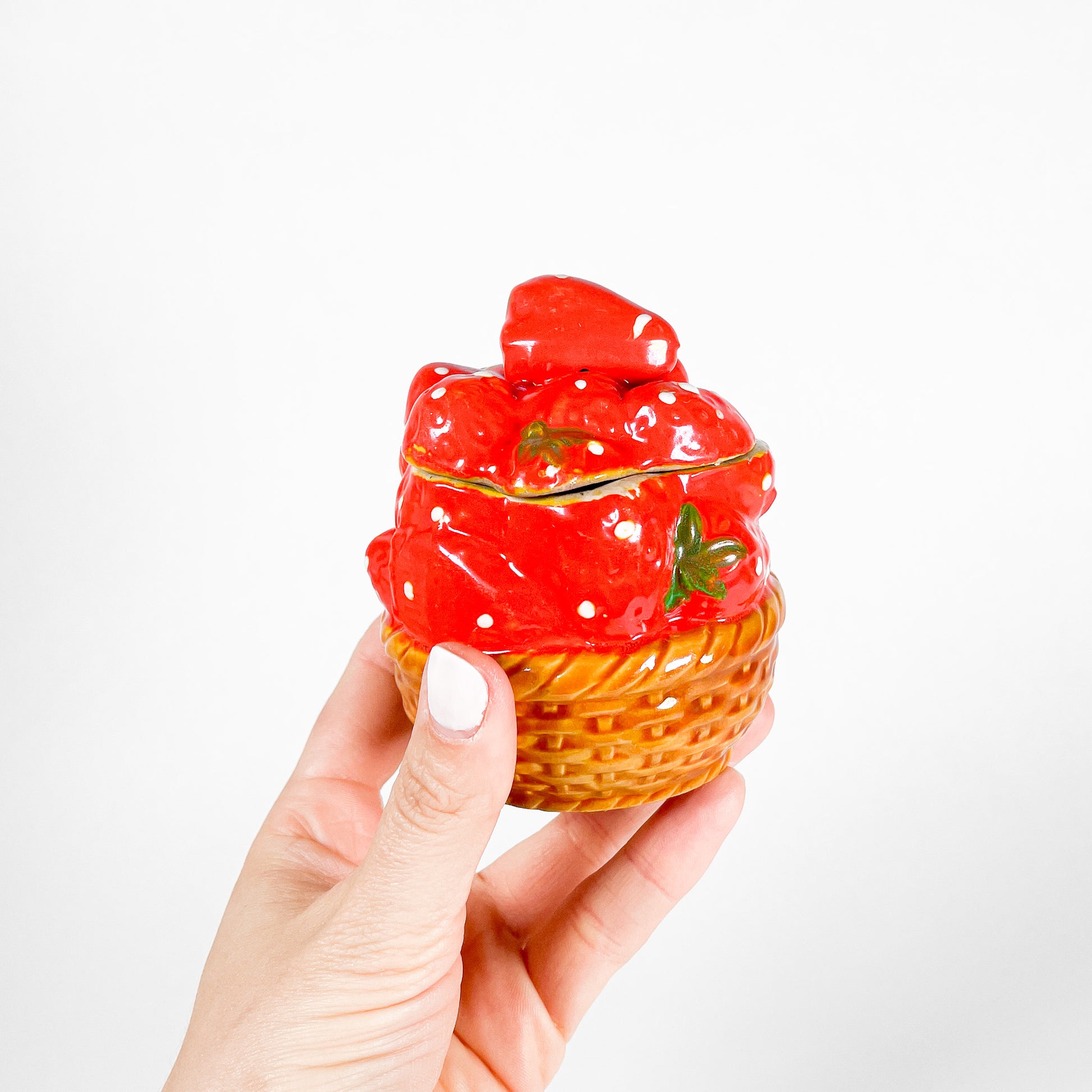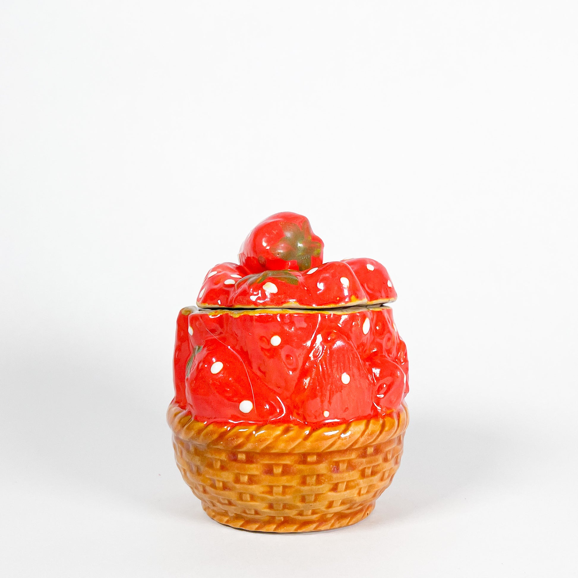 Ceramic sugar bowl made in Japan in the shape of a basket of strawberries.