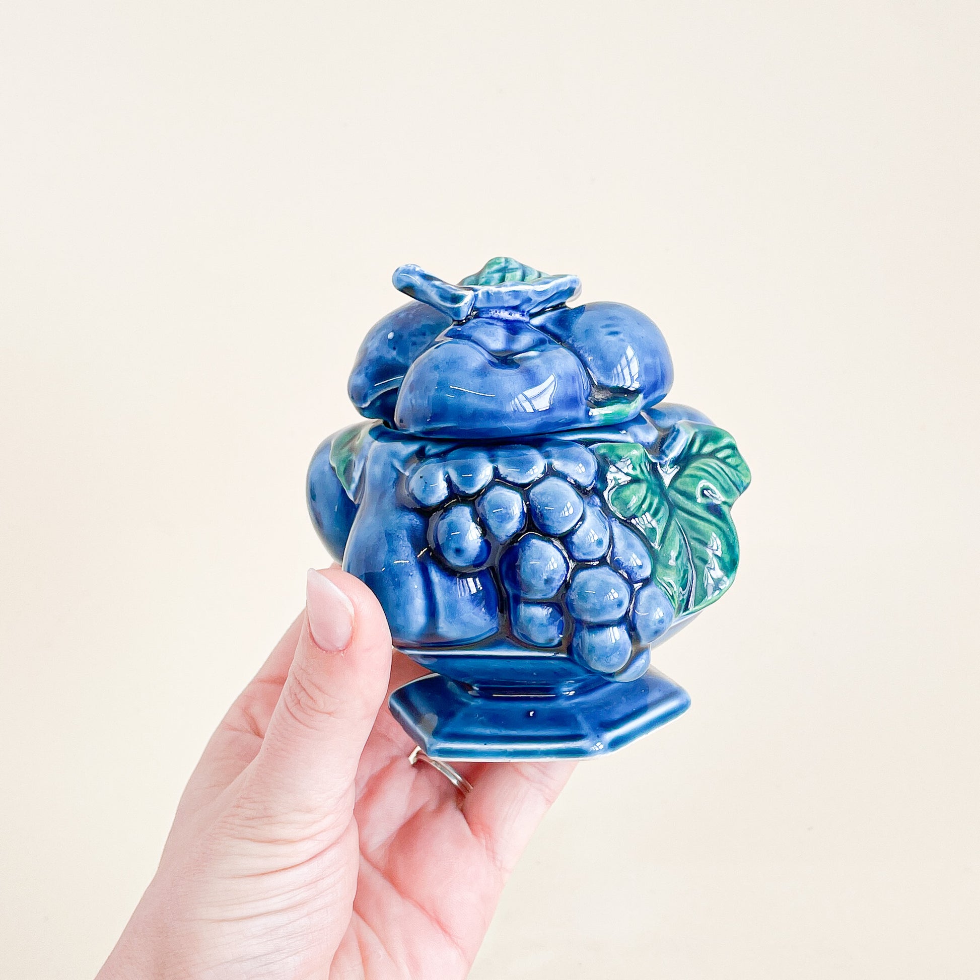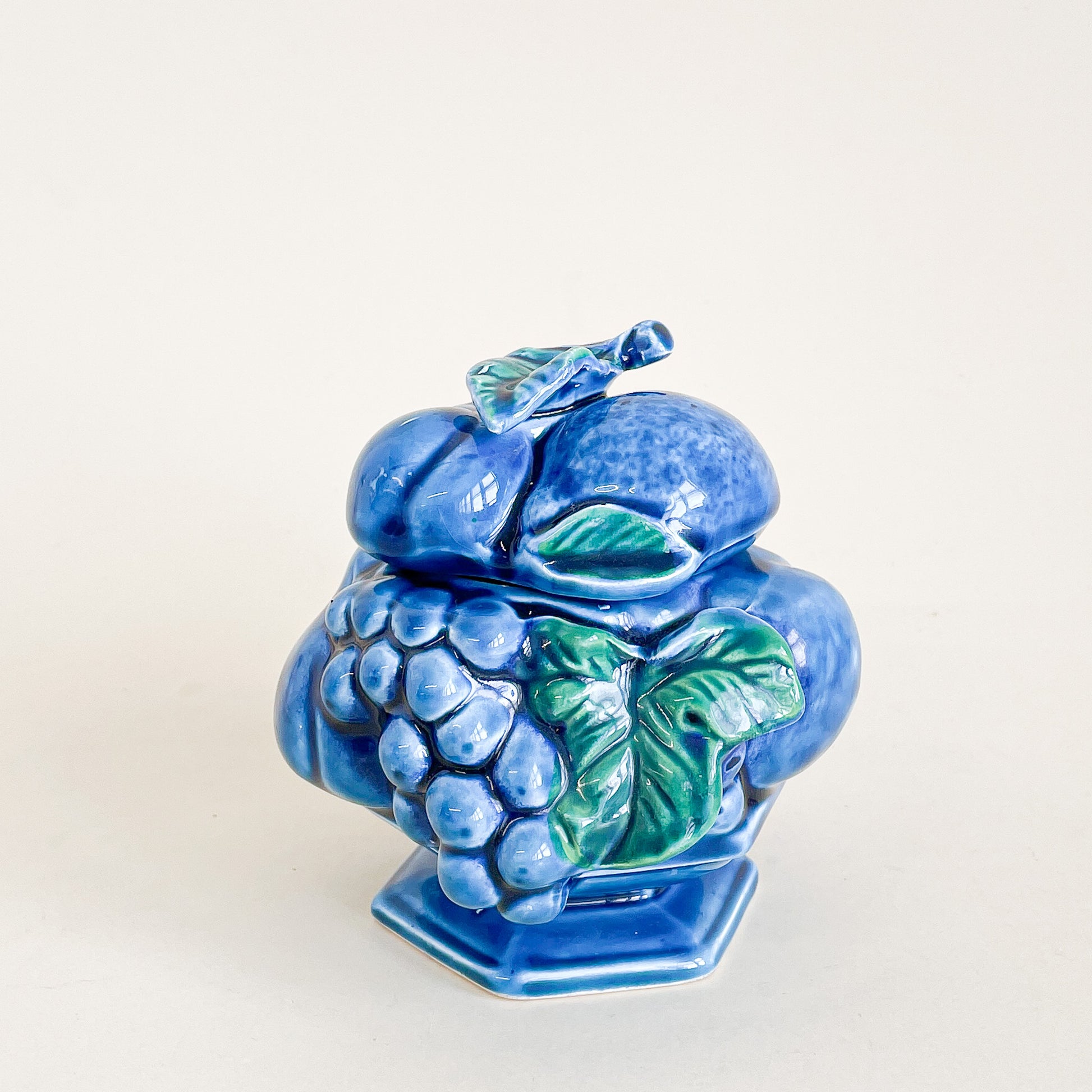 Inarco blue ceramic sugar bowl, Indigo Blue collection, made in Japan.