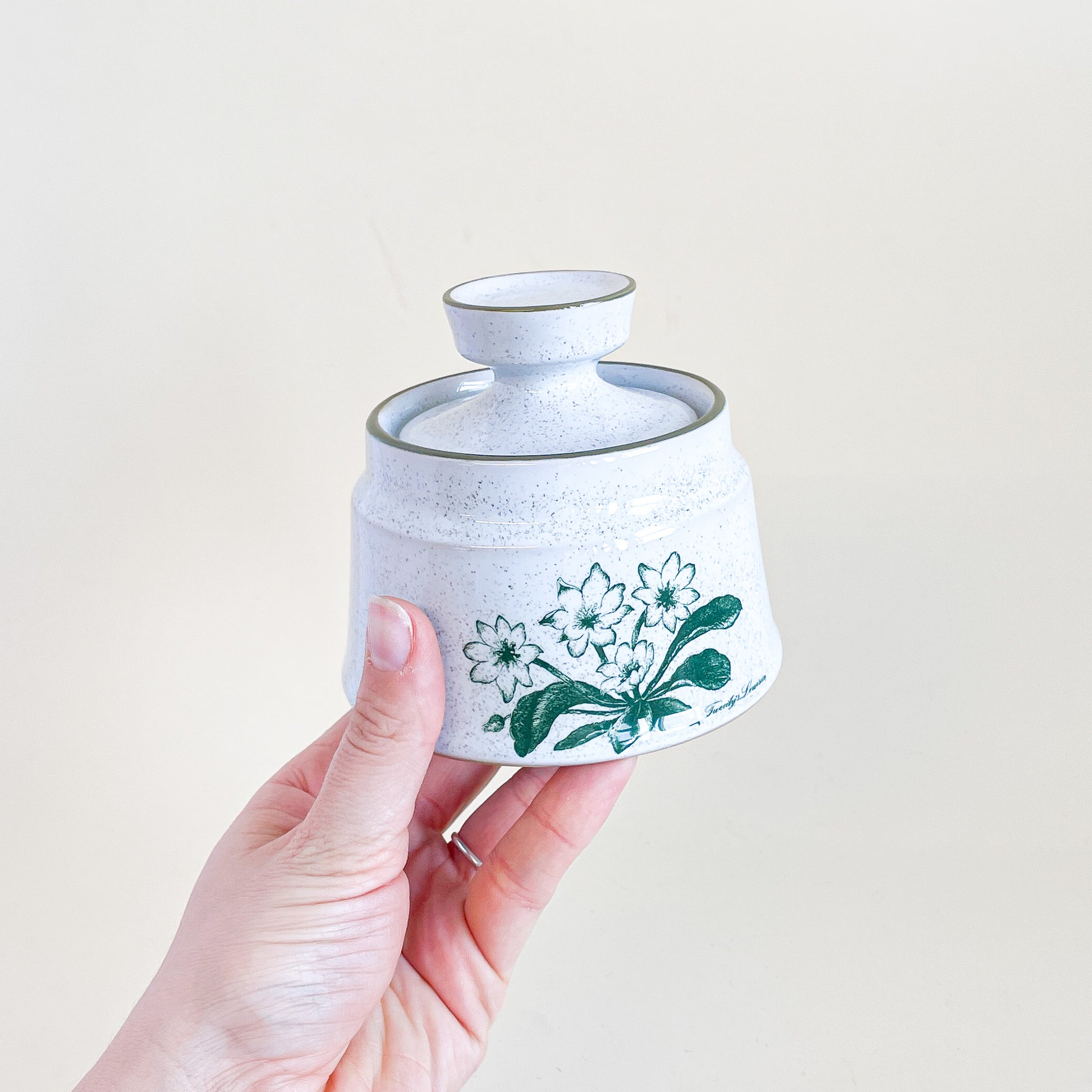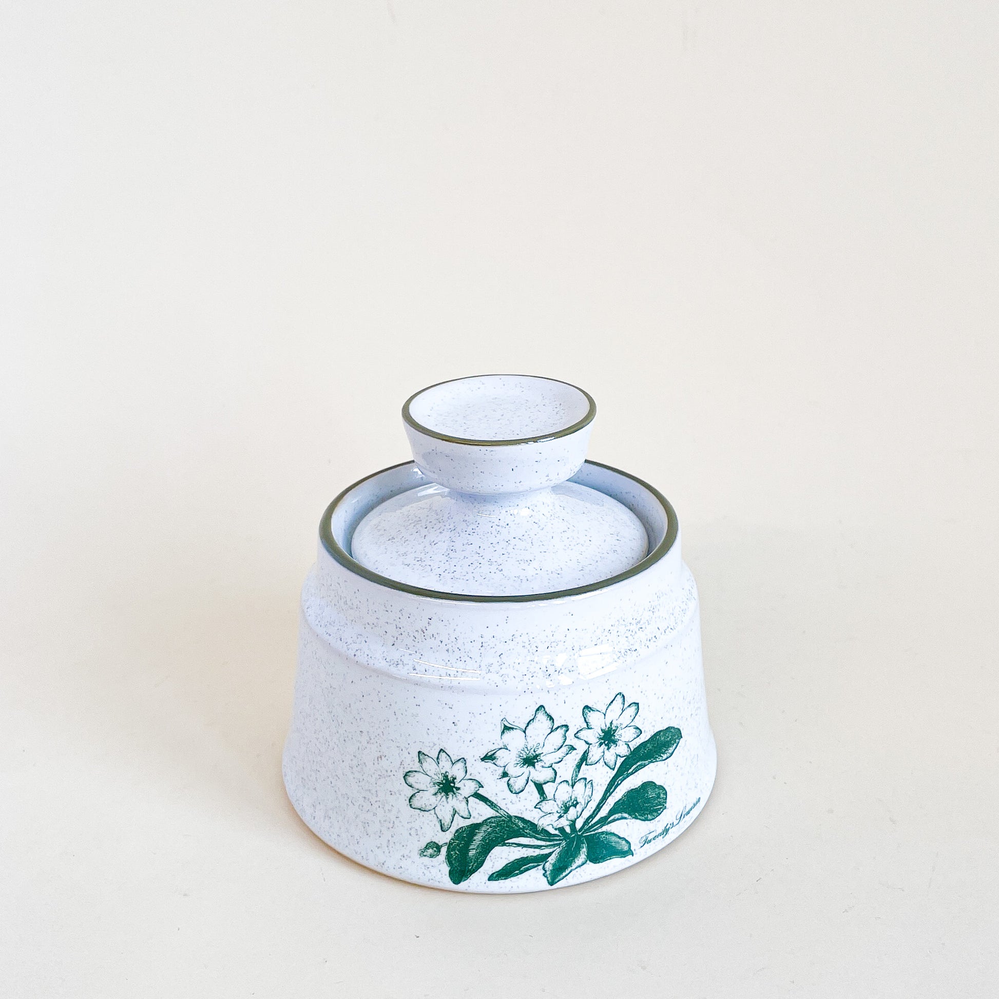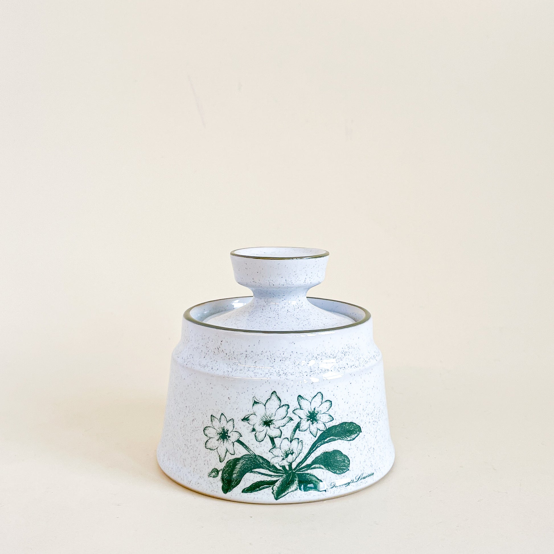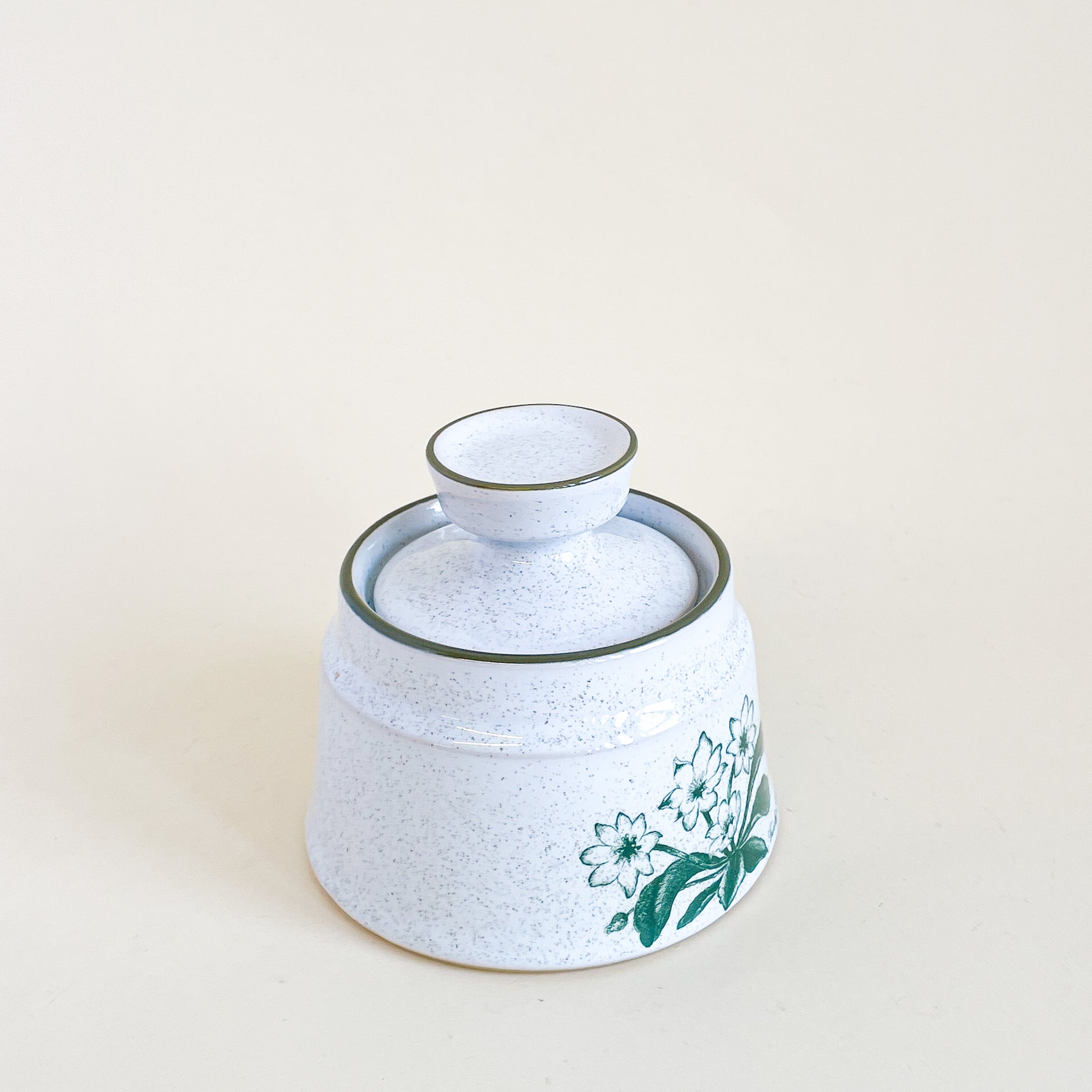 Noritake Stoneware Japan speckled ceramic sugar bowl, Mountain flowers pattern.