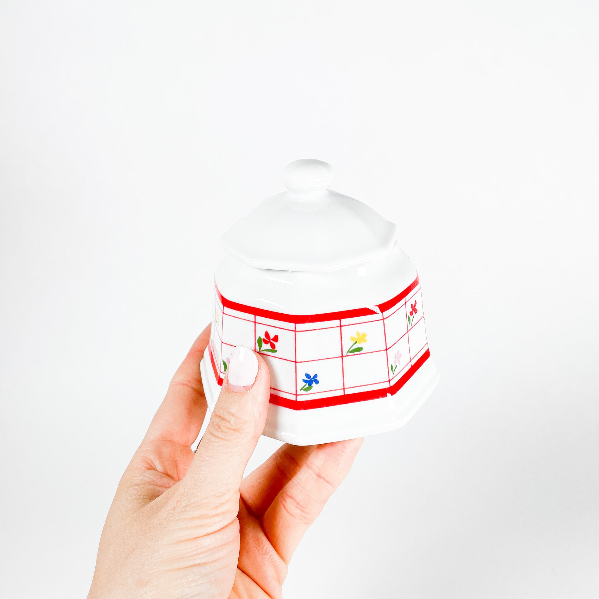 Porcelain sugar bowl made in Japan porcelain by Genin-Trudeau, “Little flowers” collection.