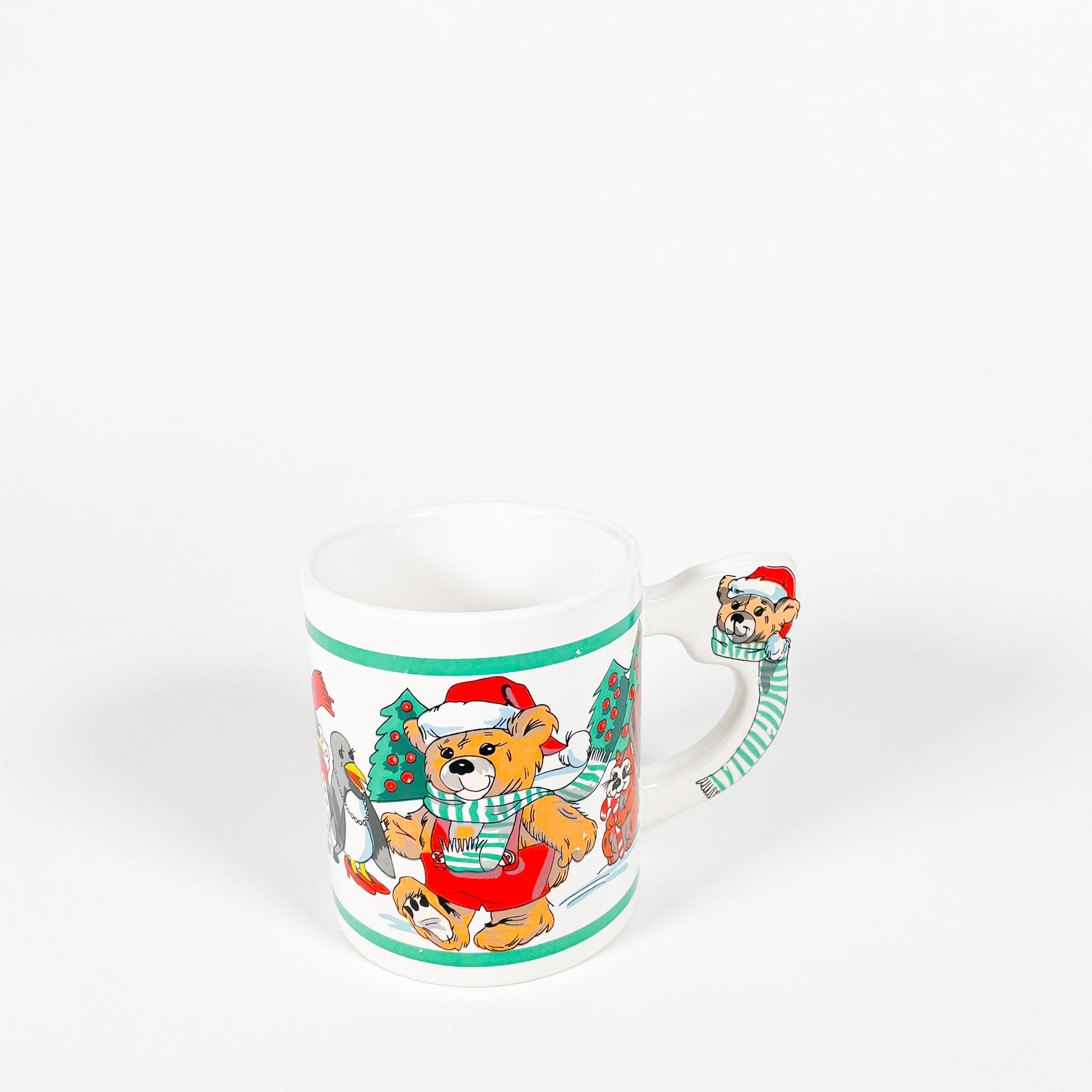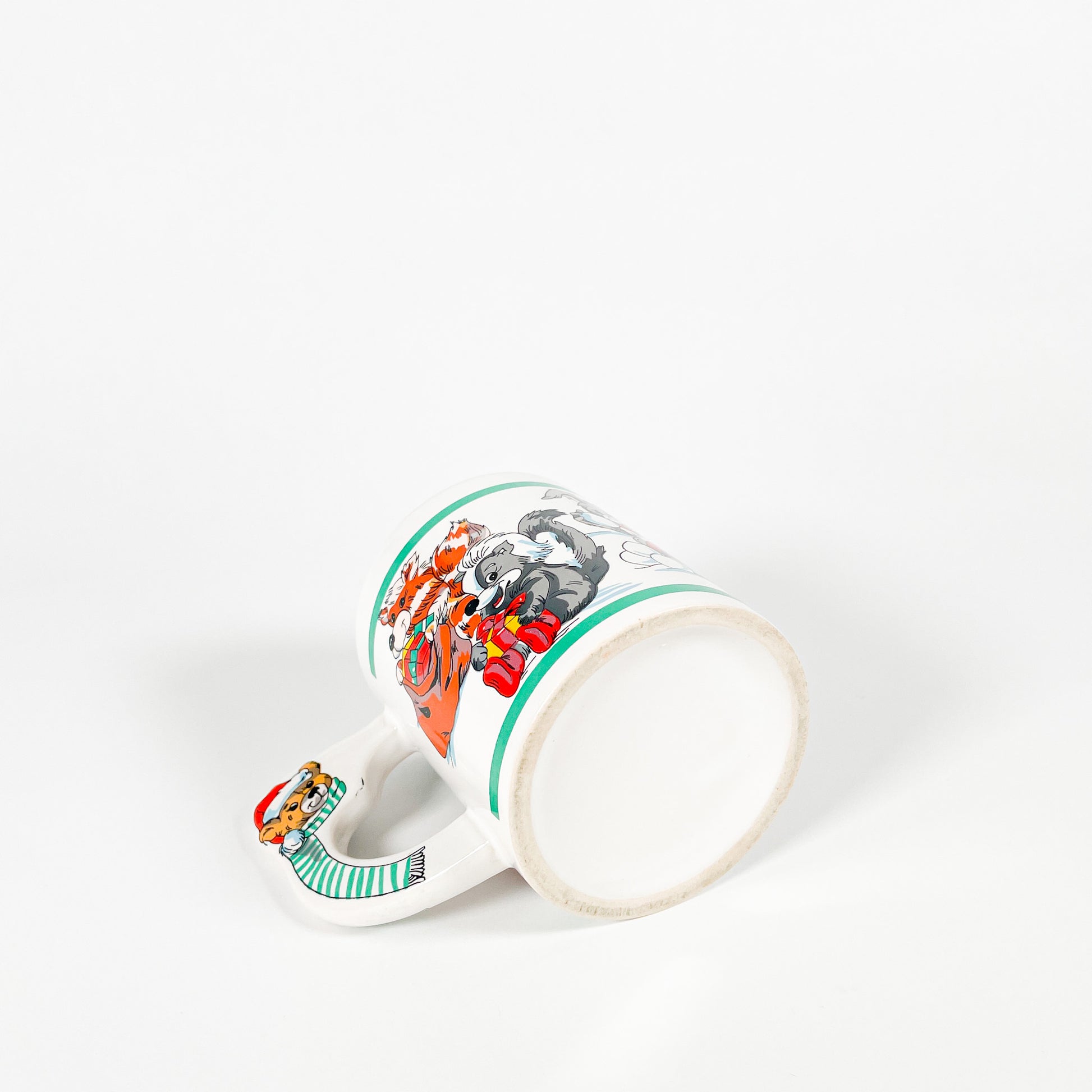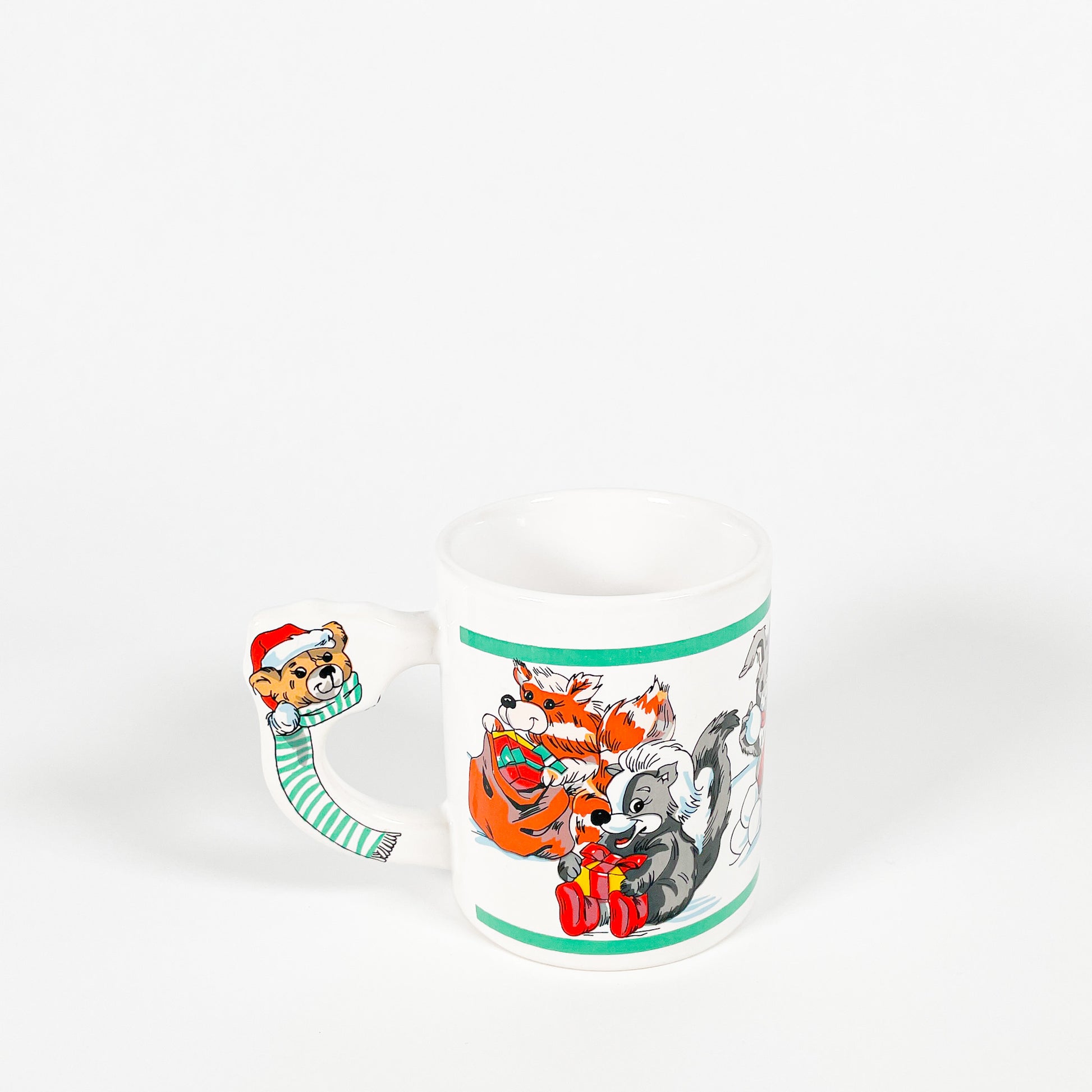White ceramic mug with cute Christmas animals. 🎅