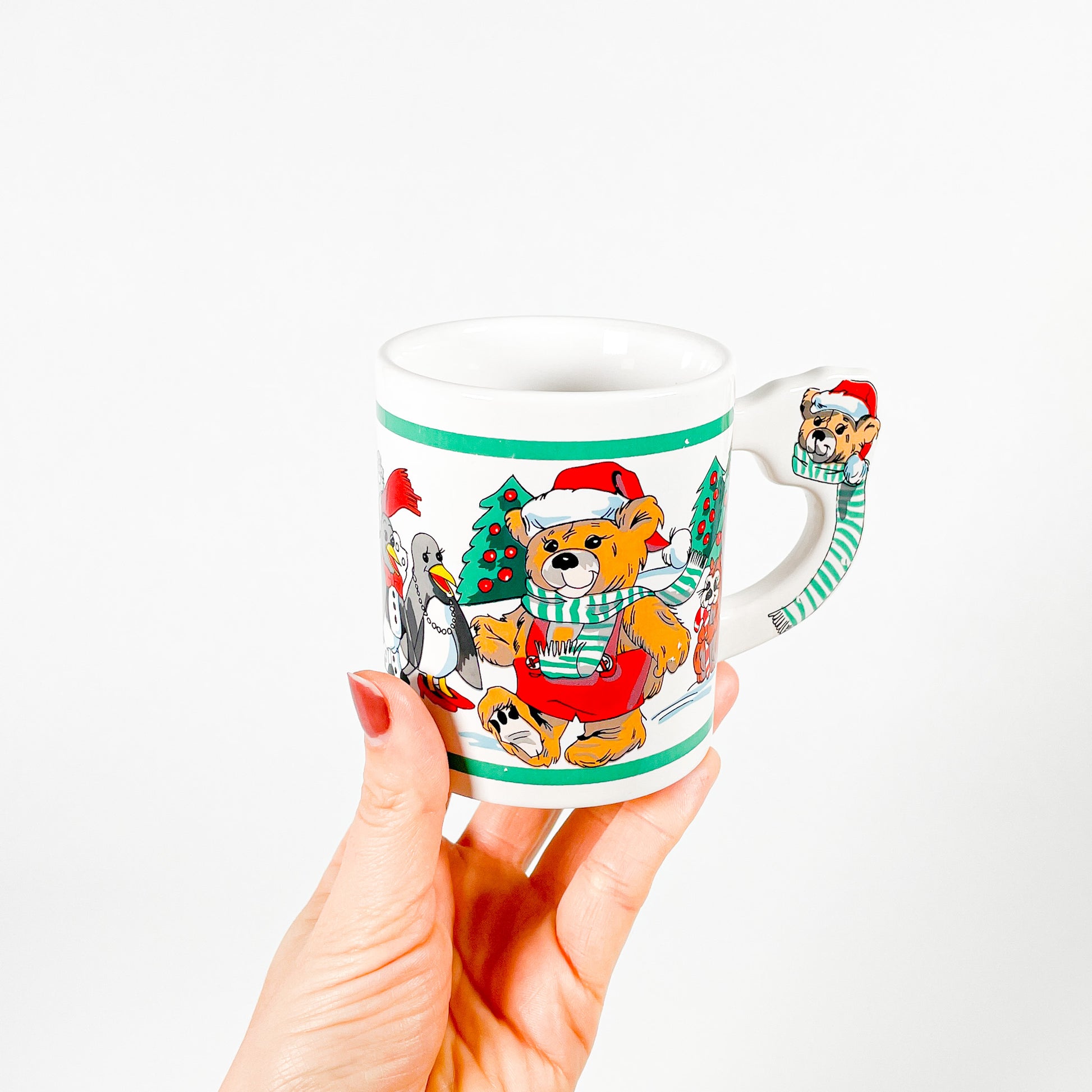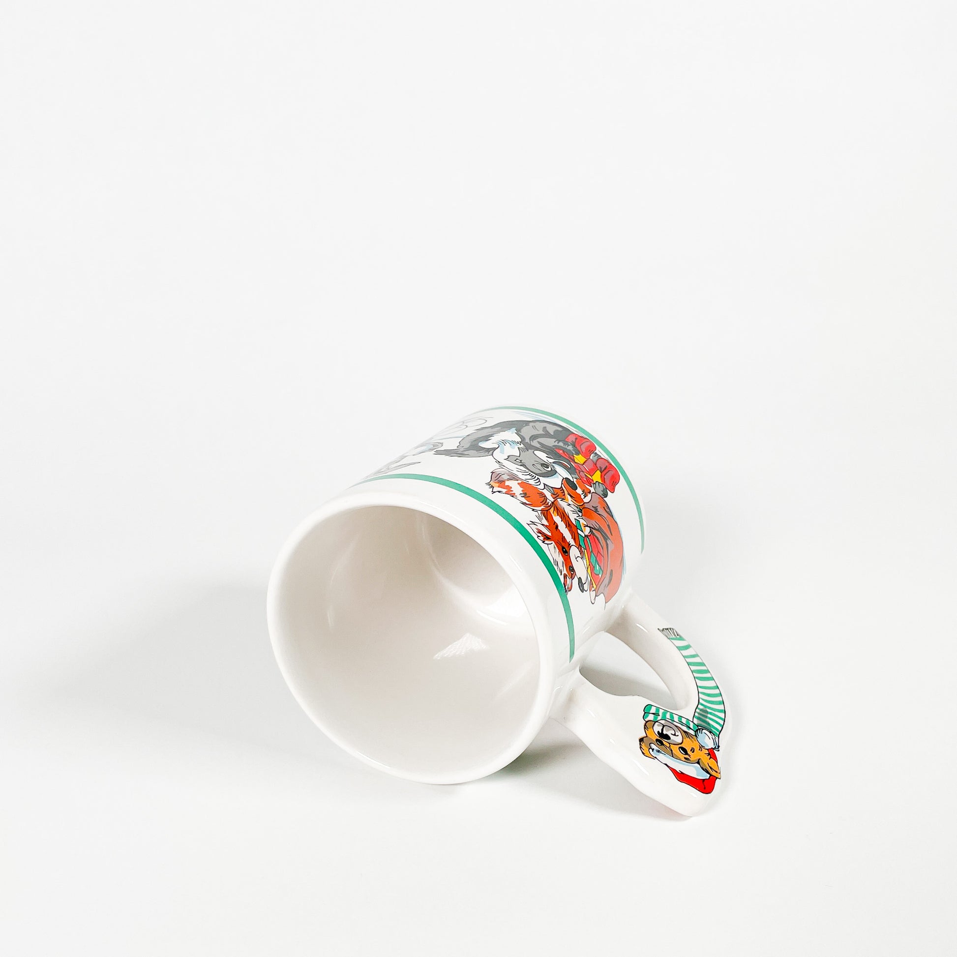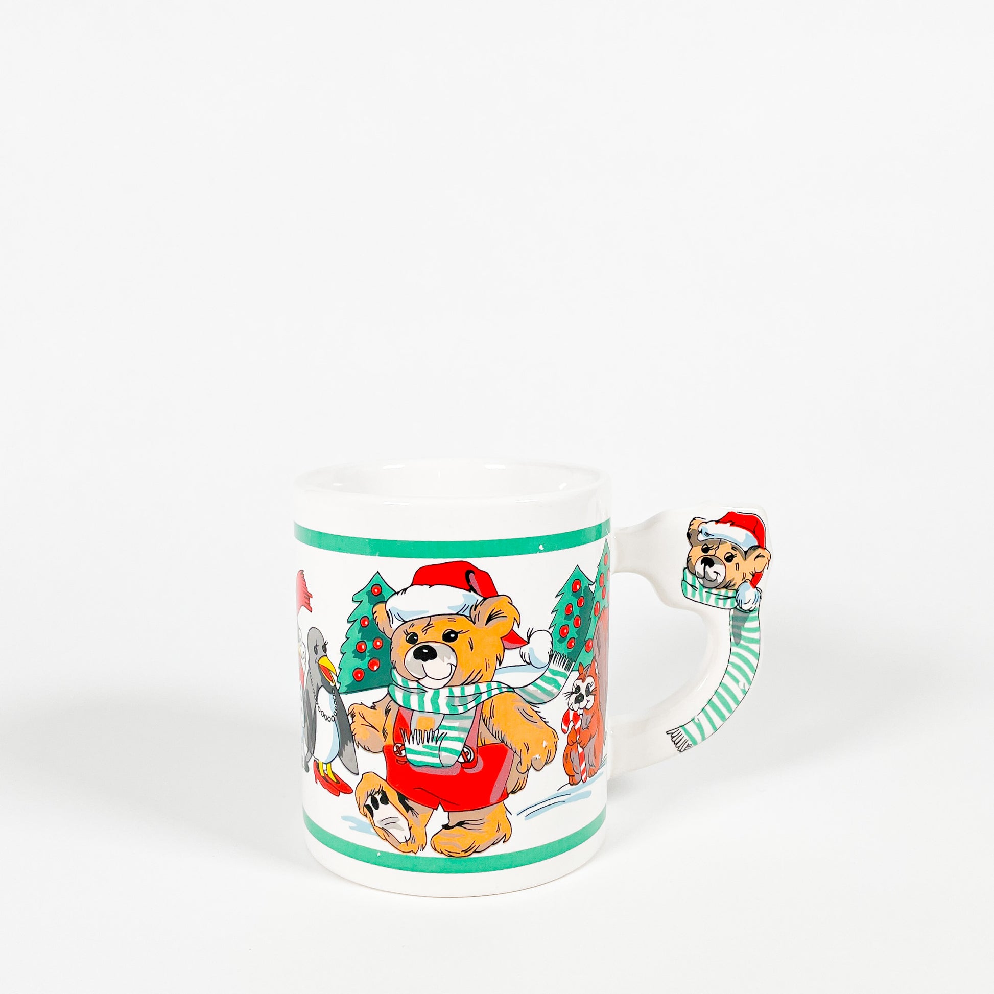 White ceramic mug with cute Christmas animals. 🎅