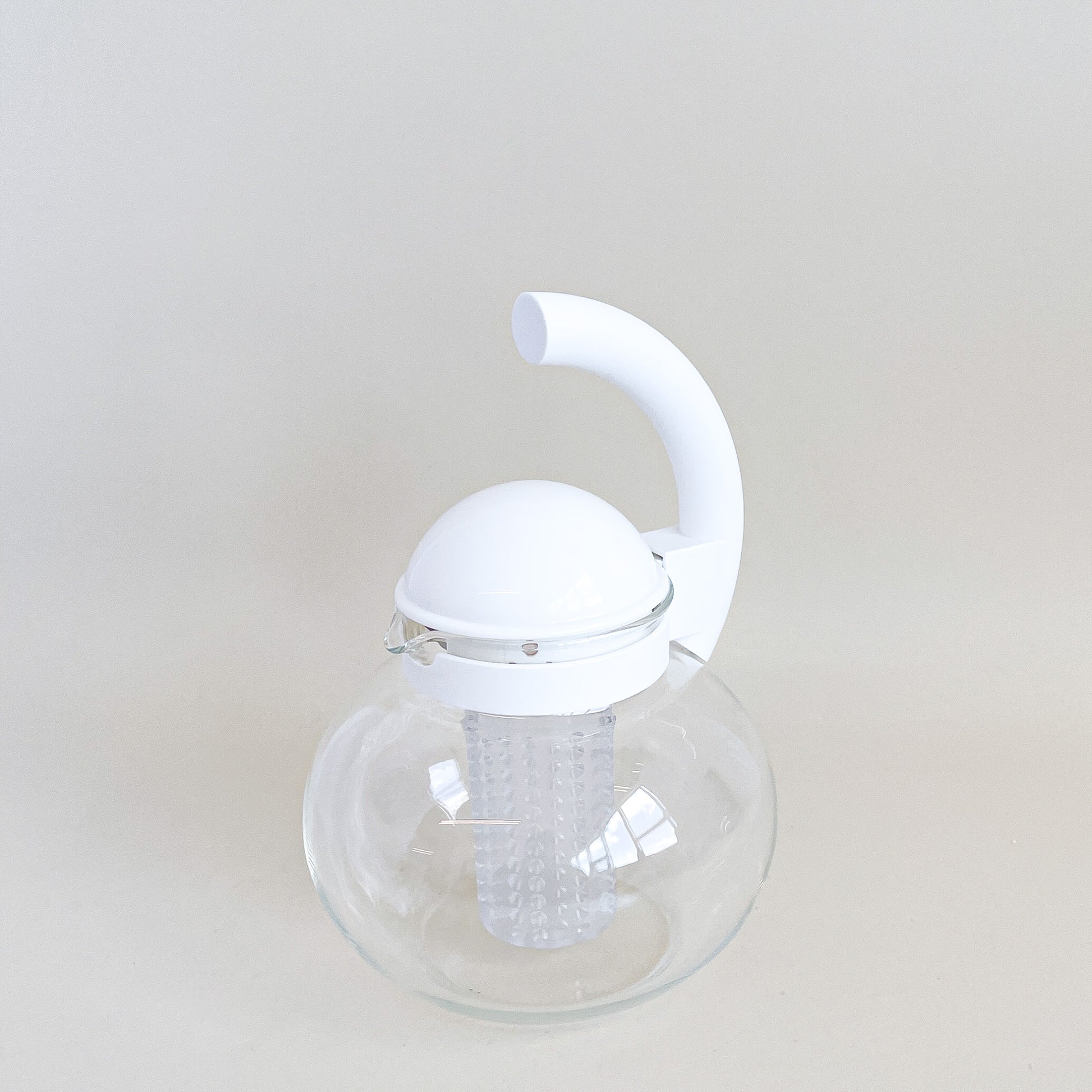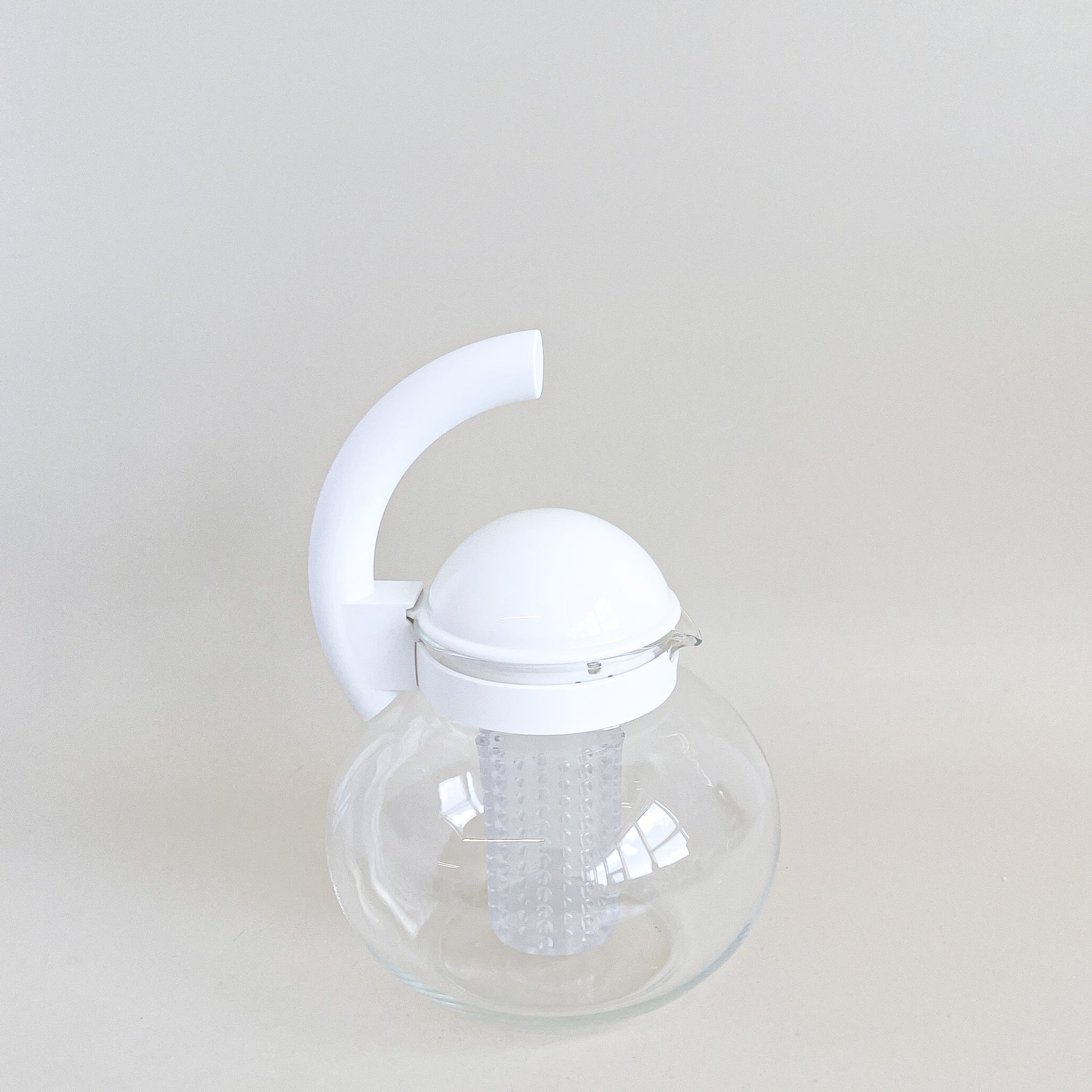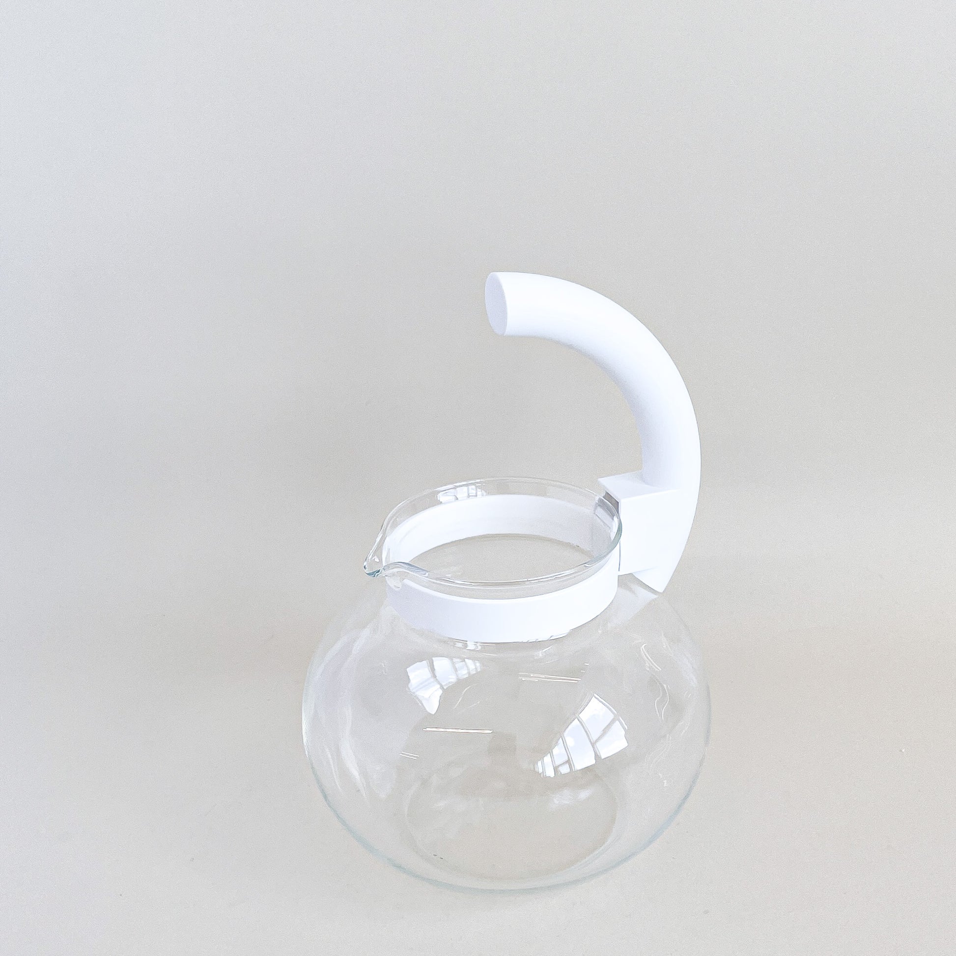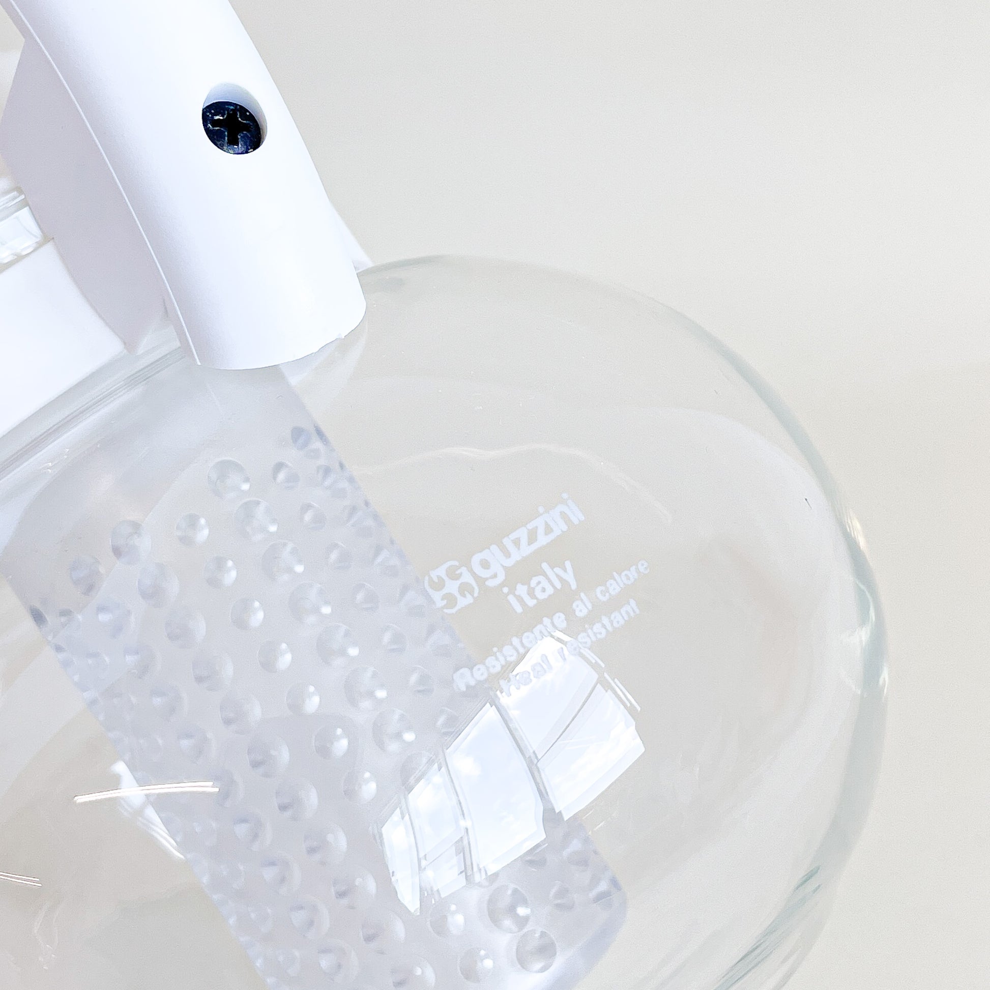 Vraiment cool théière Guzzini, modèle Focus, du designer italien Ambrogio Rossari. Produite dans les années 1980, elle est faite de verre borosilicate résistant à la chaleur et de plastique.