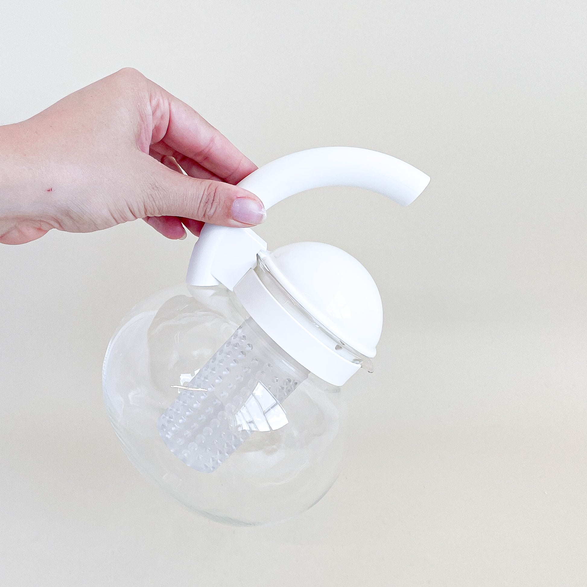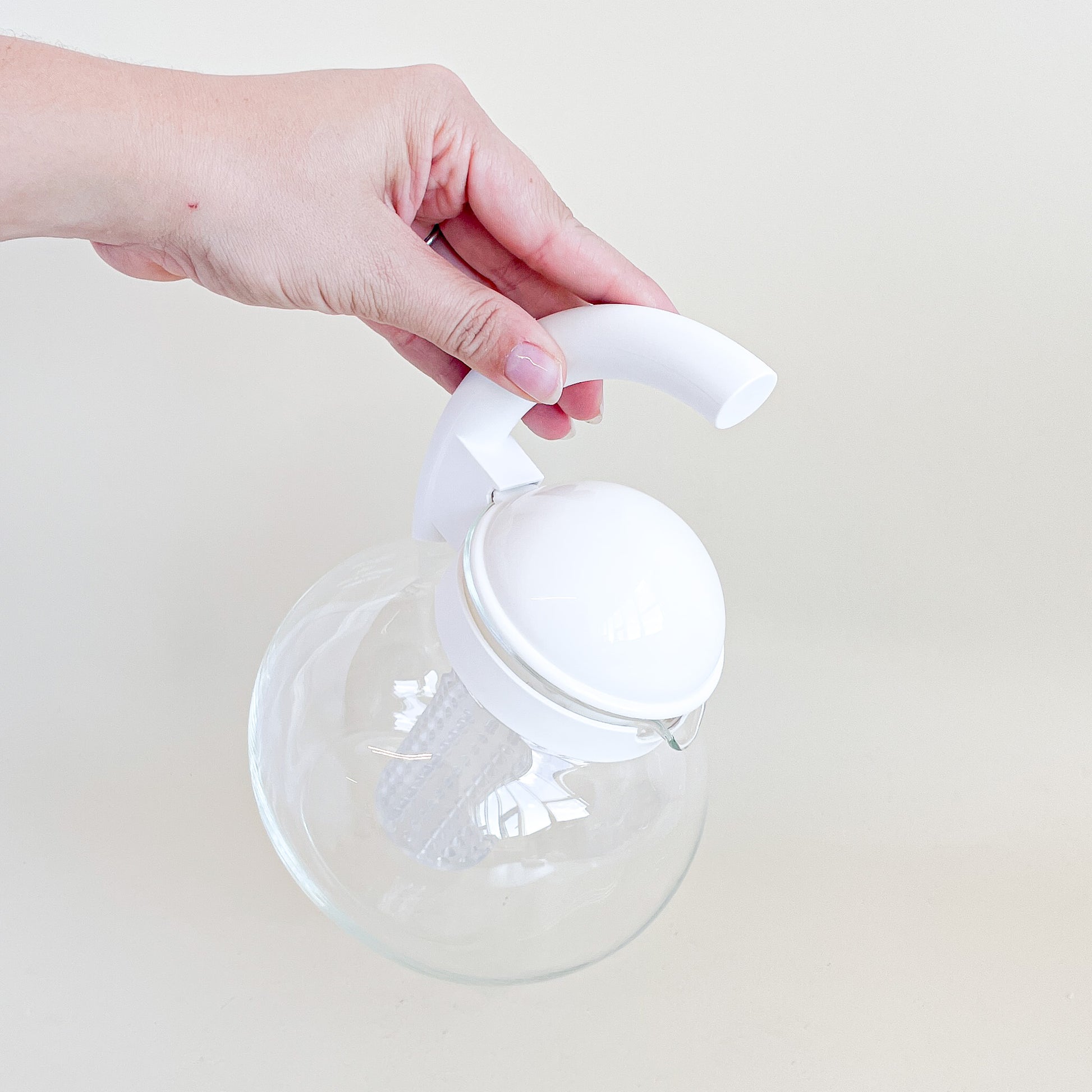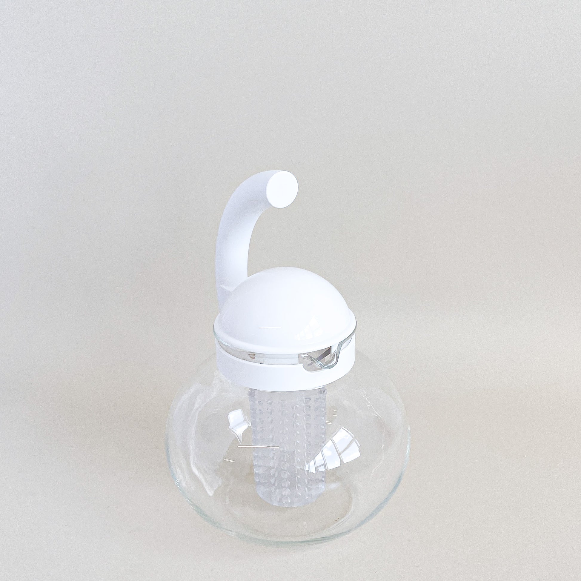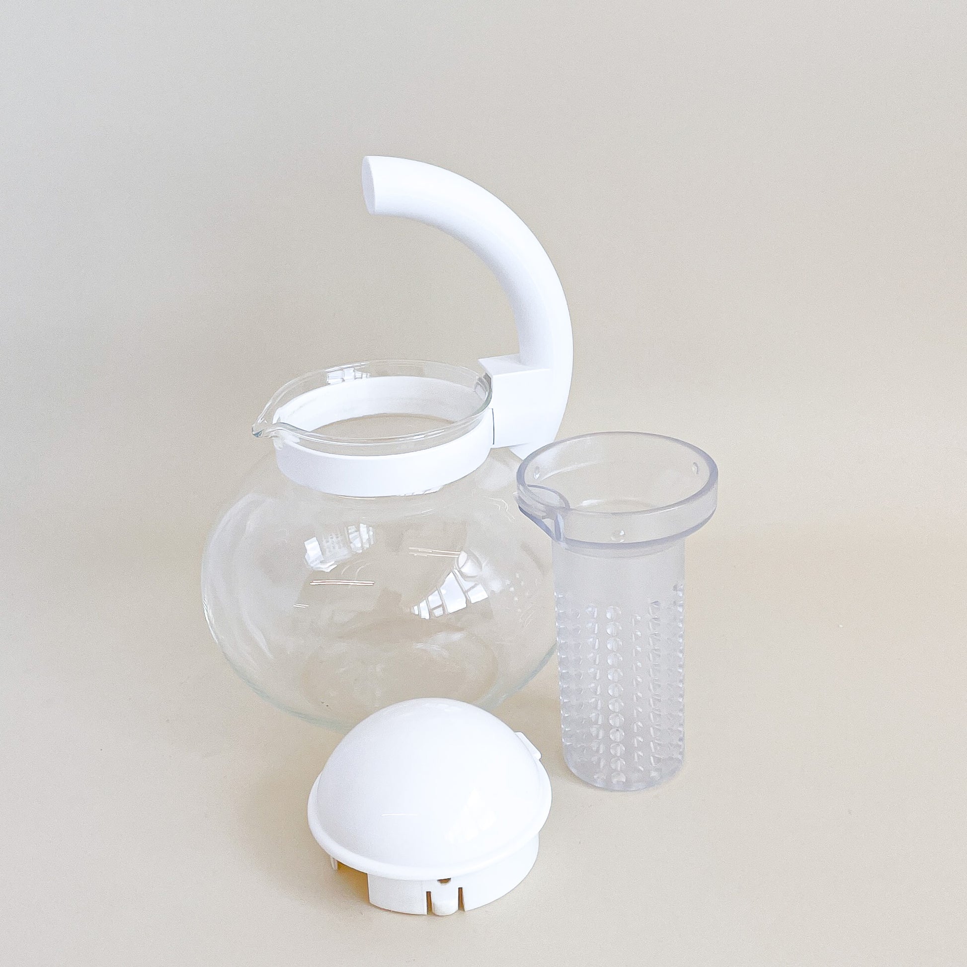 Vraiment cool théière Guzzini, modèle Focus, du designer italien Ambrogio Rossari. Produite dans les années 1980, elle est faite de verre borosilicate résistant à la chaleur et de plastique.