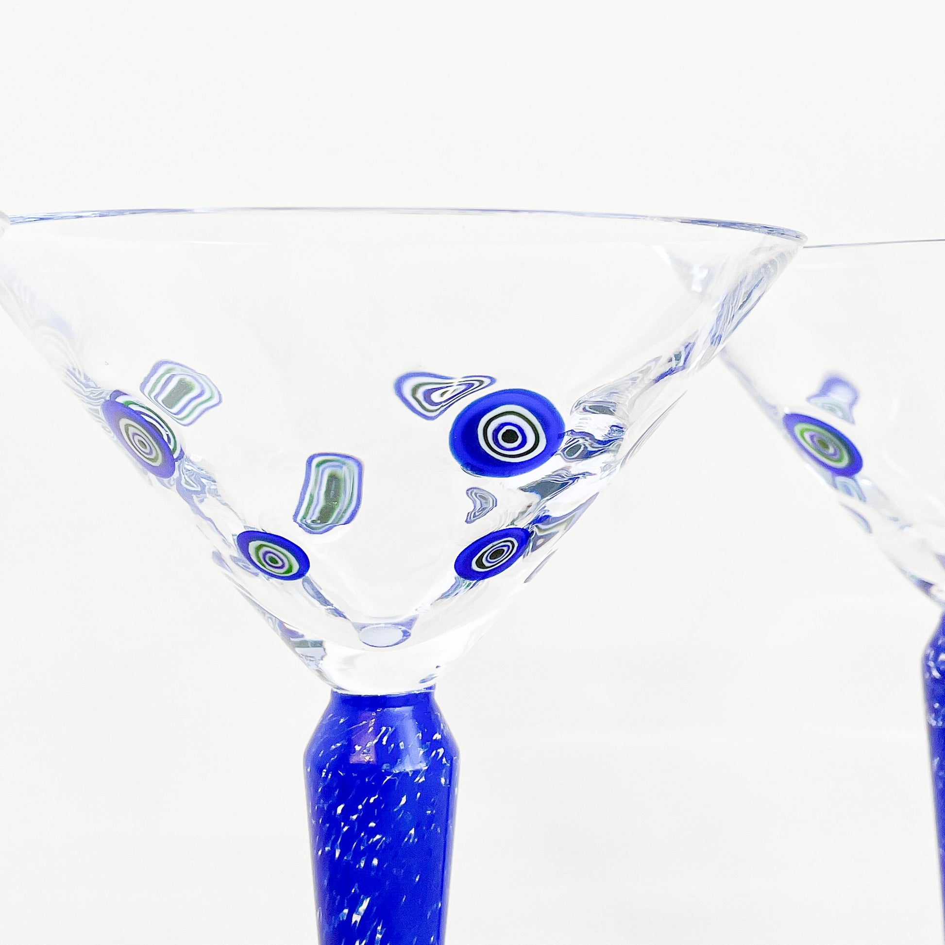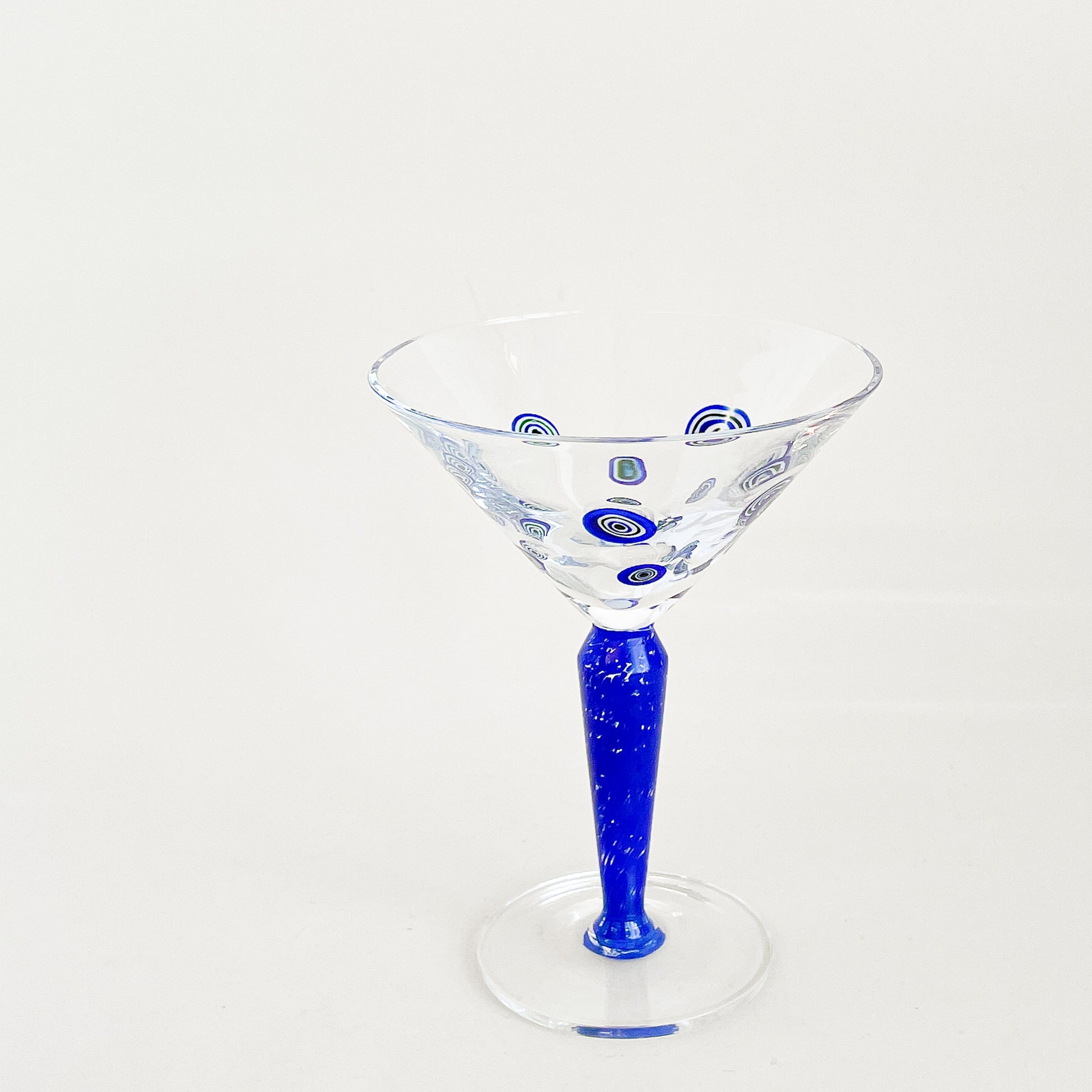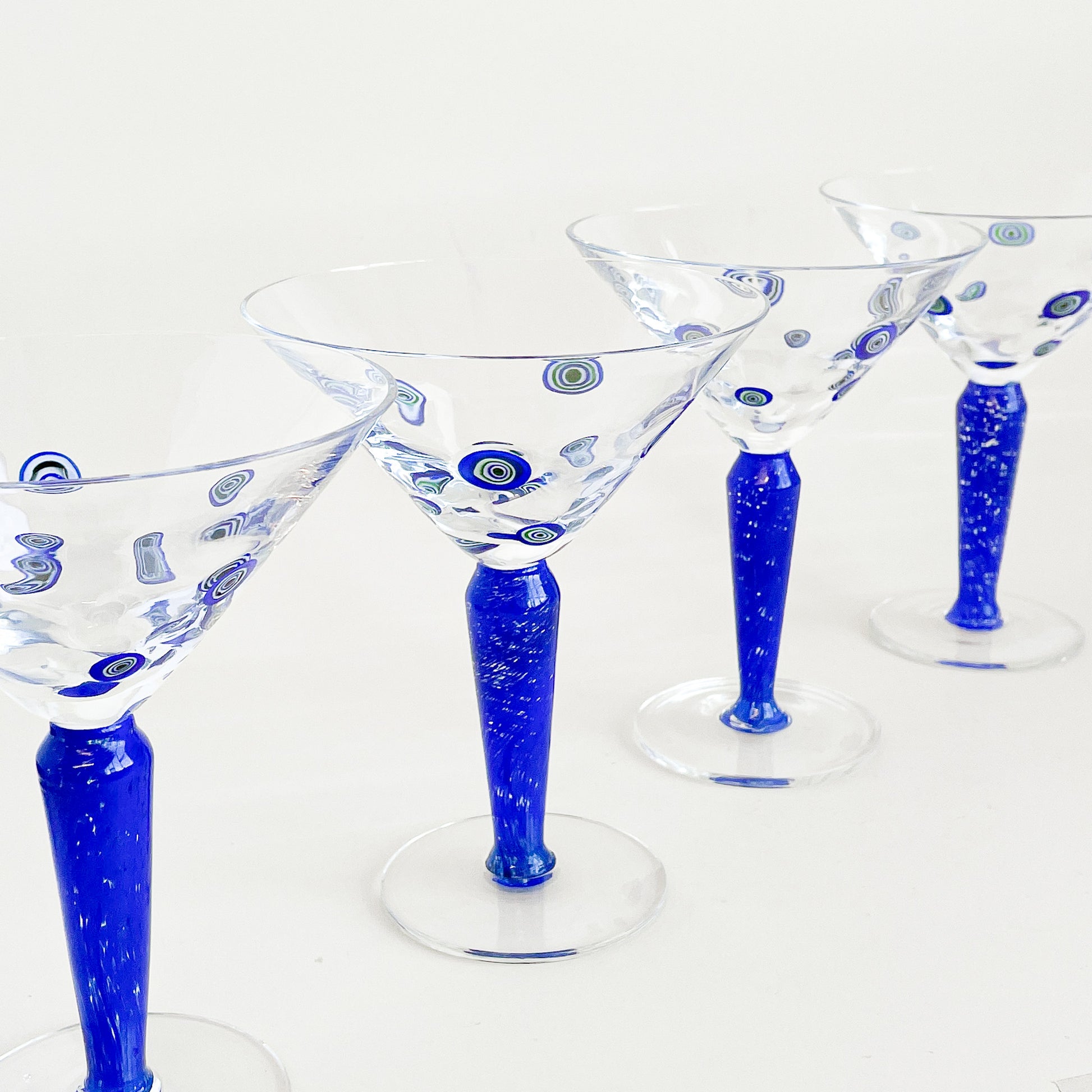 Set of 4 beautiful large millefiori blown glass martini glasses.