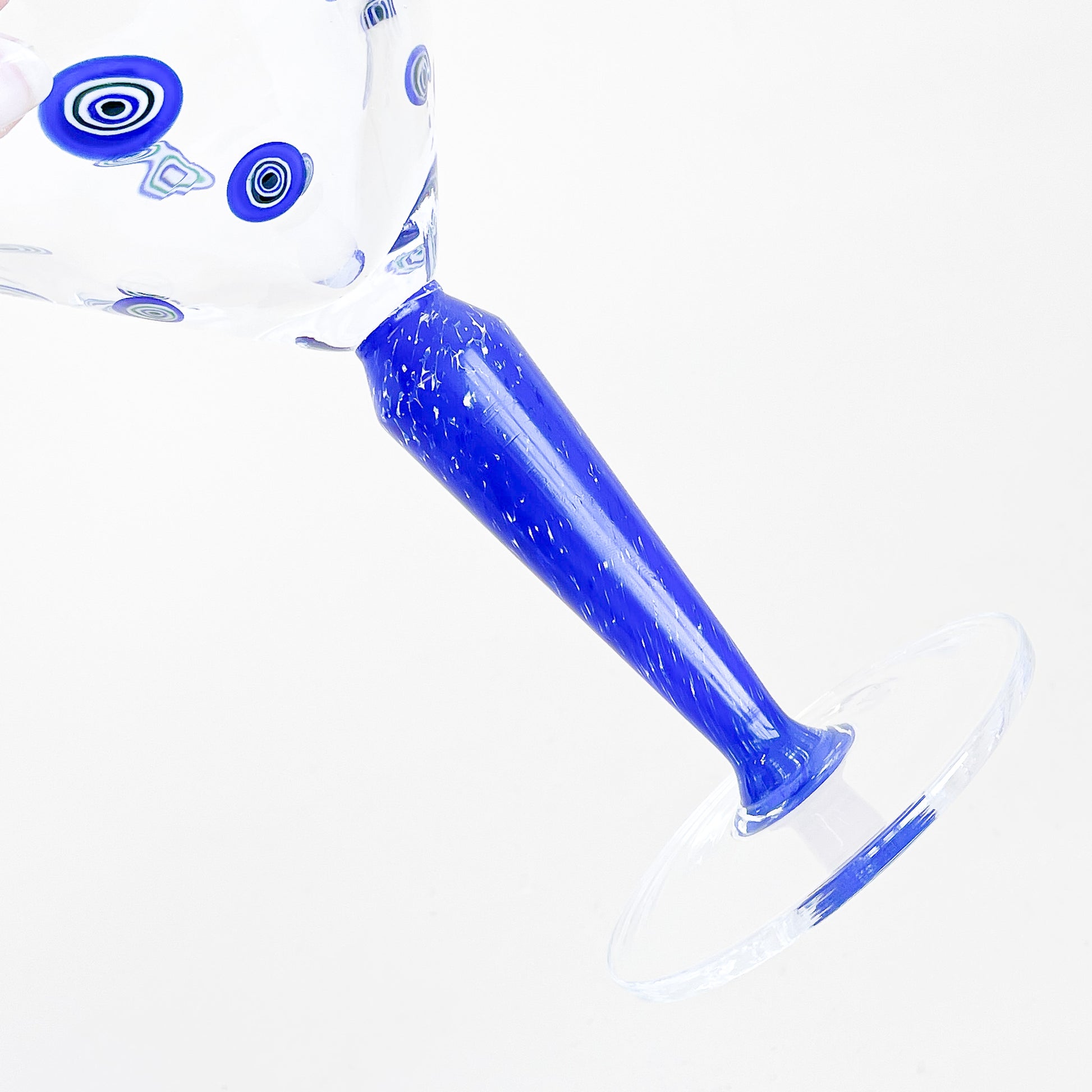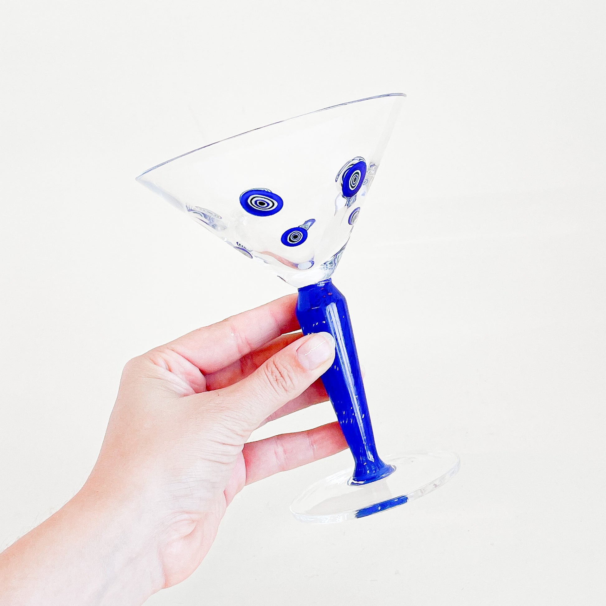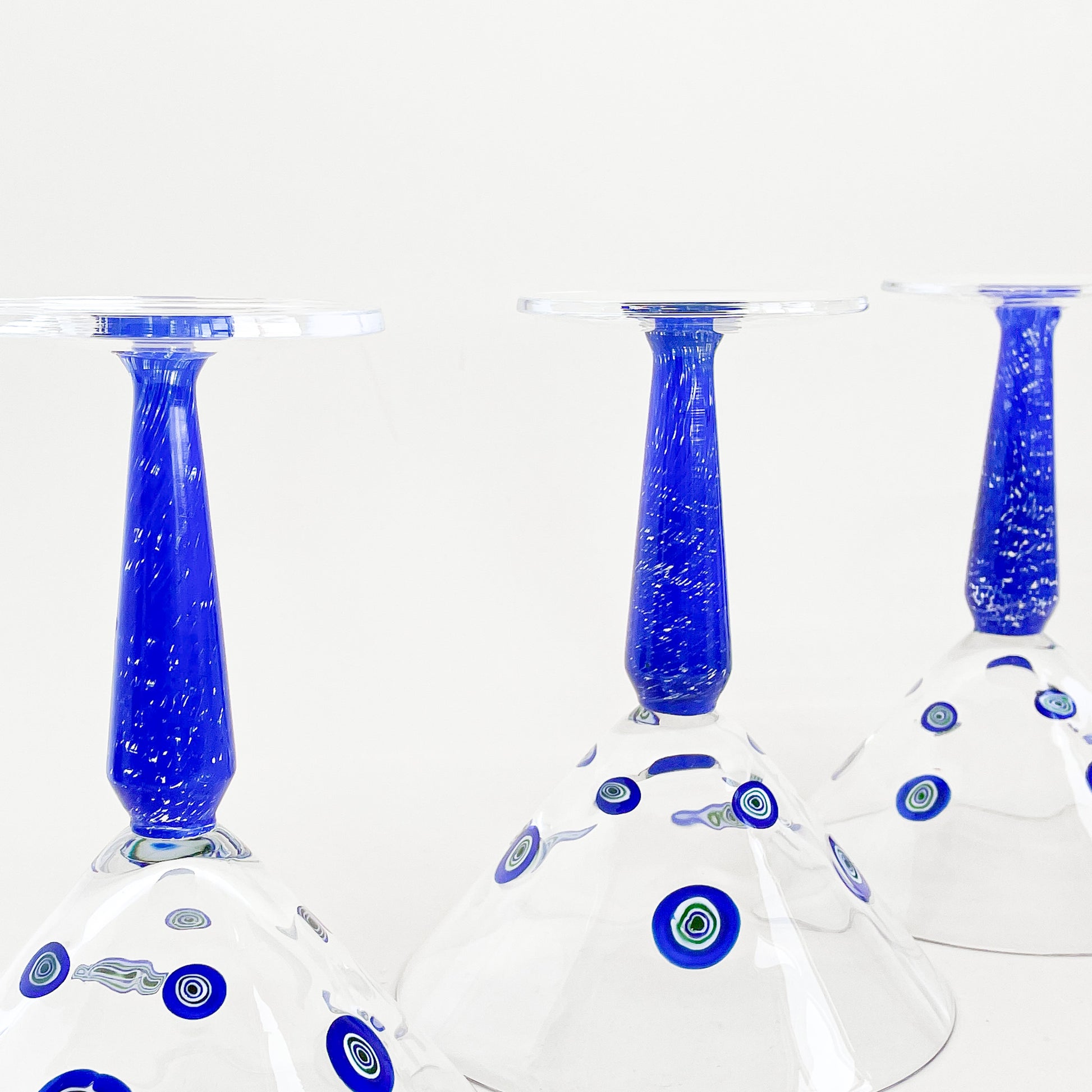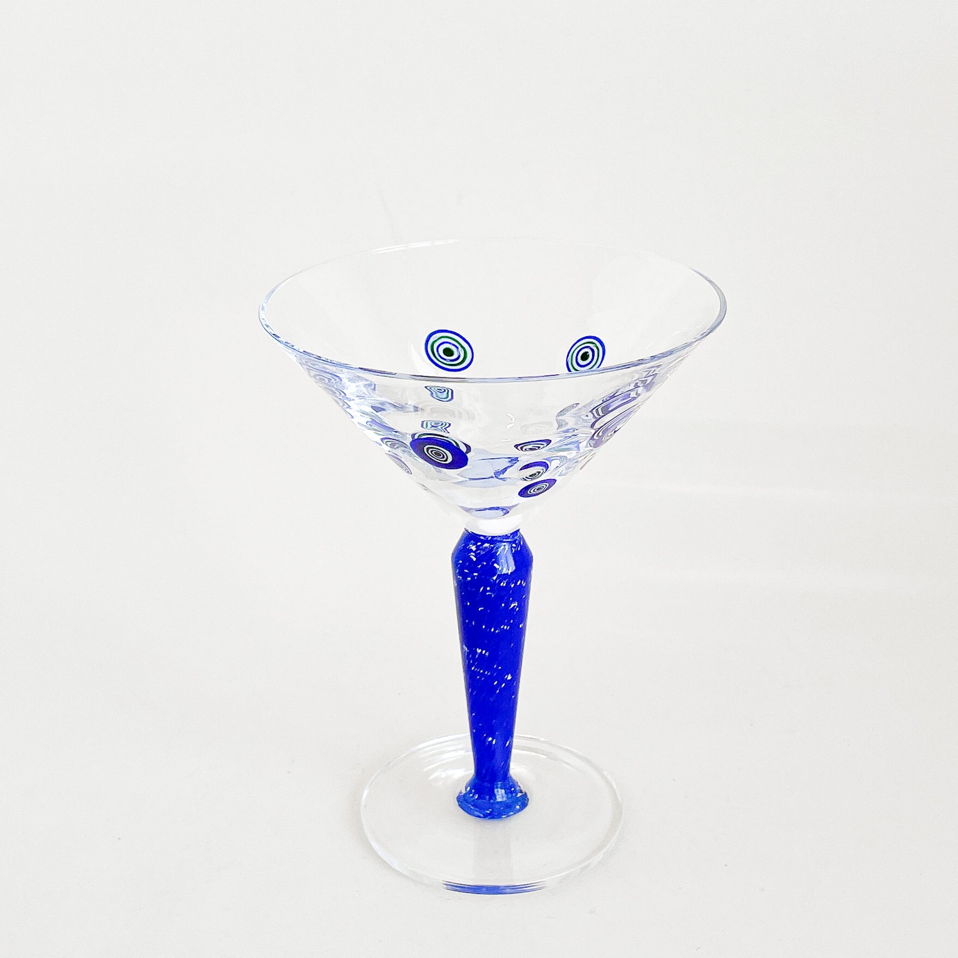 Set of 4 beautiful large millefiori blown glass martini glasses.