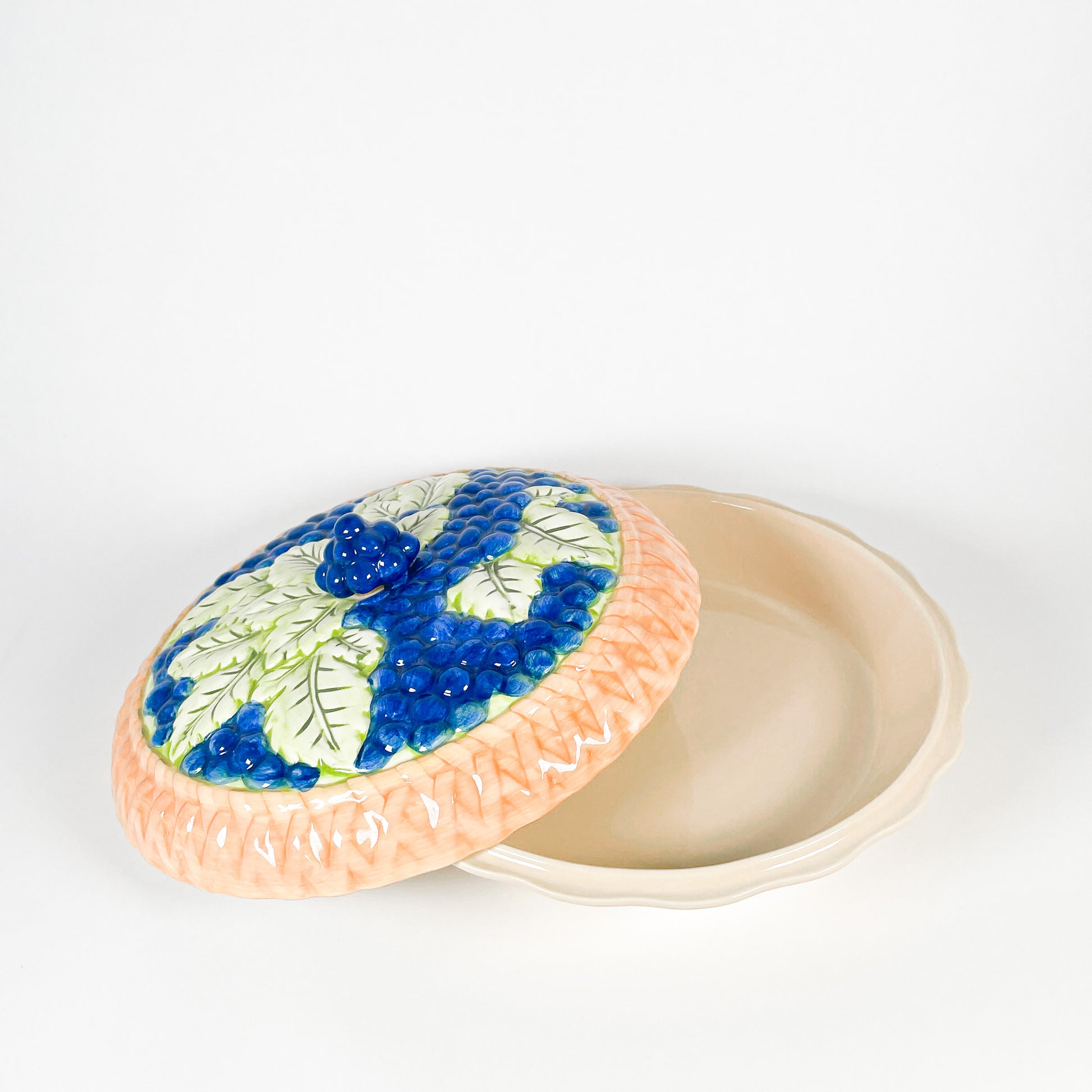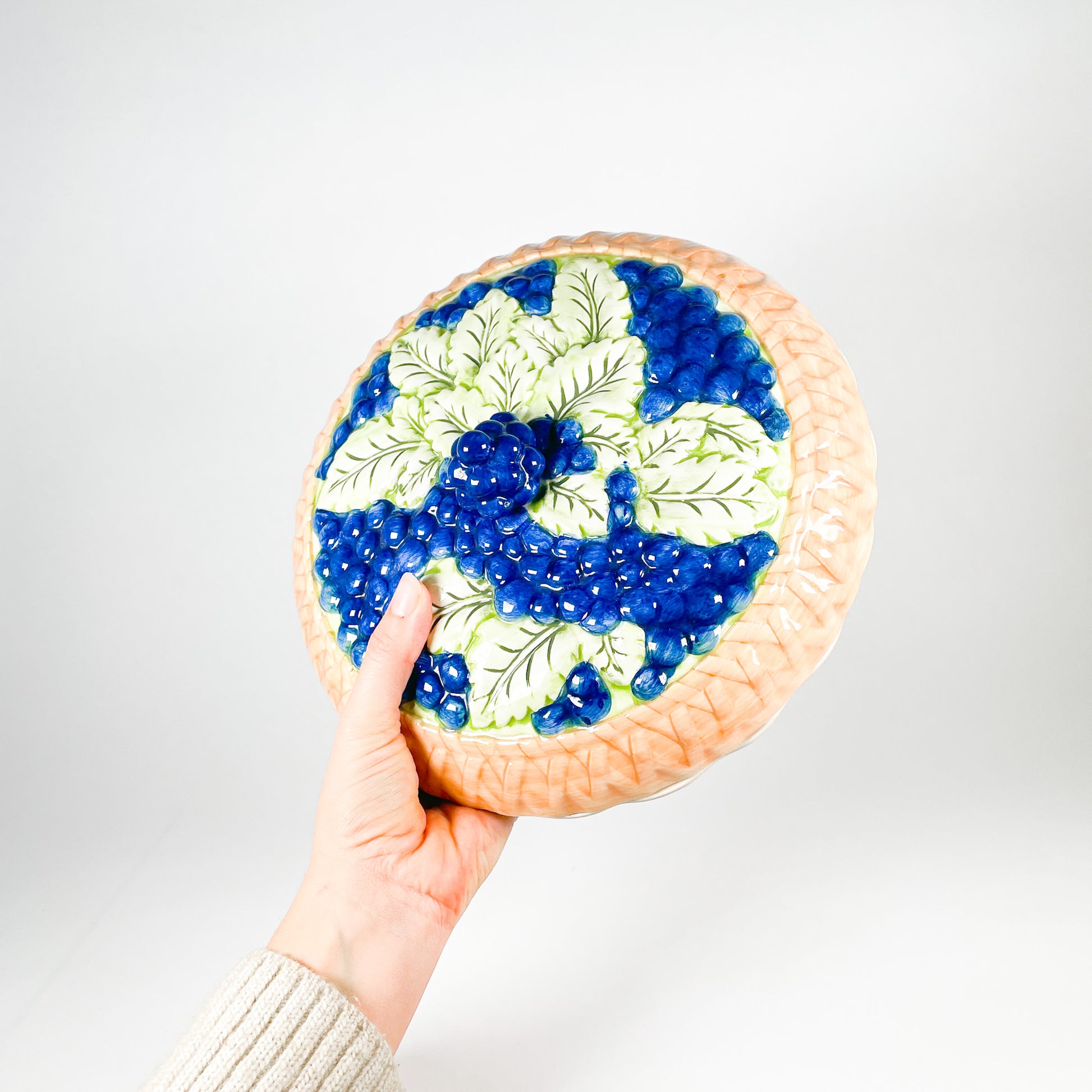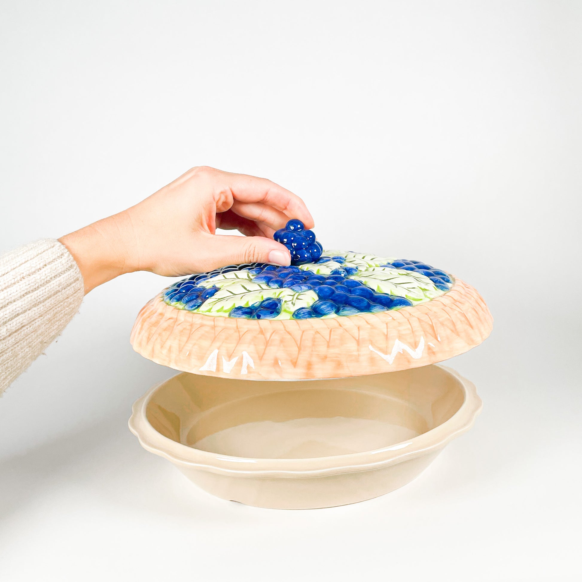 Assiette en céramique fabriquée à Taïwan en forme de tarte aux bleuets.