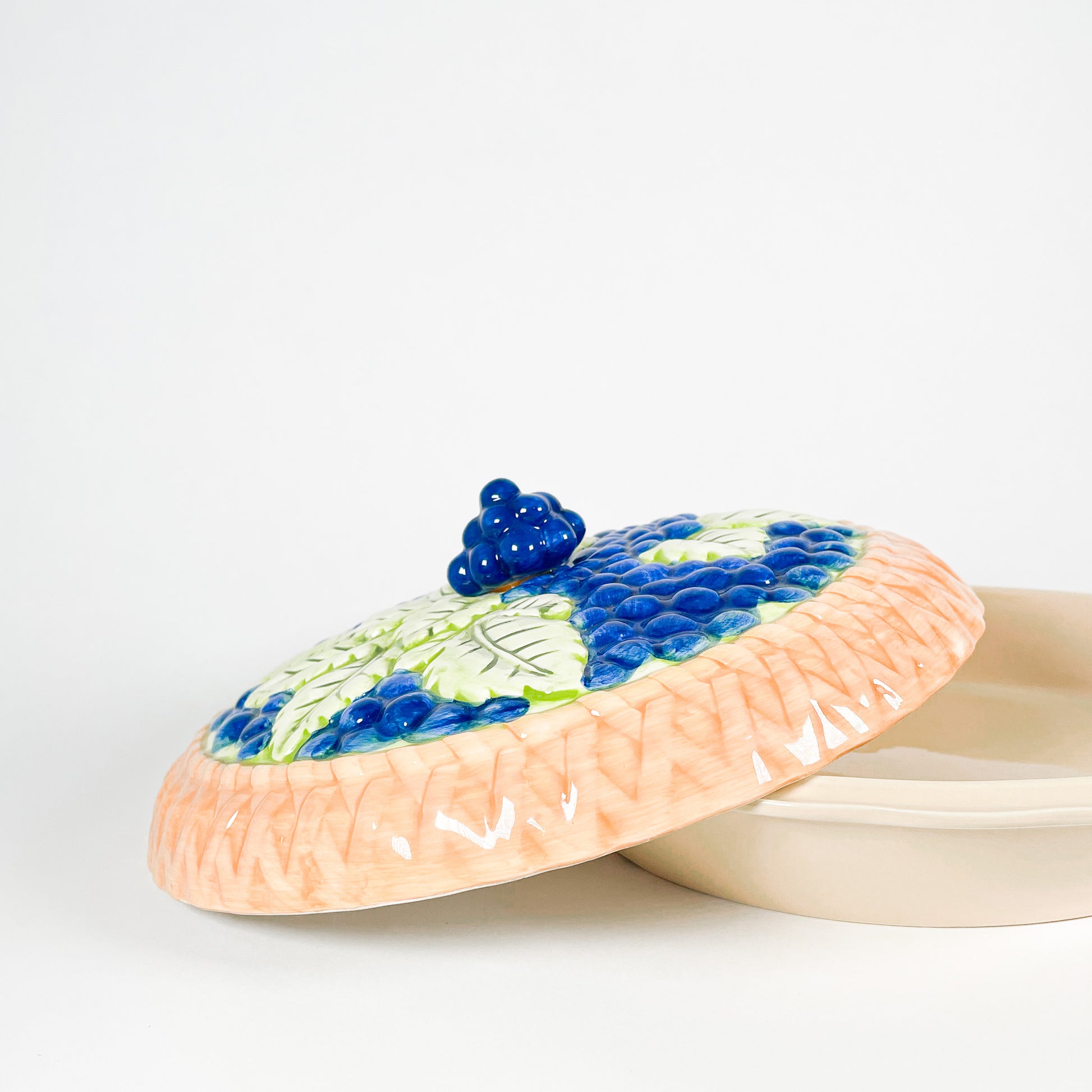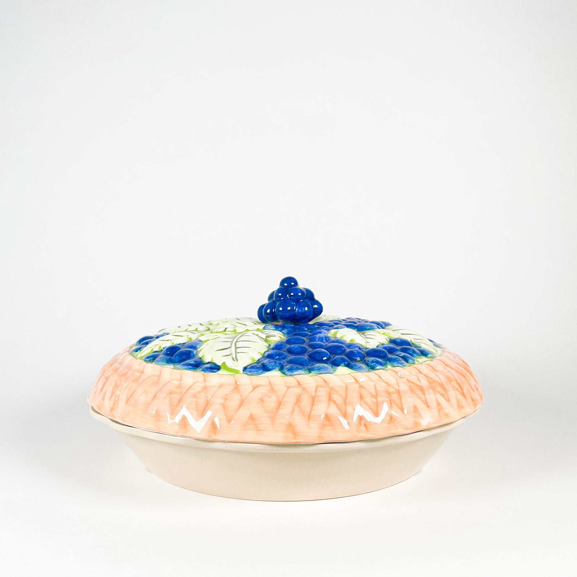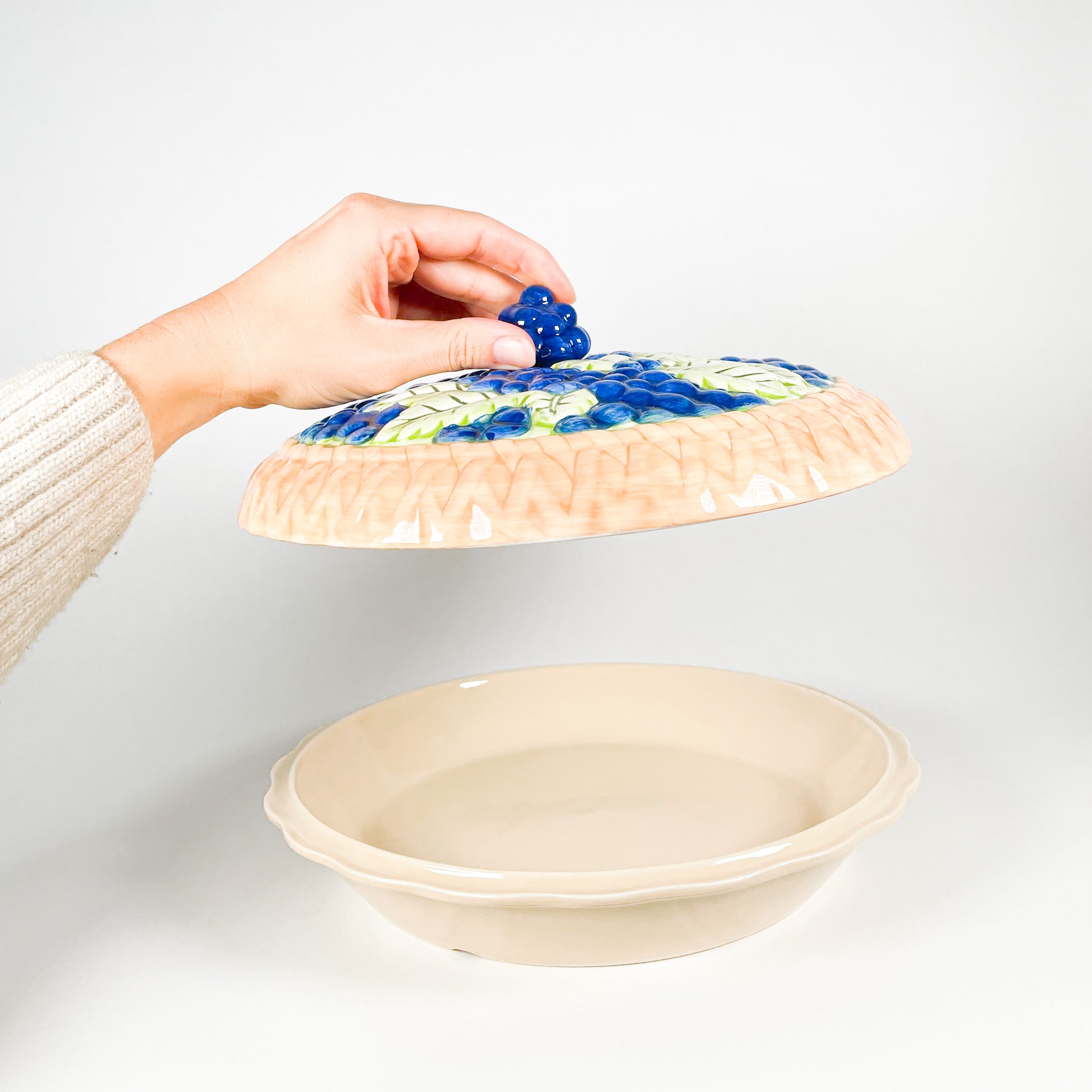 Assiette en céramique fabriquée à Taïwan en forme de tarte aux bleuets.