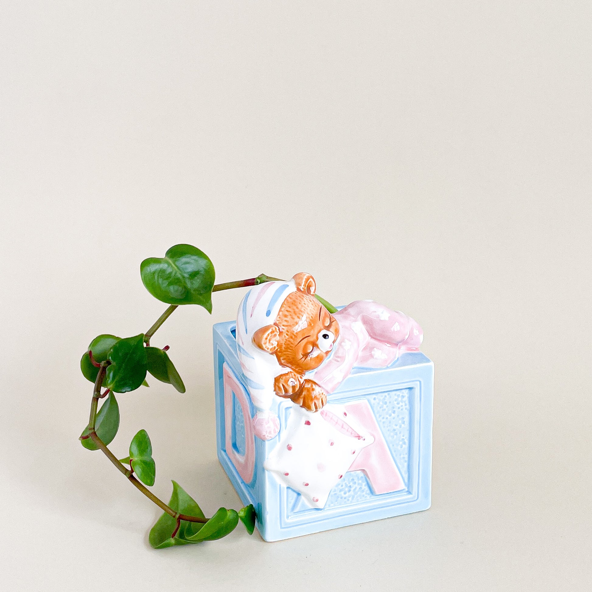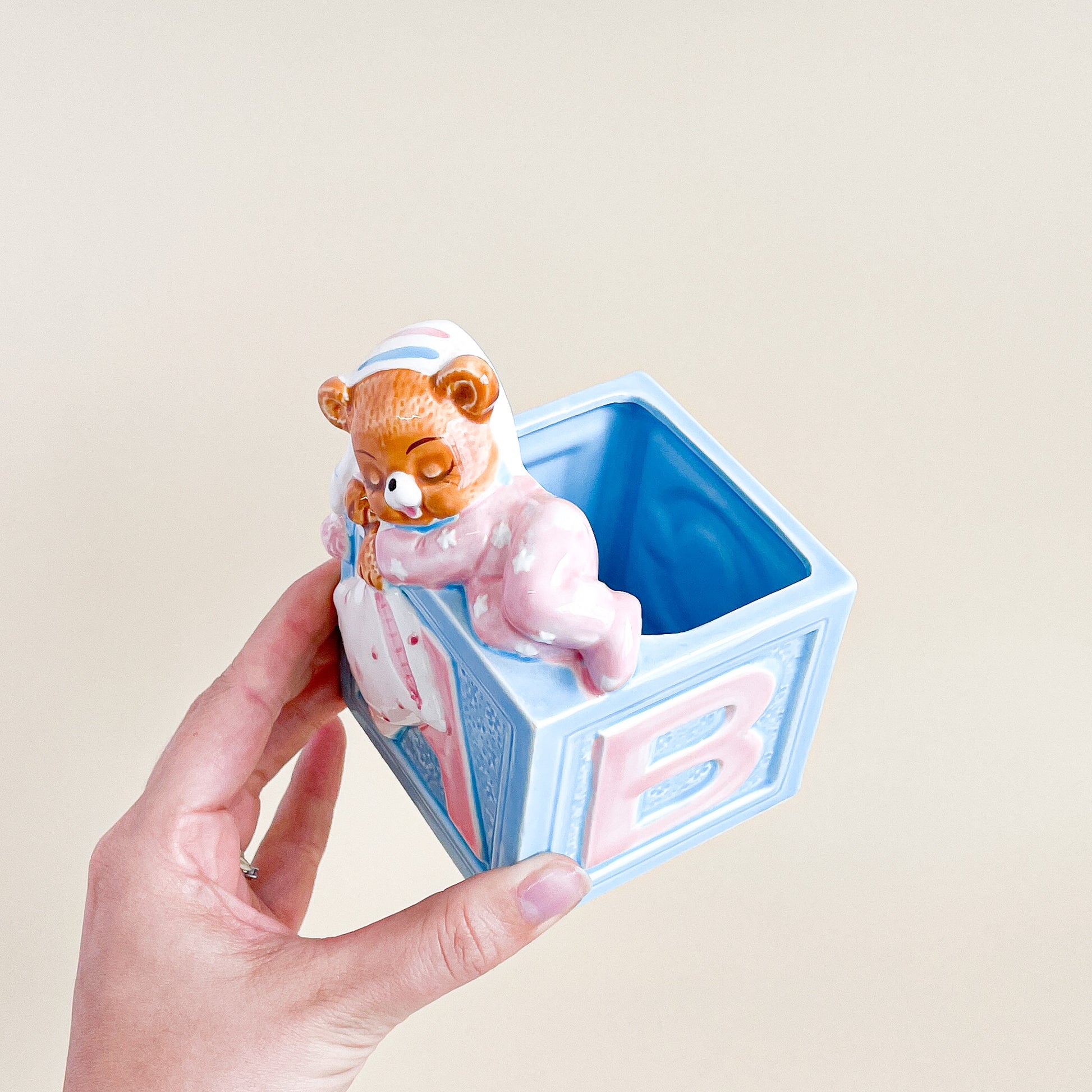 Cache-pot en céramique made in Japan en forme de cube. Il serait plus que parfait dans une chambre d'enfant. 🙂