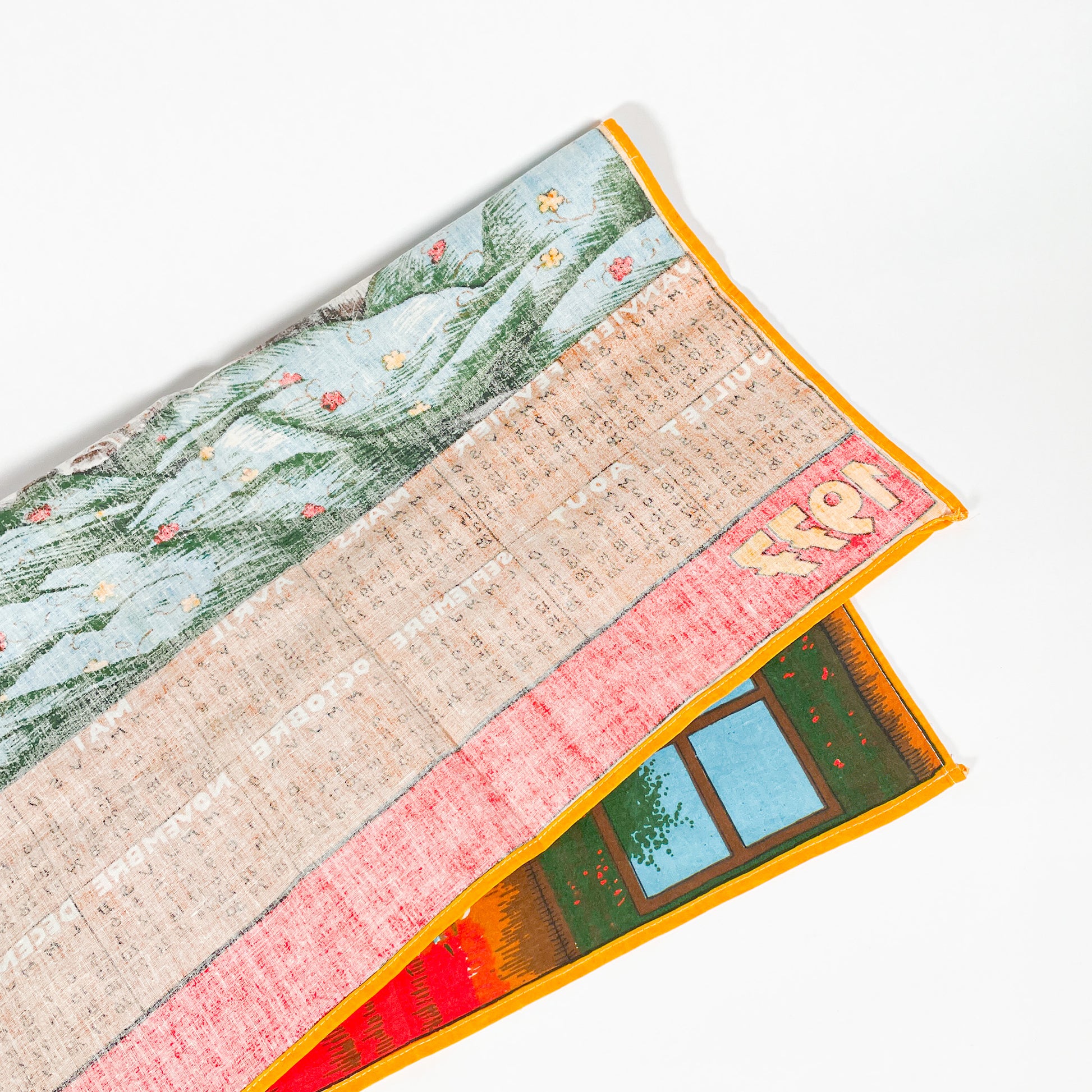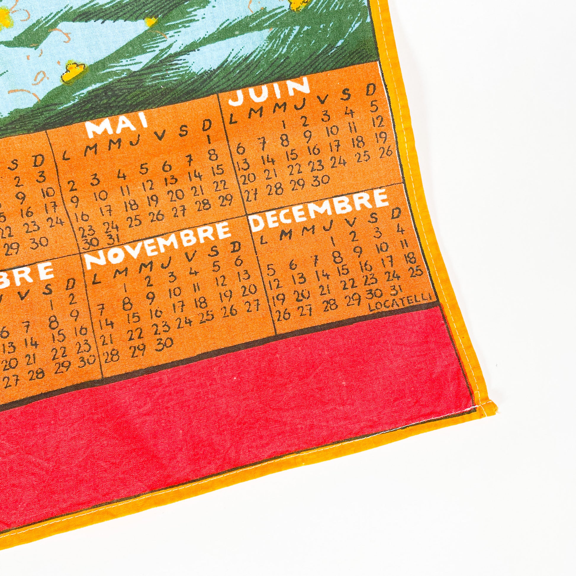 Adorable calendrier mural/torchon en coton de l'an 1977, fabriqué par Locatelli.