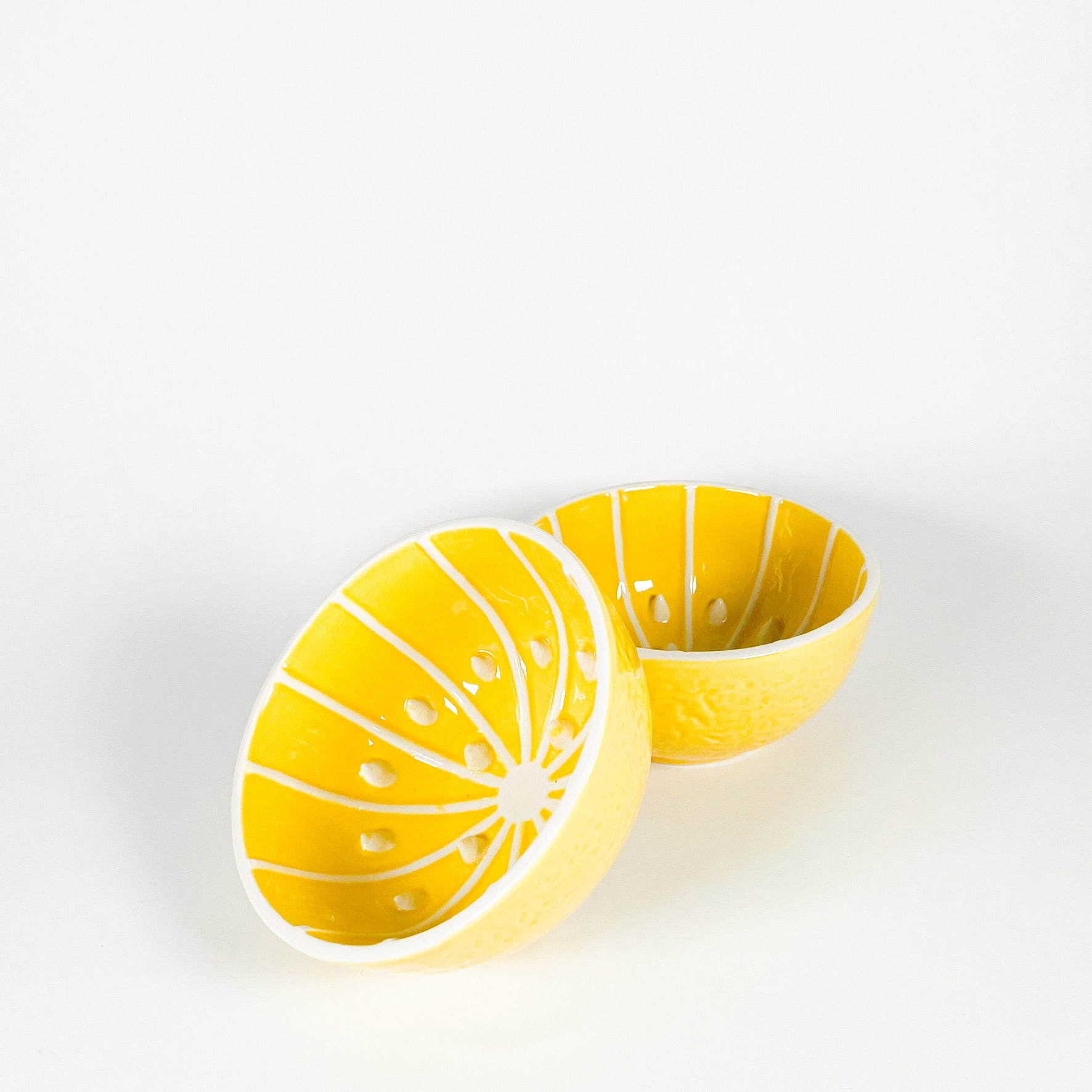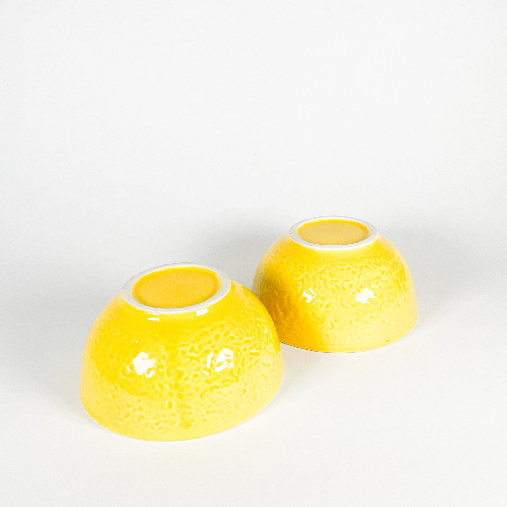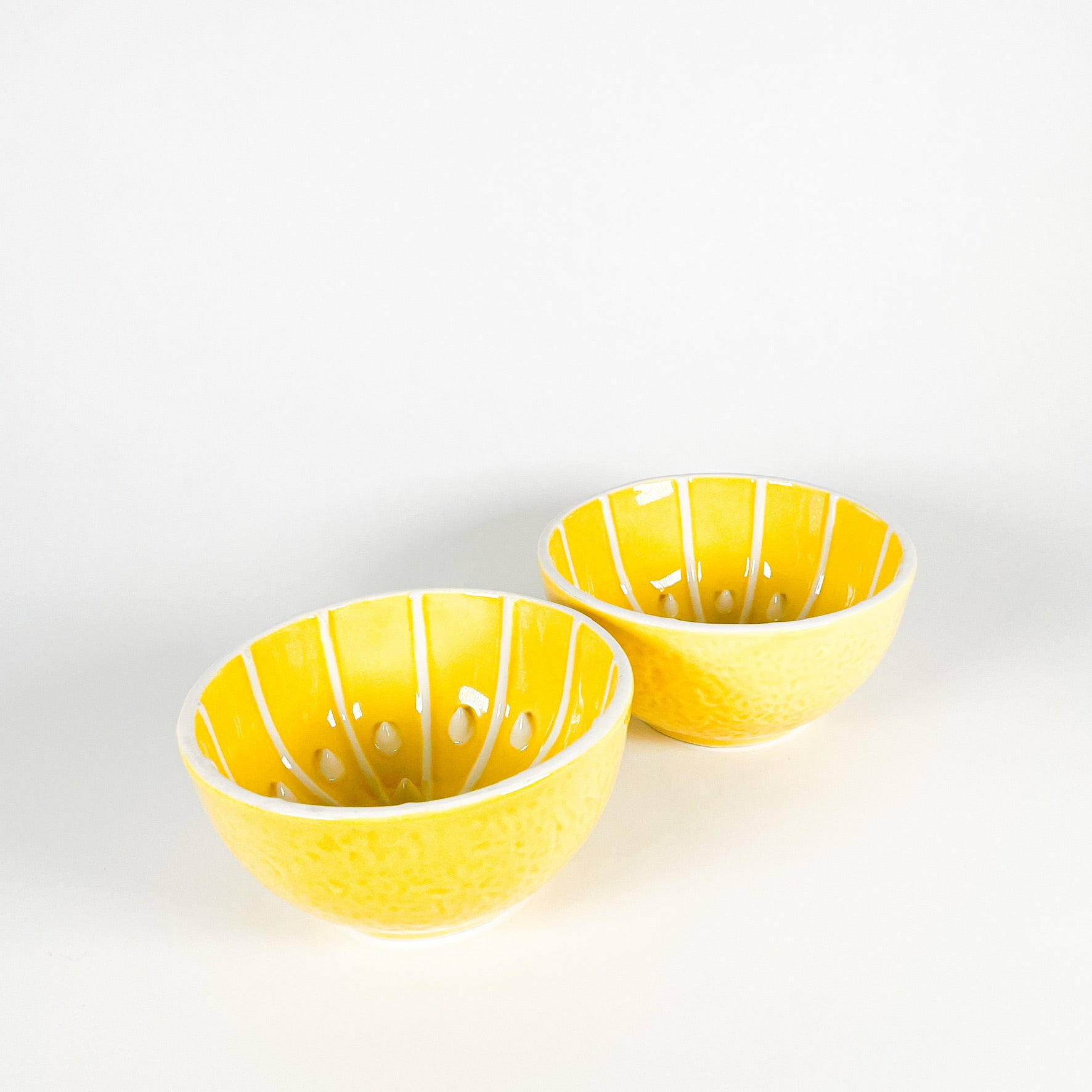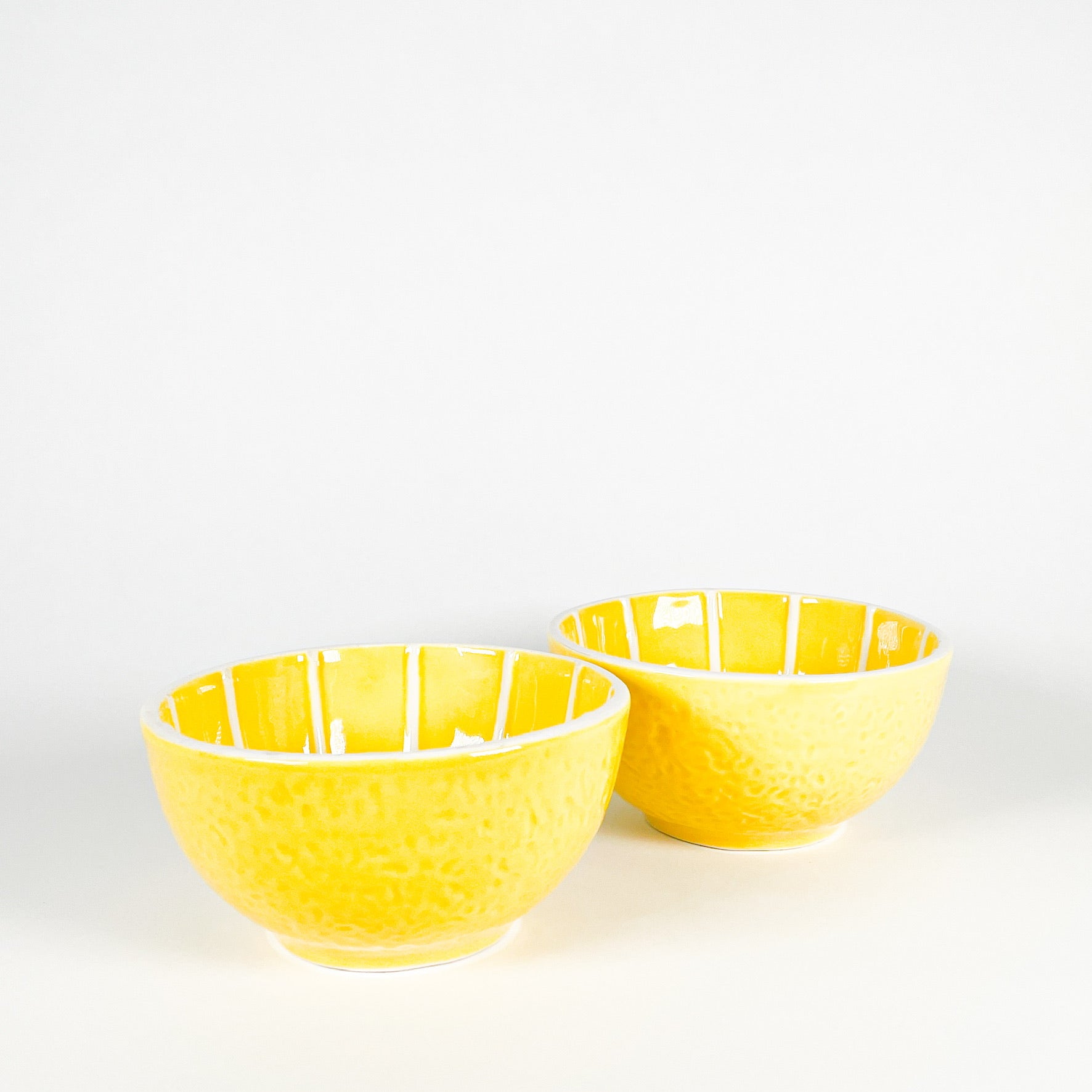 Ensemble de 2 bols en céramique en forme de citrons avec pépins texturés à l'intérieur.