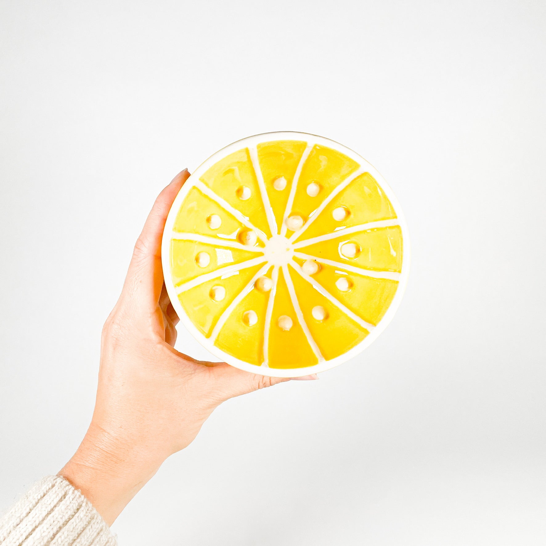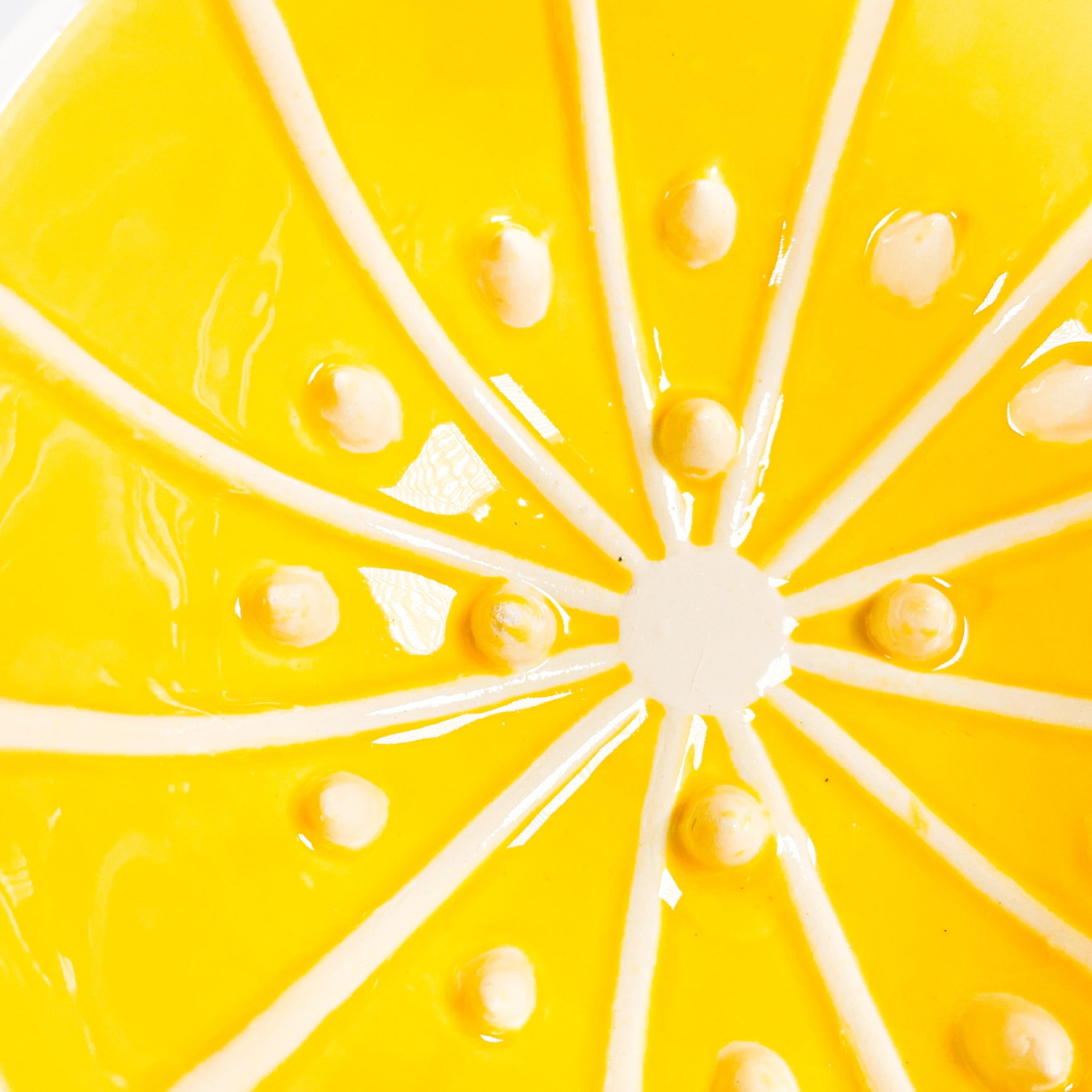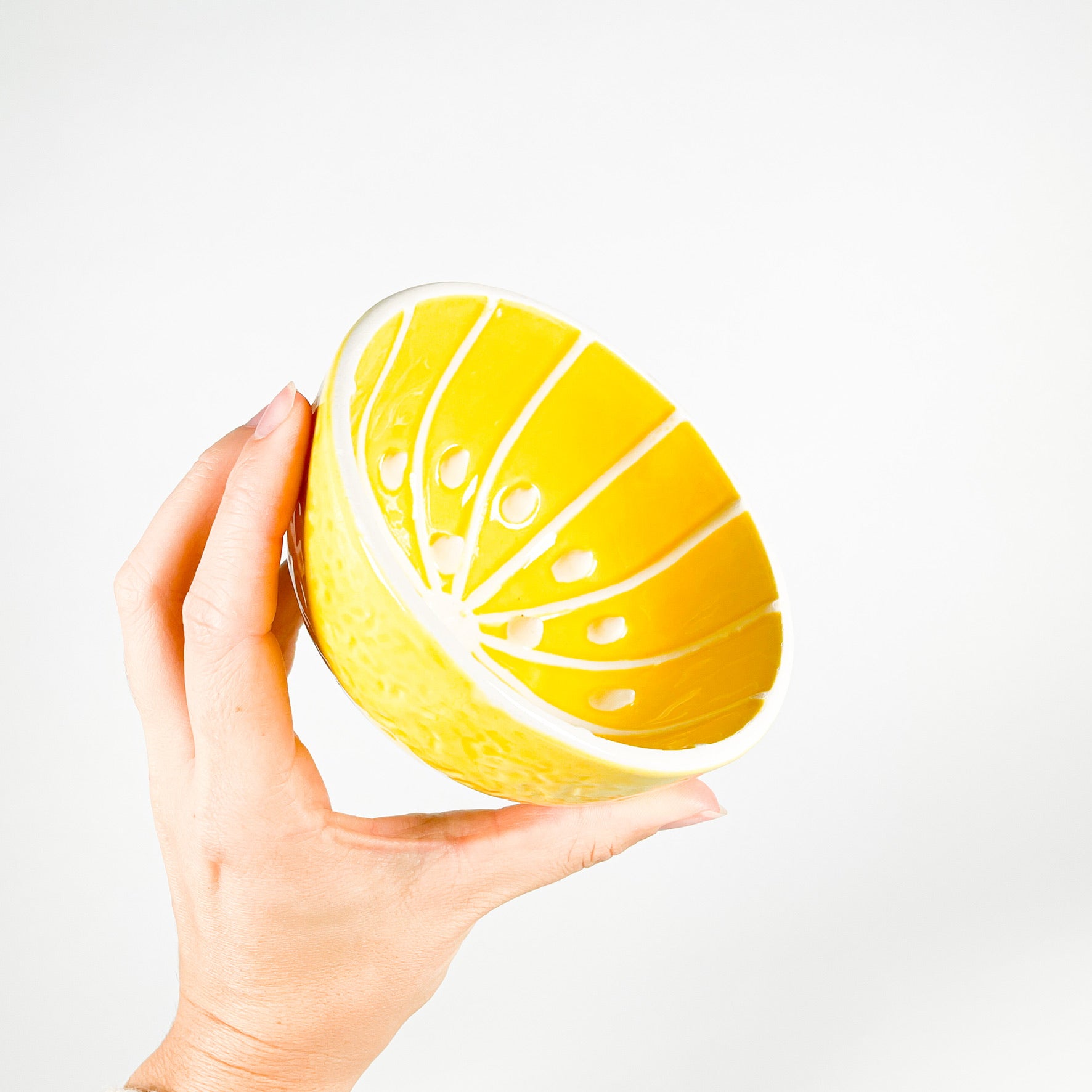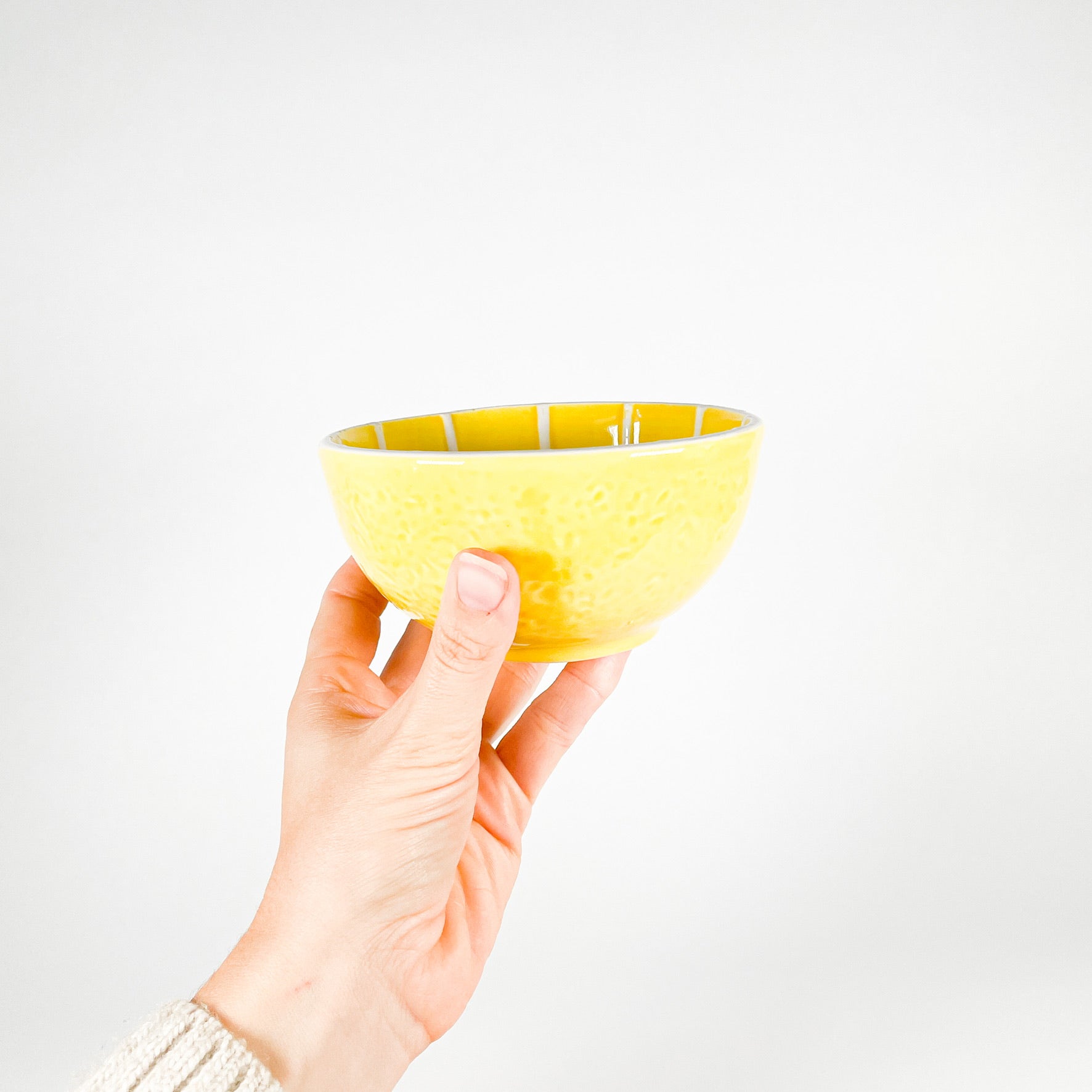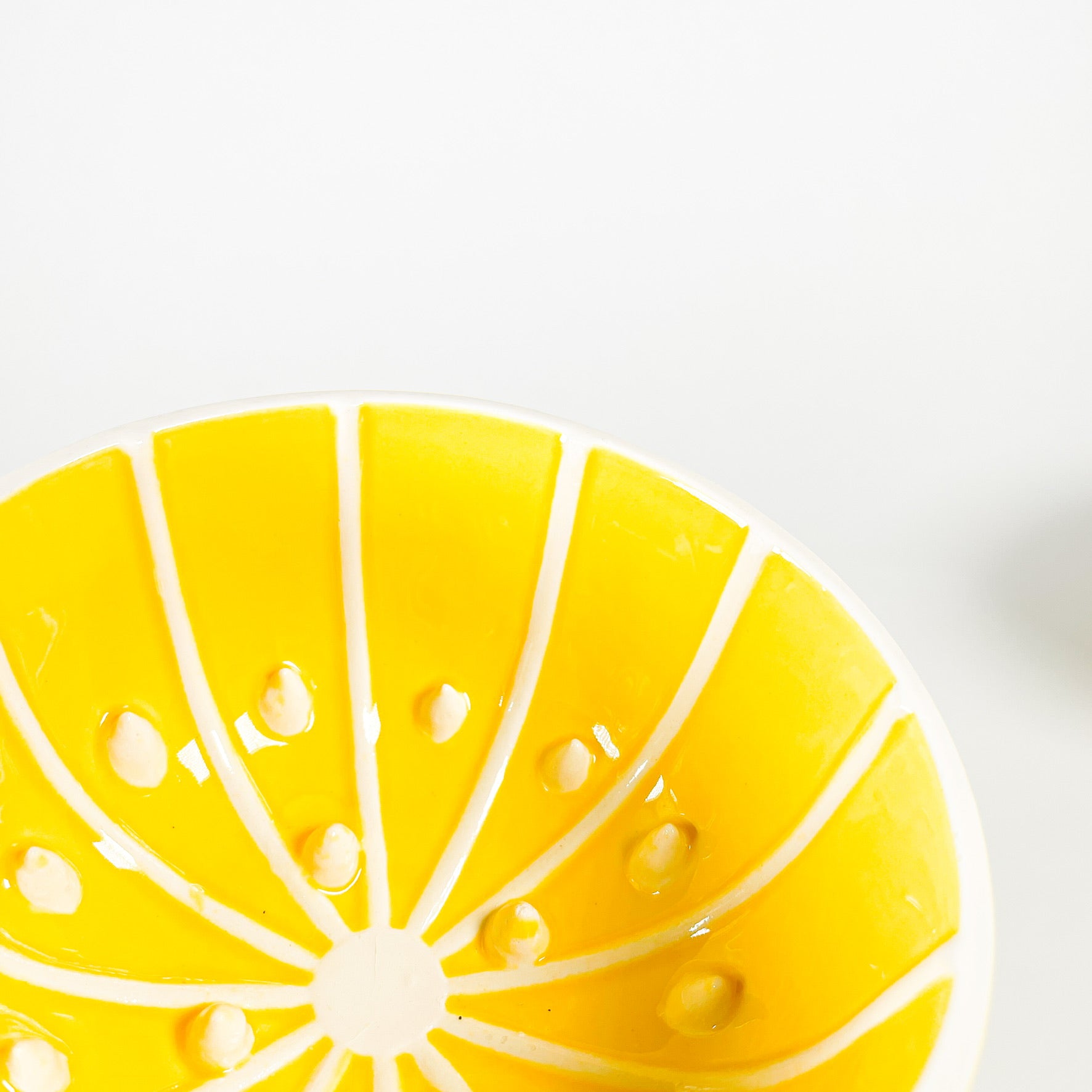 Ensemble de 2 bols en céramique en forme de citrons avec pépins texturés à l'intérieur.