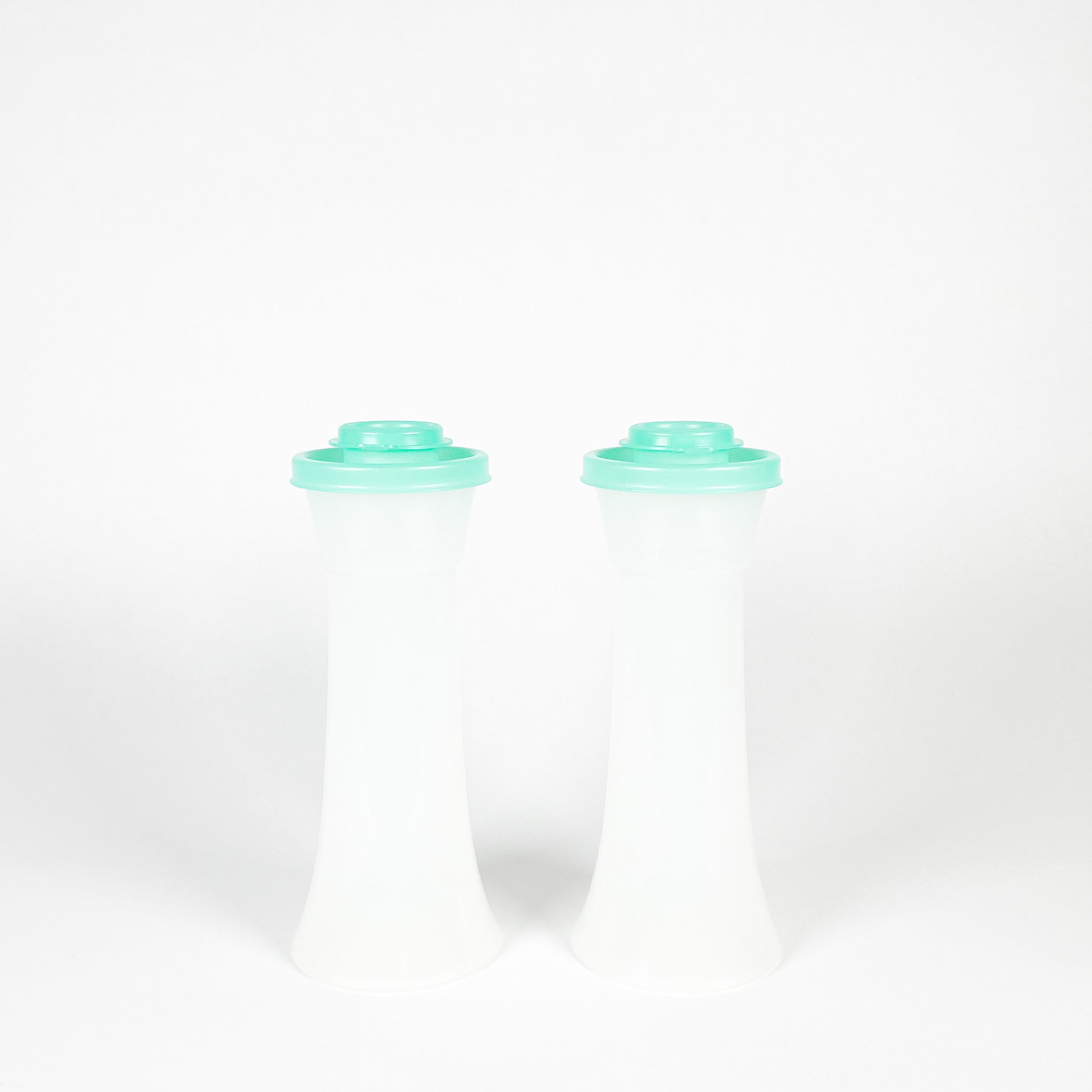 Duo de salière et poivrière en plastique Tupperware fabriqué au Mexique.
